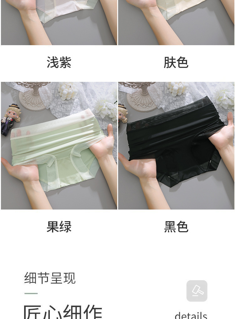여름 초박형 아이스 실크 원활한 여성 속옷 여성의 2024 새로운 삼각형 반바지 머리 소녀의 얼굴 마스크 바닥스토어 가기