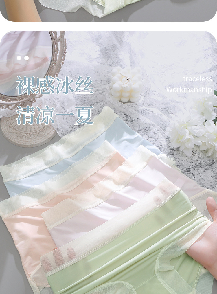 여름 초박형 아이스 실크 원활한 여성 속옷 여성의 2024 새로운 삼각형 반바지 머리 소녀의 얼굴 마스크 바닥