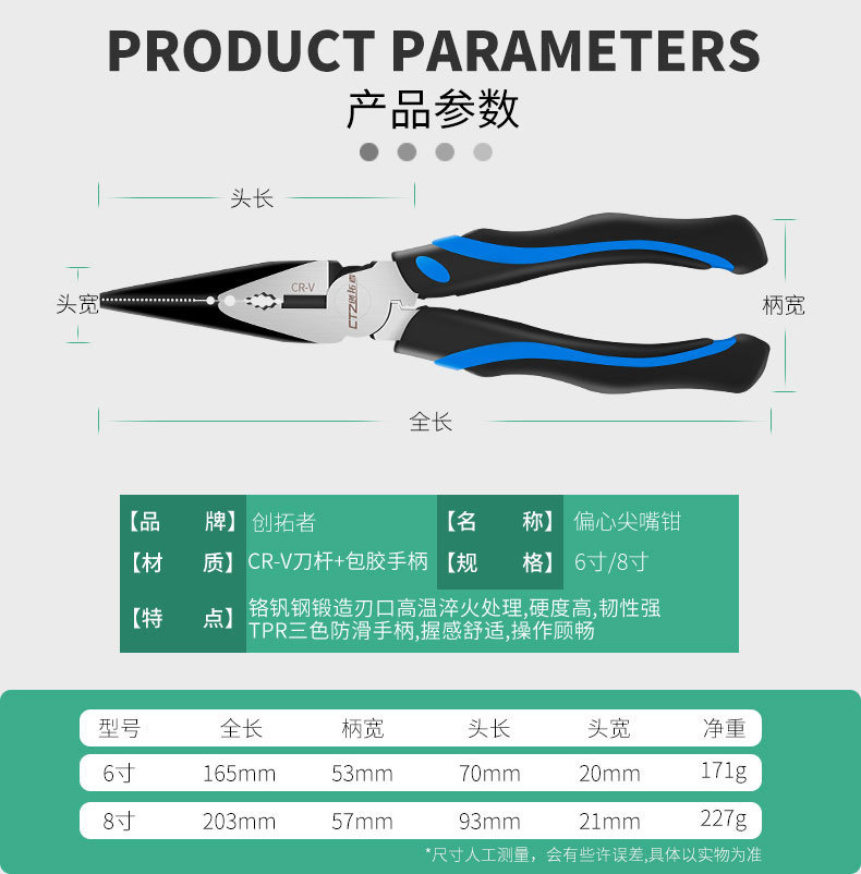 Chuangtuo vise 바늘 코 펜치 전기 기술자를위한 와이어 펜치 다기능 범용 산업 도구 Daquan 비스듬한 입