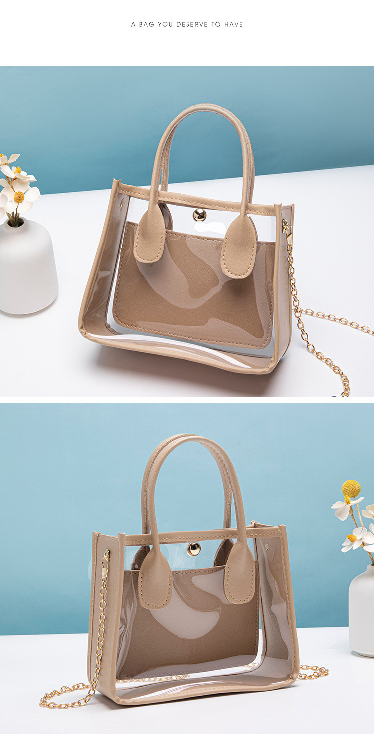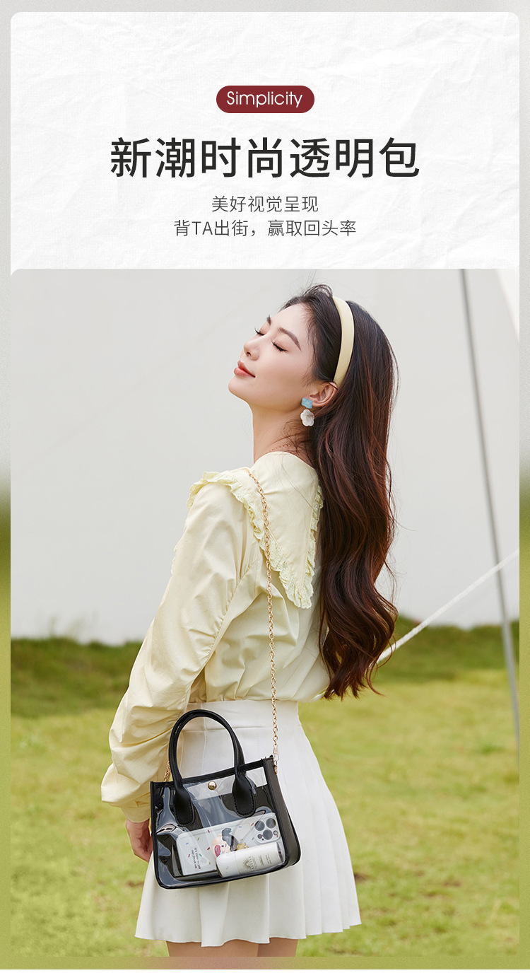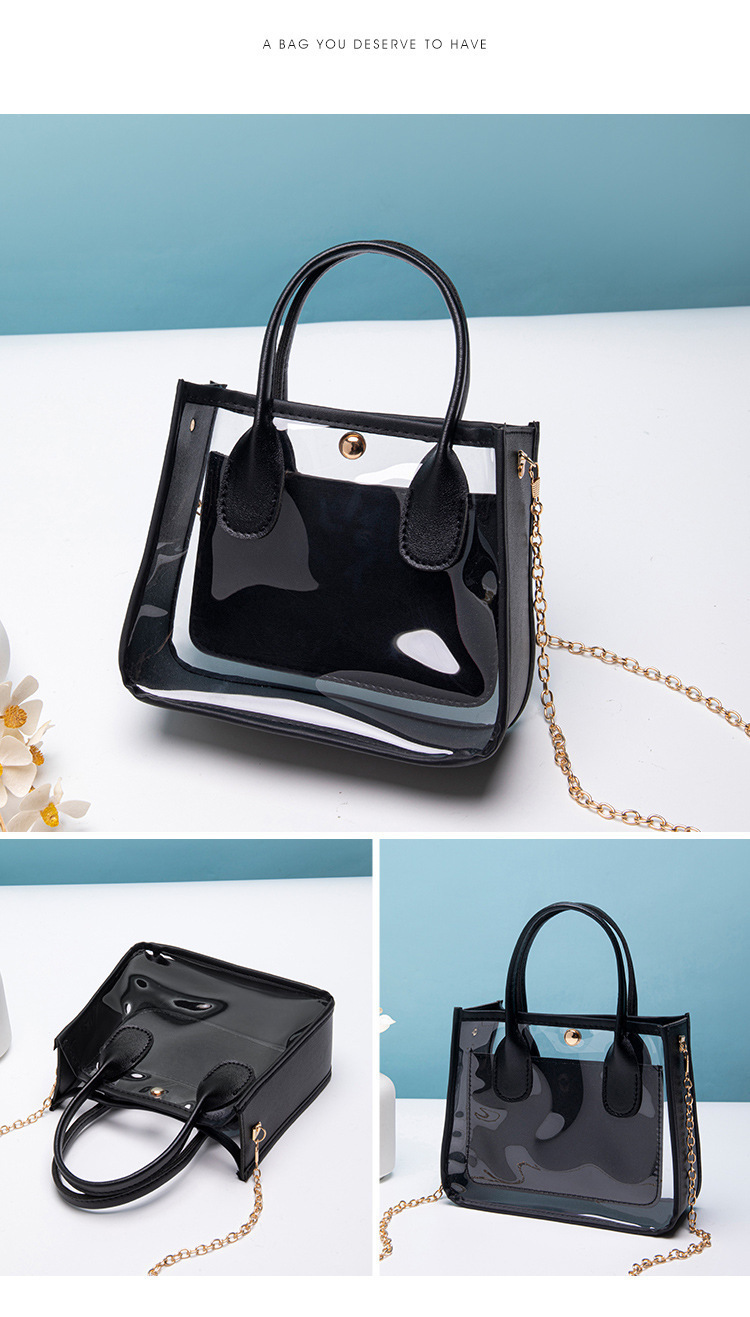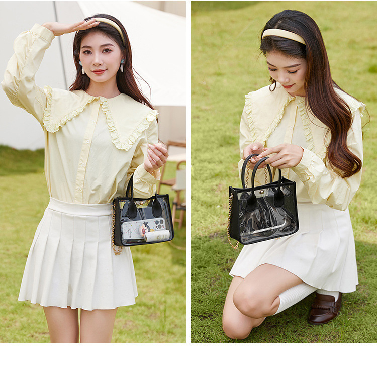 여성 가방 여성의 2023 새로운 투명 PVC 가죽 체인 크로스 바디 핸드백 휴