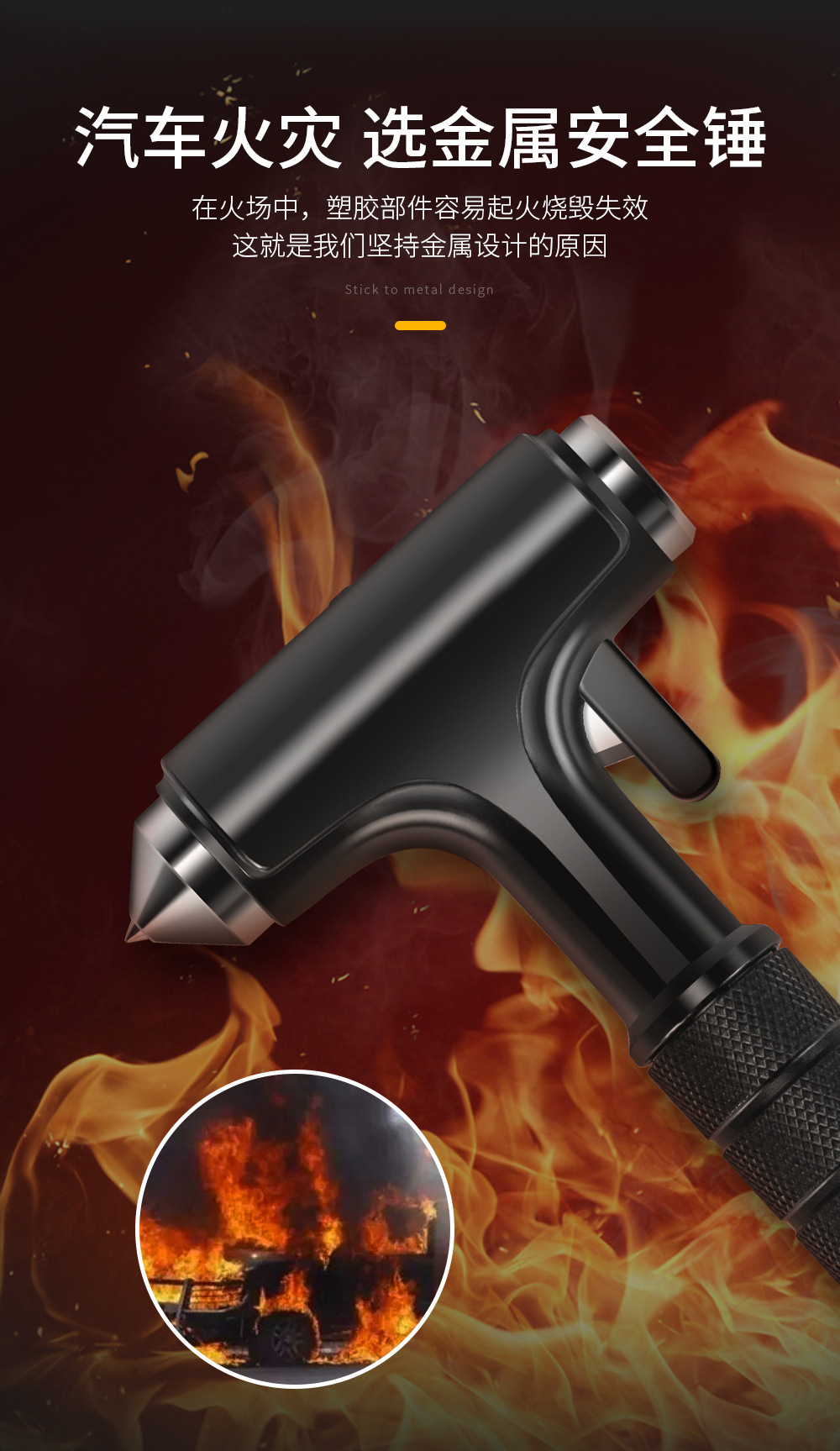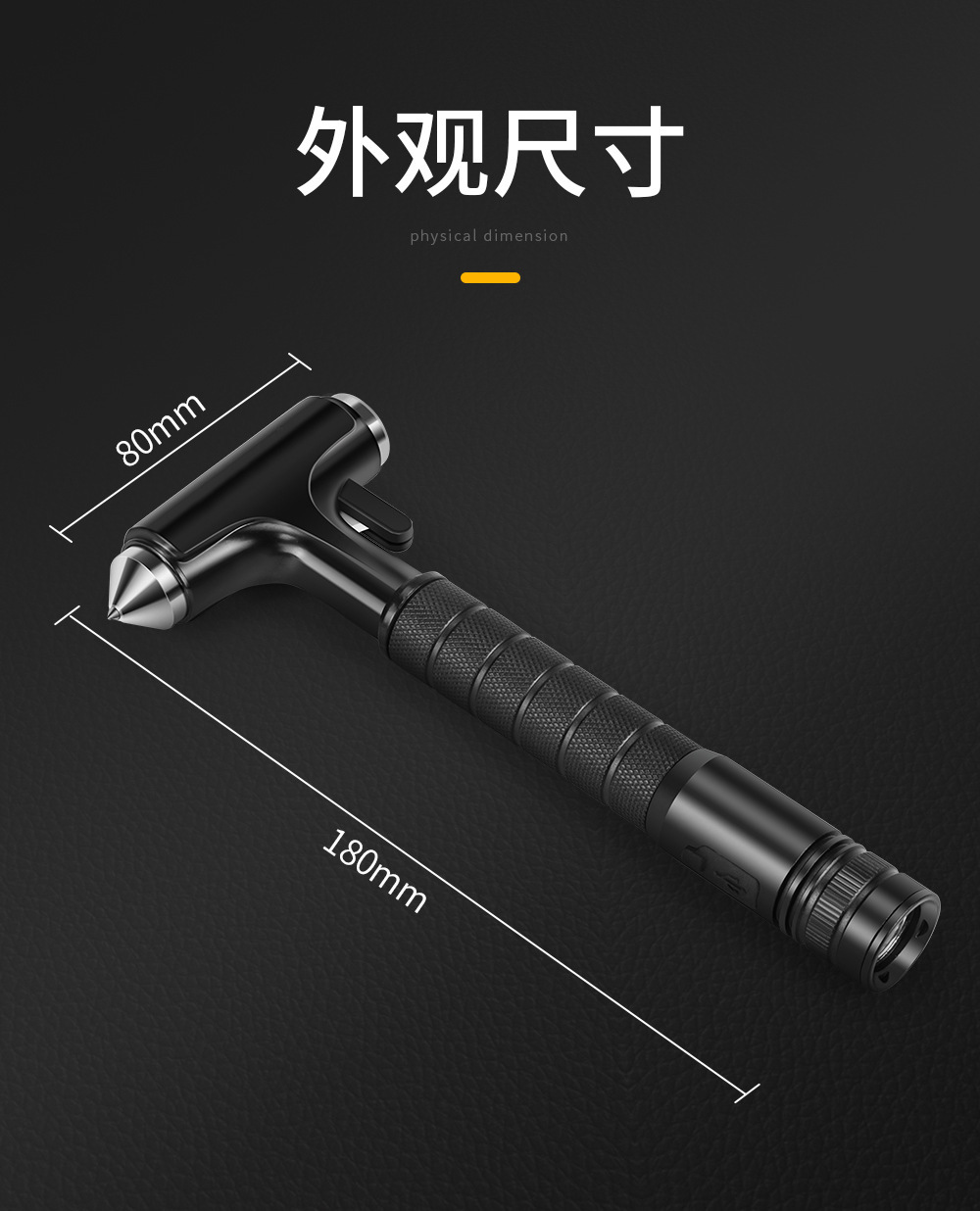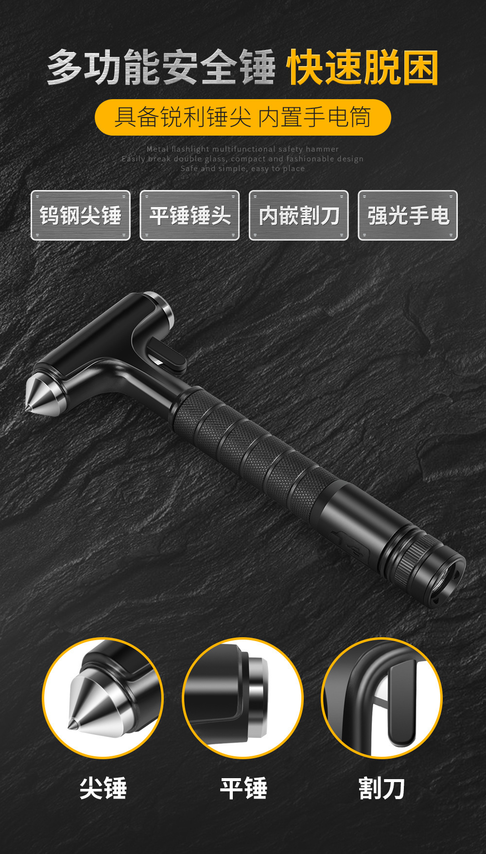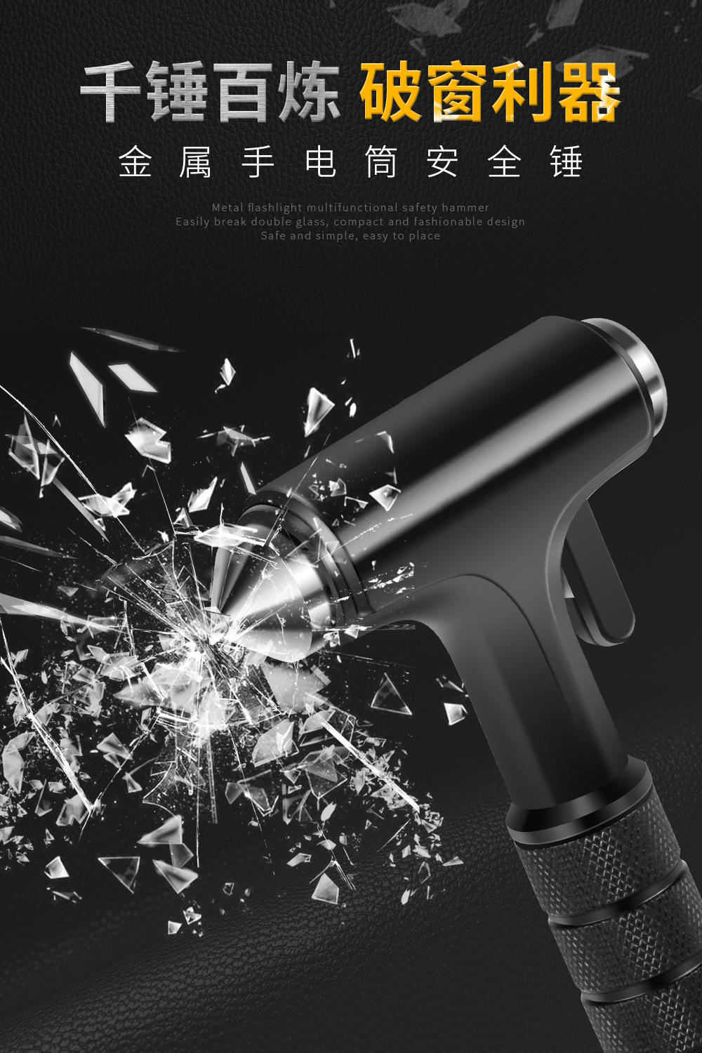 • 빛이 있는 검은 금속 안전 망치