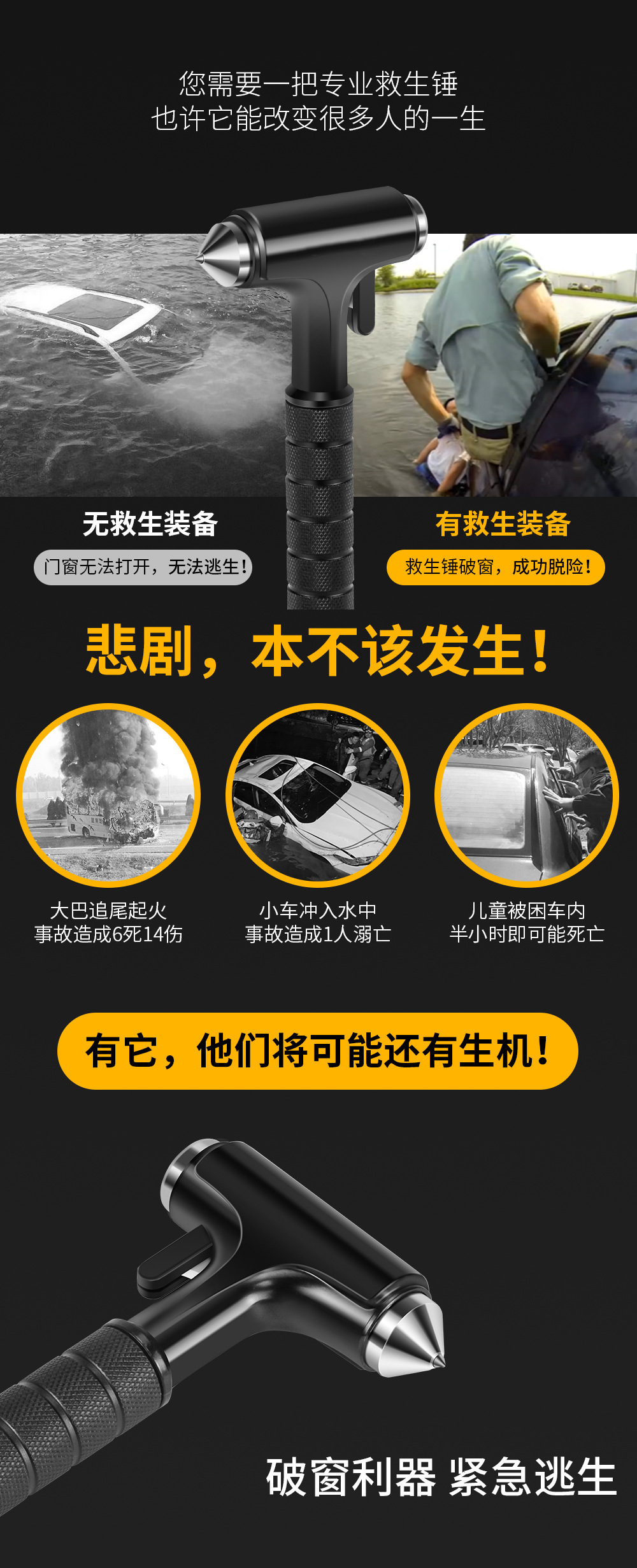 자동차 안전 망치 자동차 다기능 탈출 망치 자동차 창 유리 차단기 자동차 자기 방어 망치 1 초 창 차단기