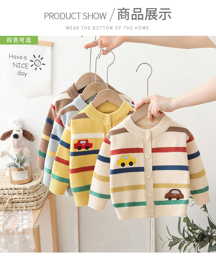 2025년 신상 남아용 스웨터 가디건, 세련된 유아 가을 의류, 아동 니트 자켓, 플리스 안감, 만화 디자인스토어 가기