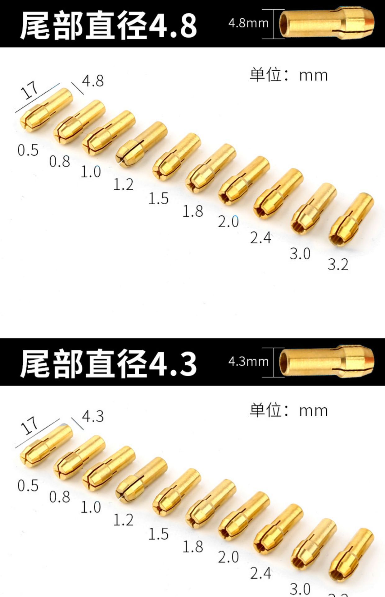 • 꼬리 직경 4.3mm 구리 척 10개(너트 포함)
