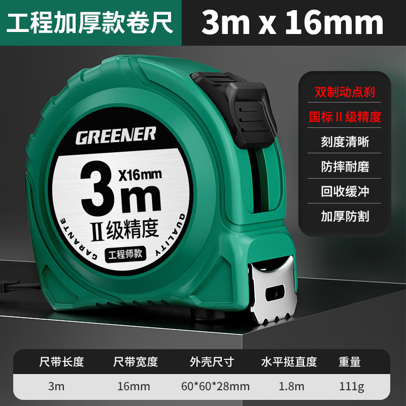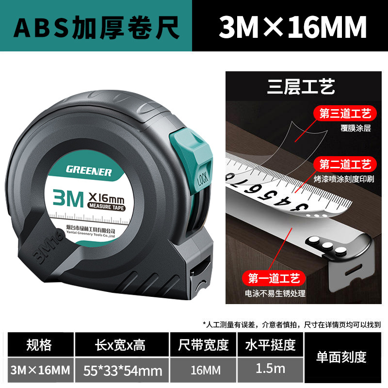 • [낙하 및 마모에 강함/고무 코팅 자동 잠금/스팟 브레이크] 3m×16MM, 레벨 II 정확도