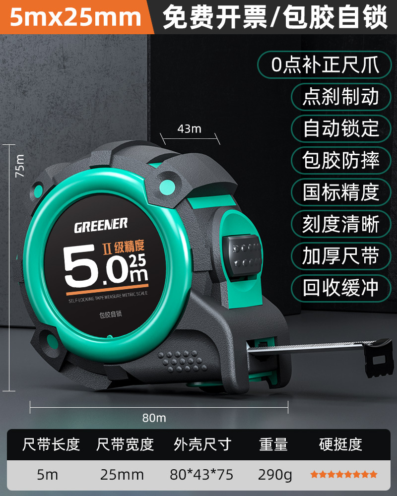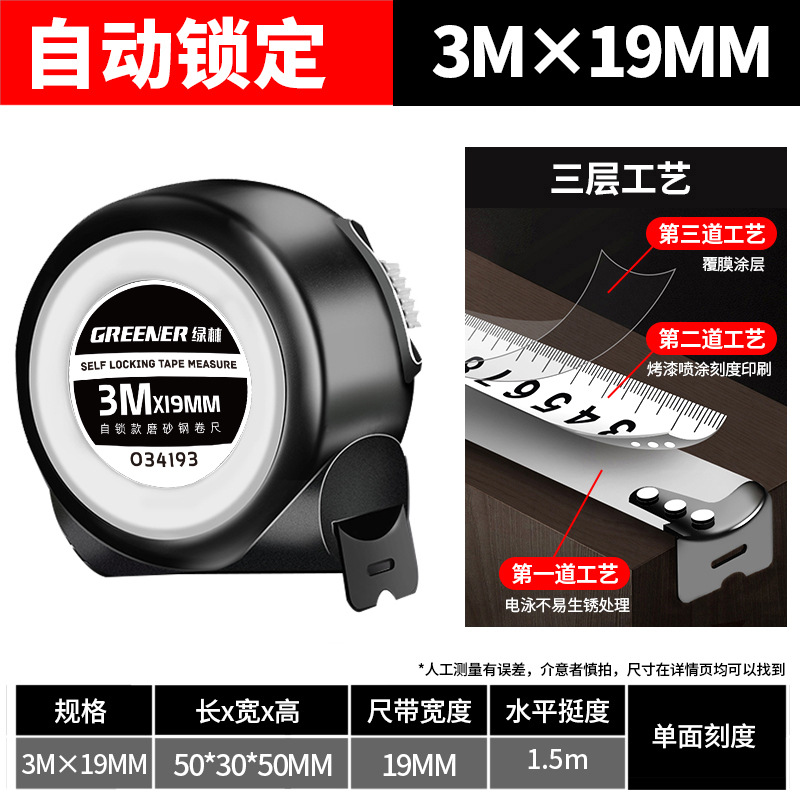 녹색 숲 강철 테이프 가정용 두꺼운 경화 5 미터 내마모성 안티 드롭 미니 3 통치자 GB 정밀 10 미터 통치자스토어 가기