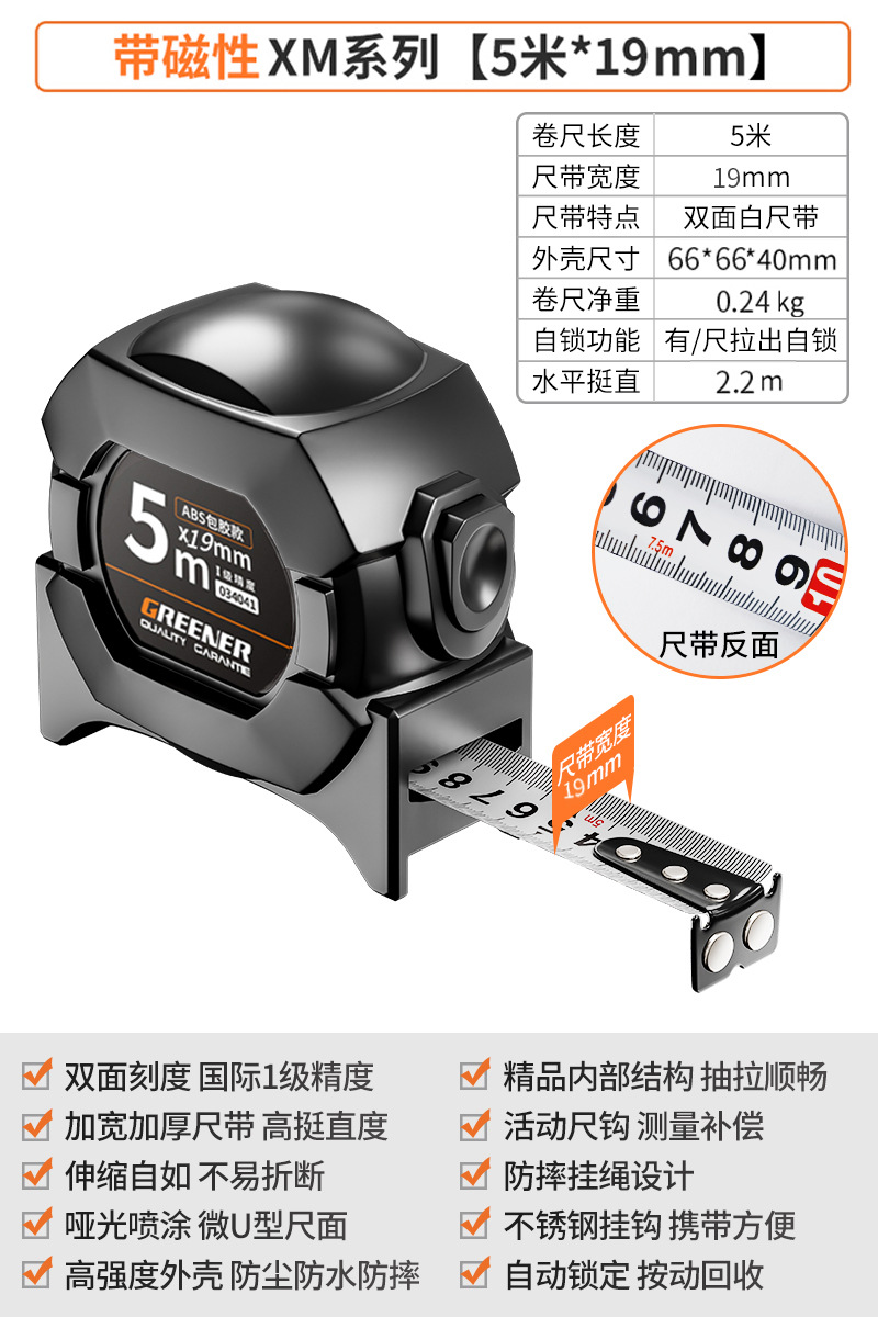 • [낙하 및 마모에 강함/고무 코팅 자동 잠금/스팟 브레이크] 5m×25MM, 레벨 II 정확도