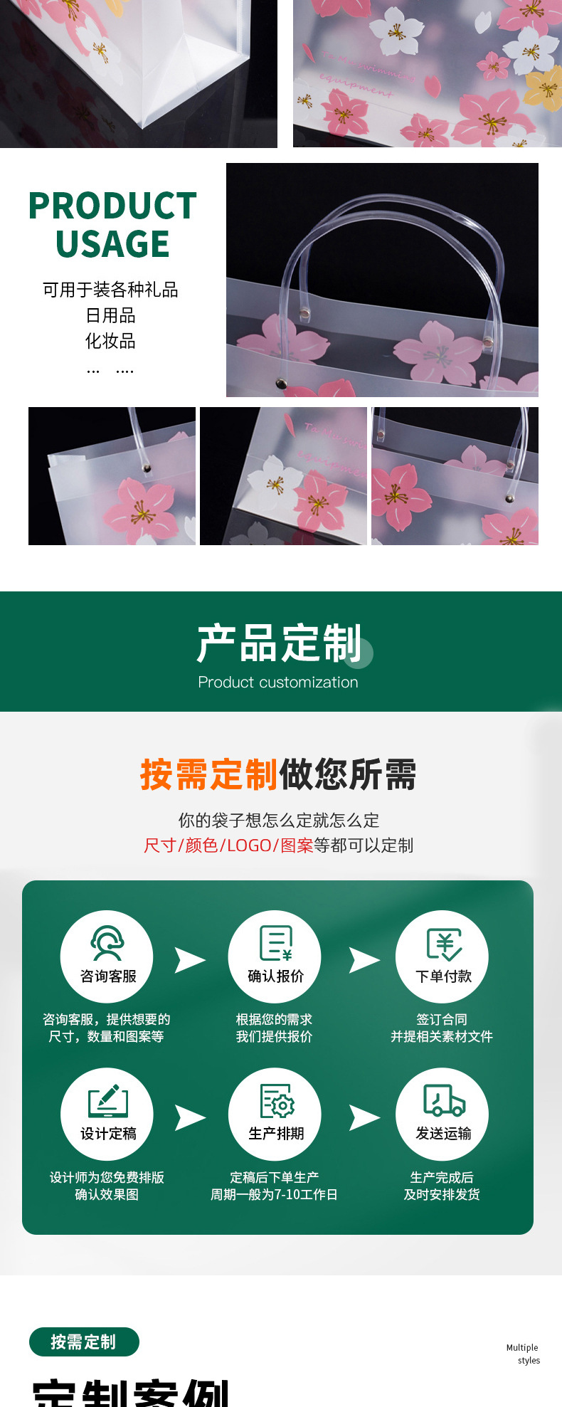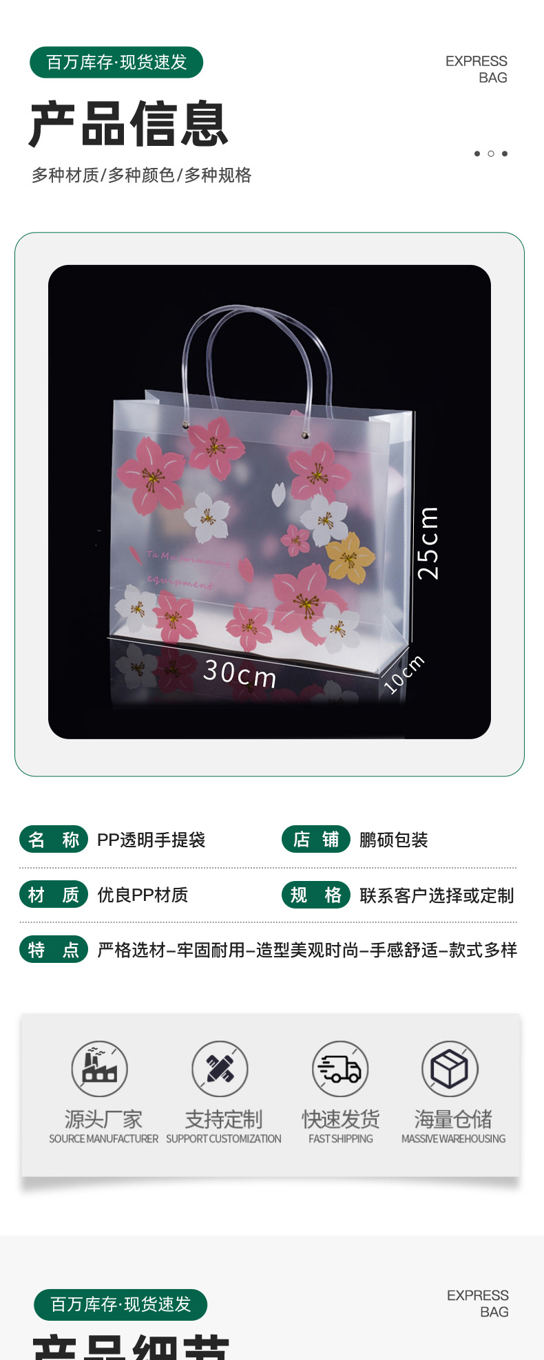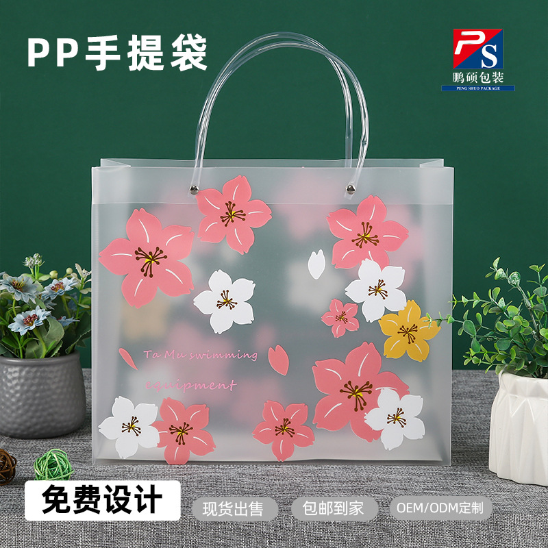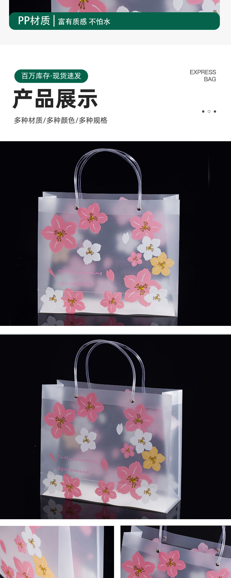 PP 투명 가방, 벚꽃 무늬 가죽 튜브 선물 가방, 결혼 기념품, 발렌타인데이 꽃, 생일, 무광 손가방스토어 가기