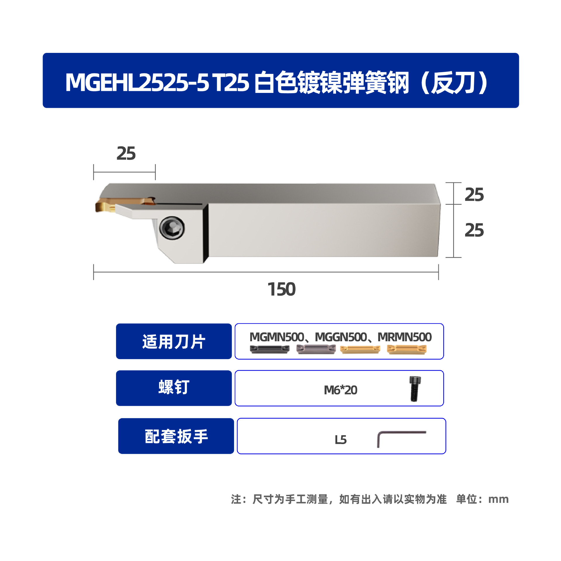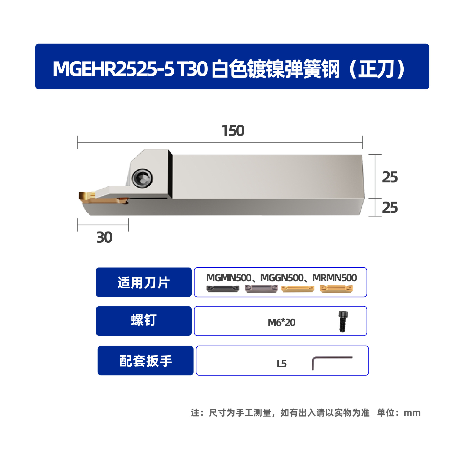 • MGEHR2525-1.5 T16 흰색 니켈 도금 스프링 스틸 포지티브 나이프