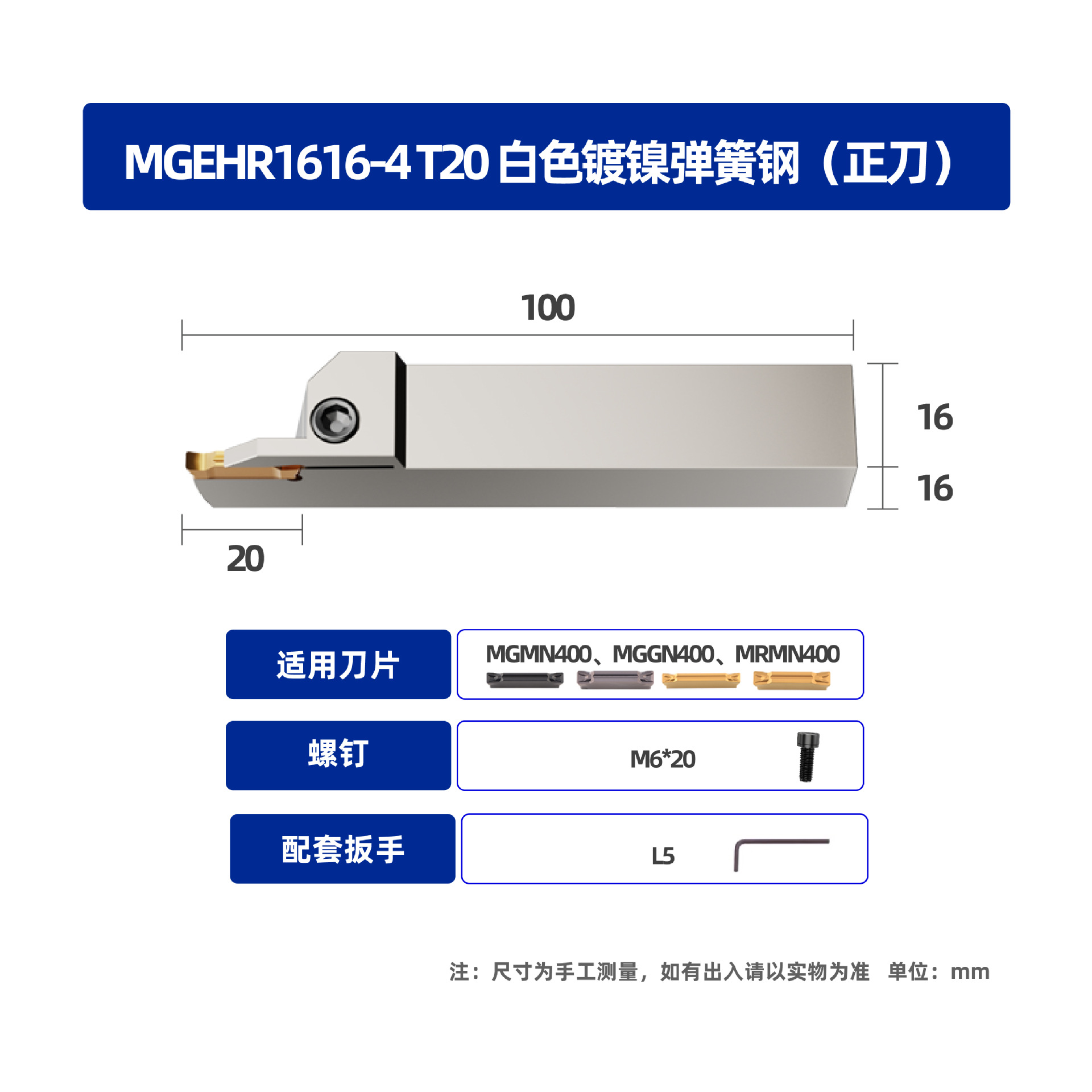 • MGEHR1616-4 T20 흰색 니켈 도금 스프링 강철 직선 칼