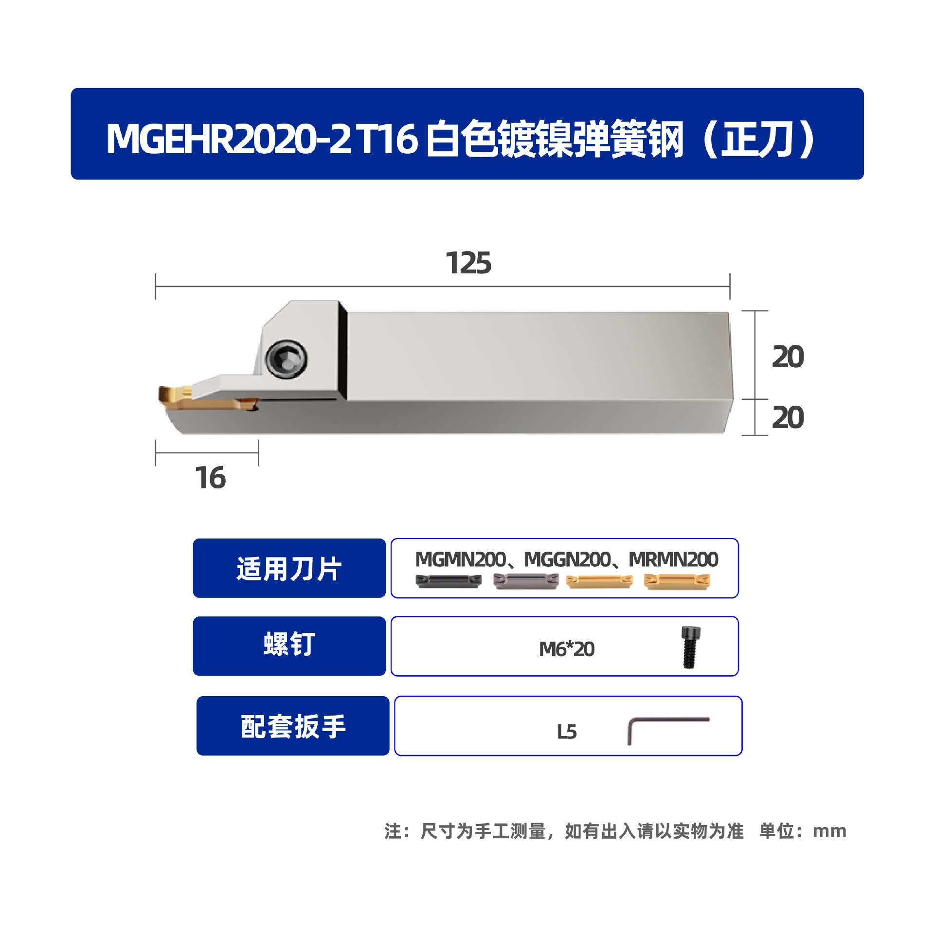 • MGEHR2020-1.5 T13 흰색 니켈 도금 스프링 스틸 포지티브 나이프
