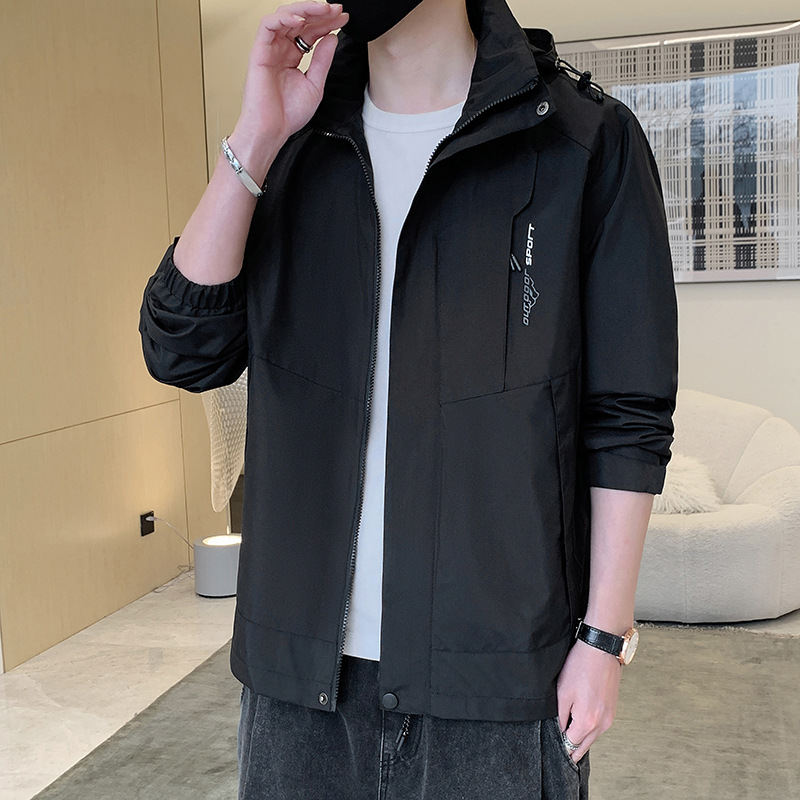 봄과 가을 새로운 야외 재킷 남자의 후드 방풍 방수 캐주얼 등산 세트 커플의 싱글 레이어 재킷 코트