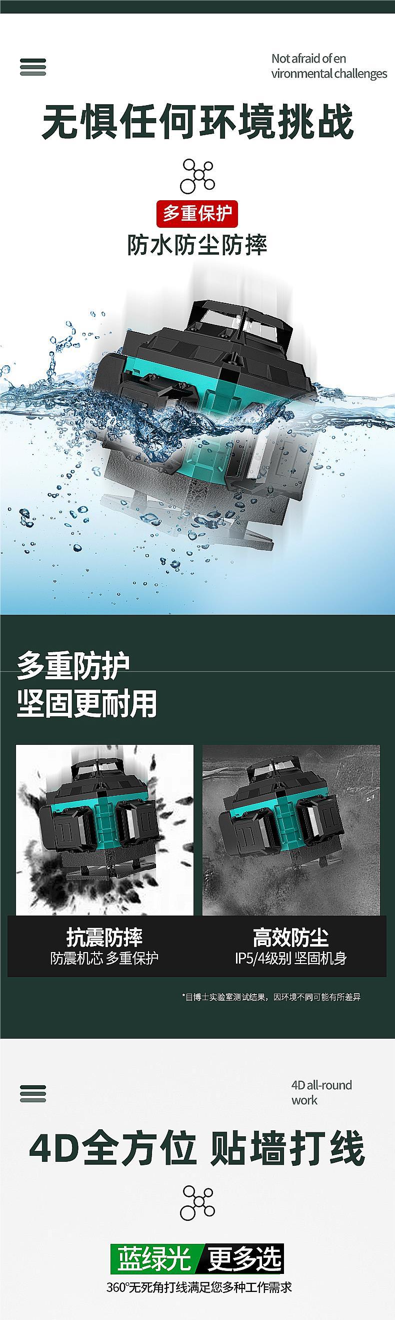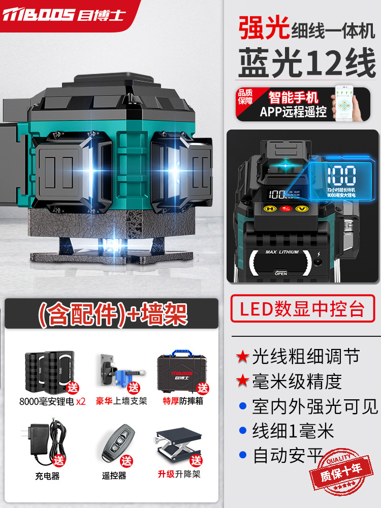• 매우 밝은 고화질 녹색광 12선 [지능형 디지털 디스플레이] 듀얼 배터리 + 벽걸이