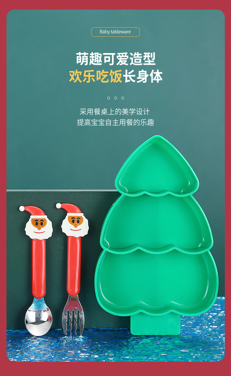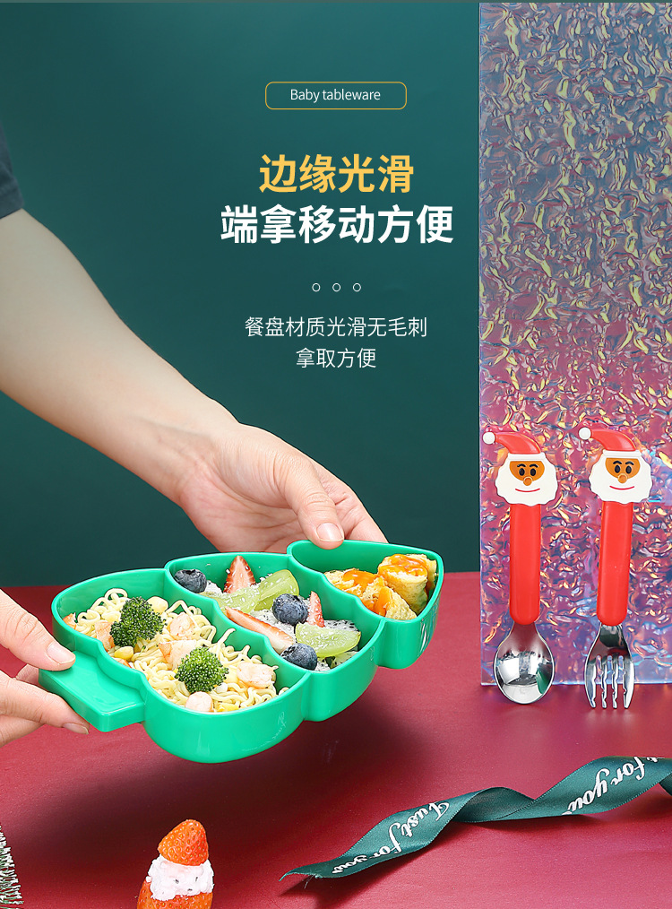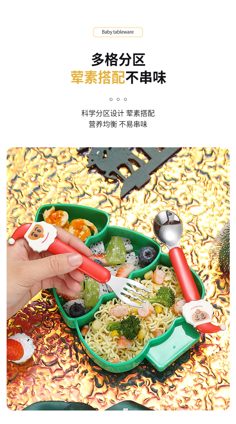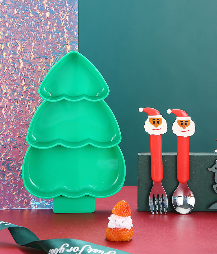 304 스테인레스 스틸 포크 스푼 식기 세트 가정용 크리스마스 과일 접시로 크리스마스 트리 3 칸 플레이트 베이비 푸드 보충