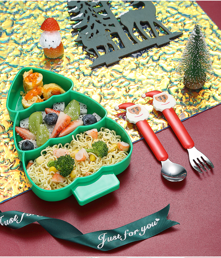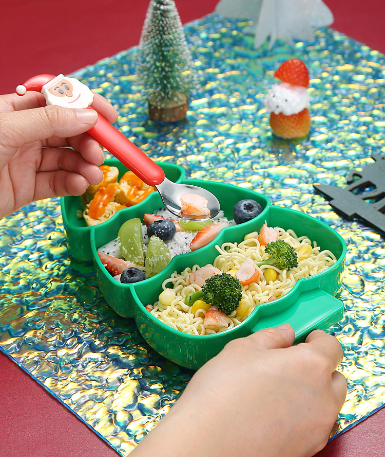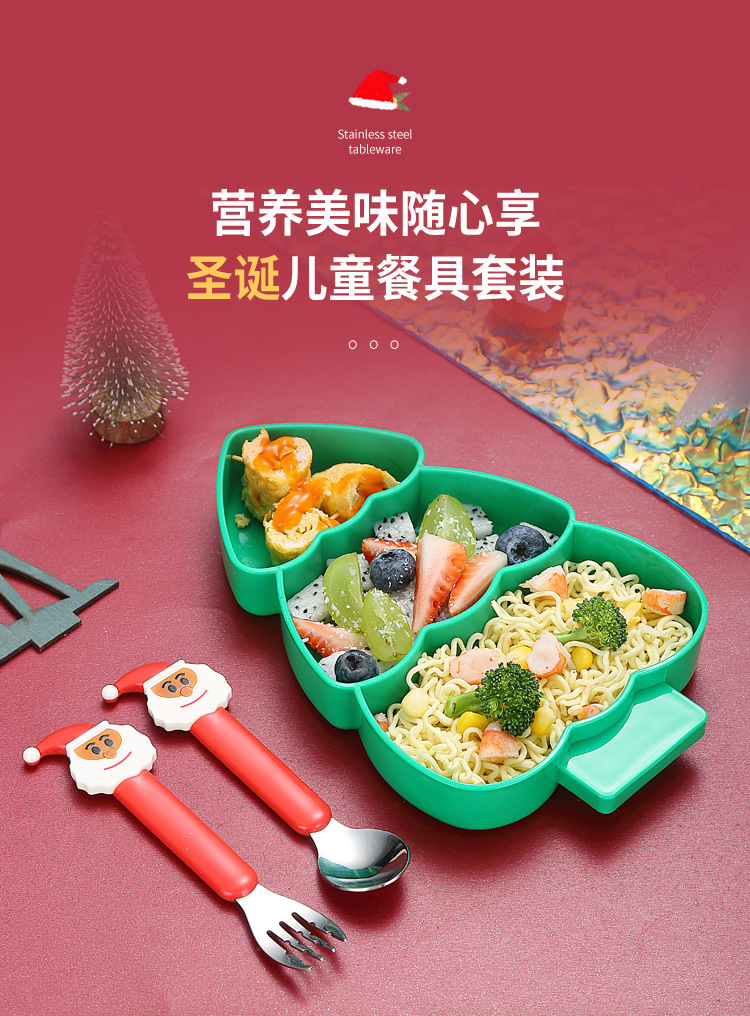 304 스테인레스 스틸 포크 스푼 식기 세트 가정용 크리스마스 과일 접시로 크리스마스 트리 3 칸 플레이트 베이비 푸드 보충스토어 가기
