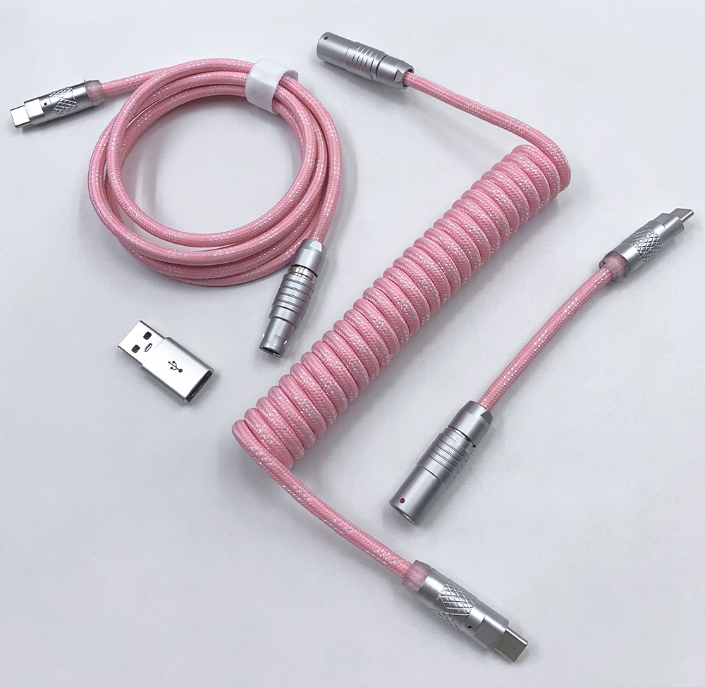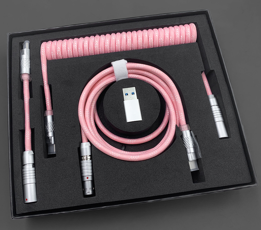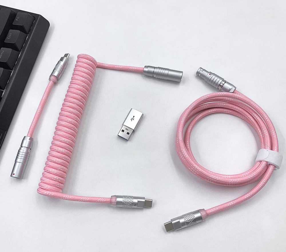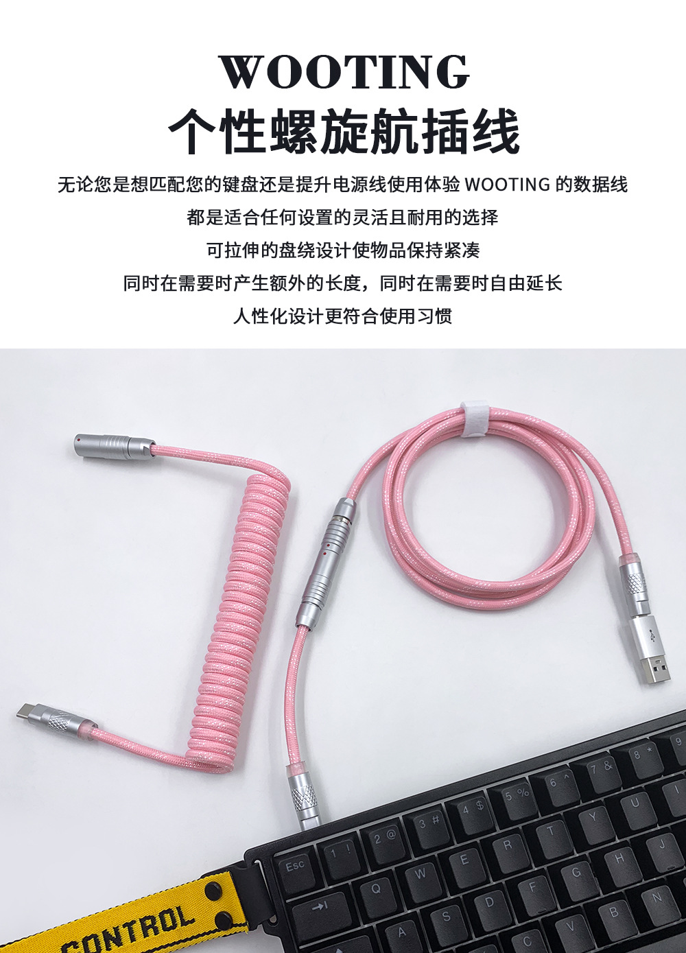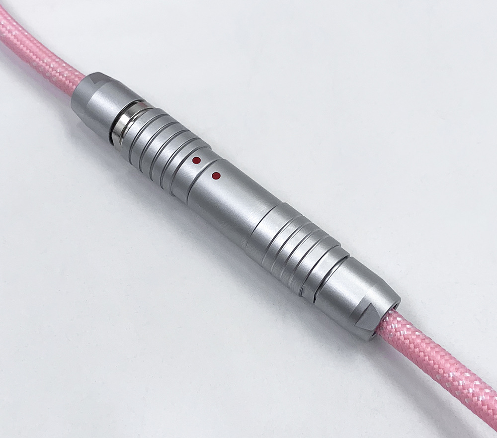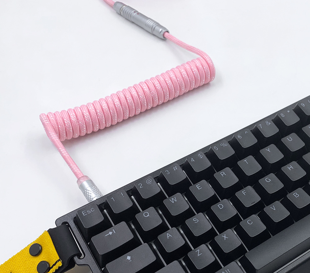 可拆卸电缆可以为包括 Wooting 60HE 在内的高性能设备提供稳定的电压,同时还提供独特的优质电缆。得益于耐用的 FGG/PHG 连接器,电缆可快速轻松地分成两部;长主电缆和短直电缆或较长的盘绕电缆。