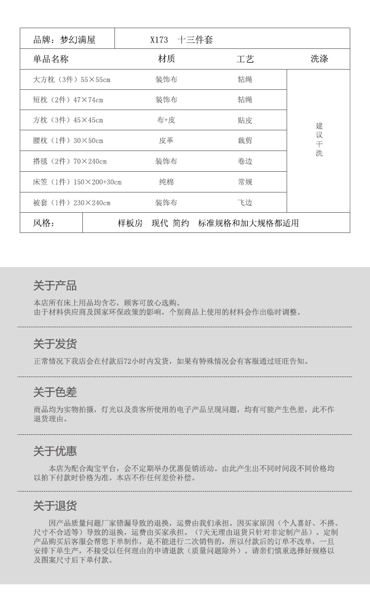 판타지 풀 하우스 현대 간단한 13 피스 침구 호텔 홈스테이 모델 룸 라이트 럭셔리 스페셜 부드러운 옷스토어 가기