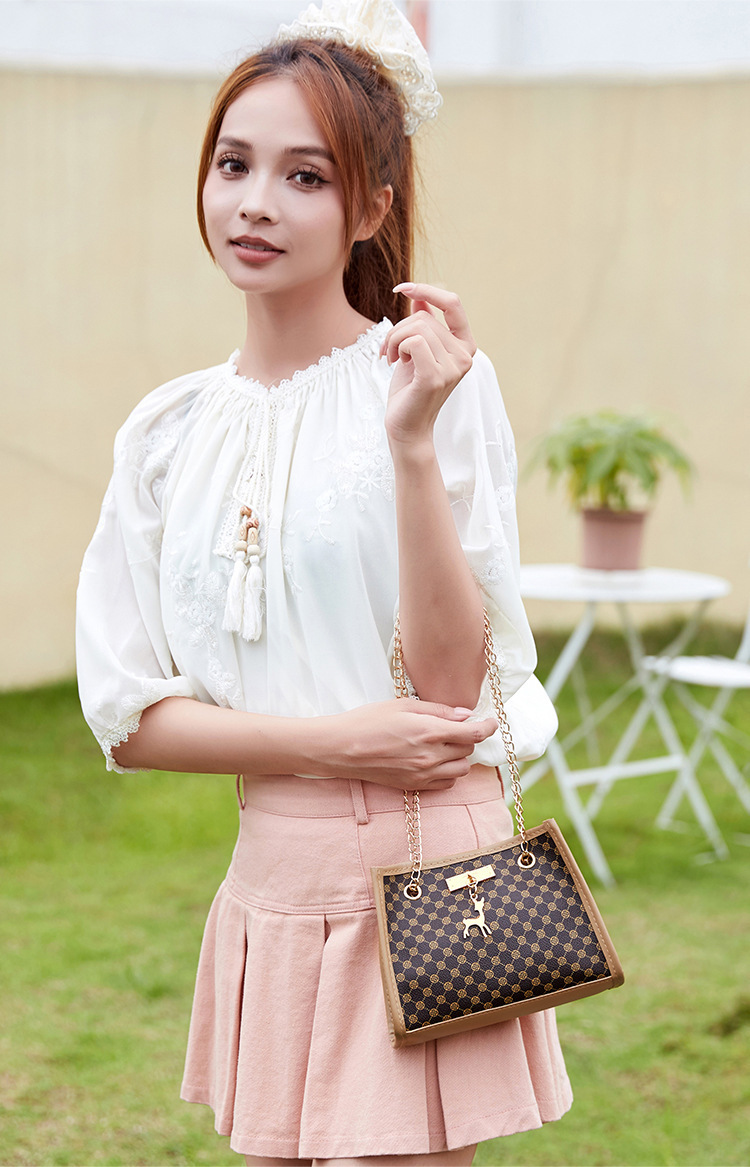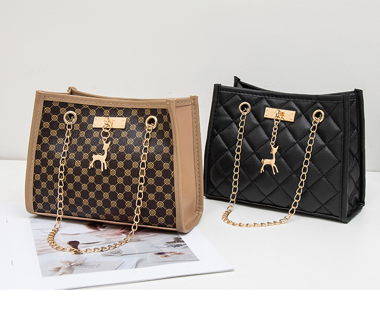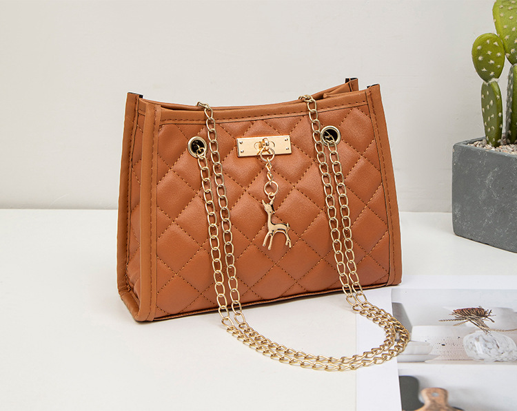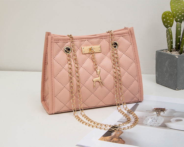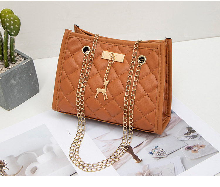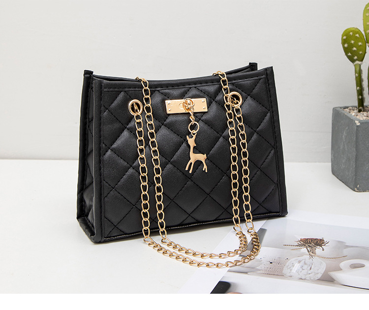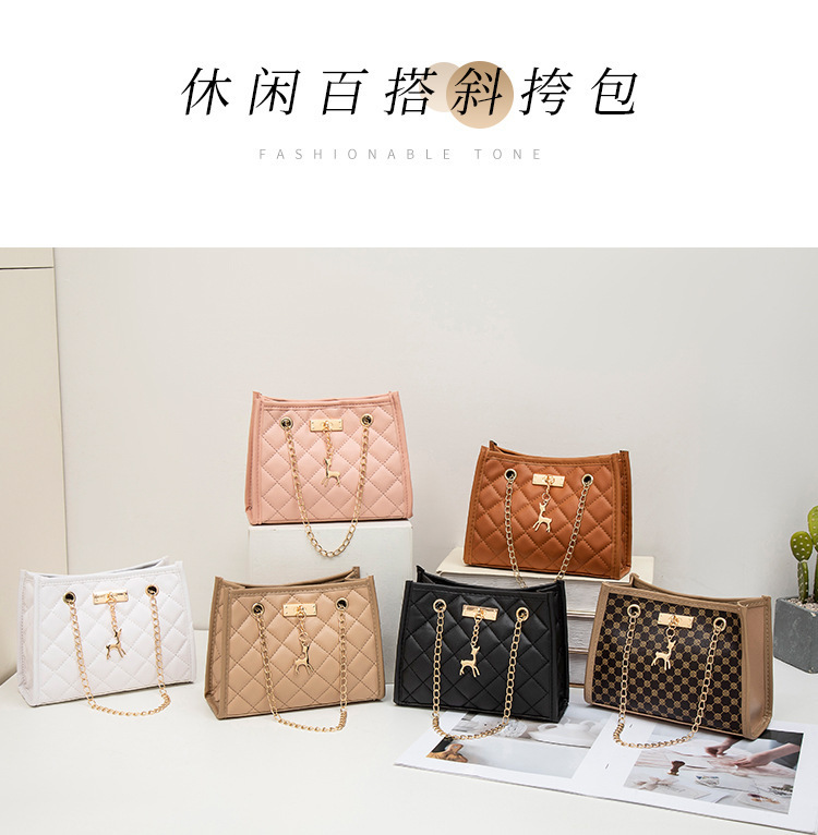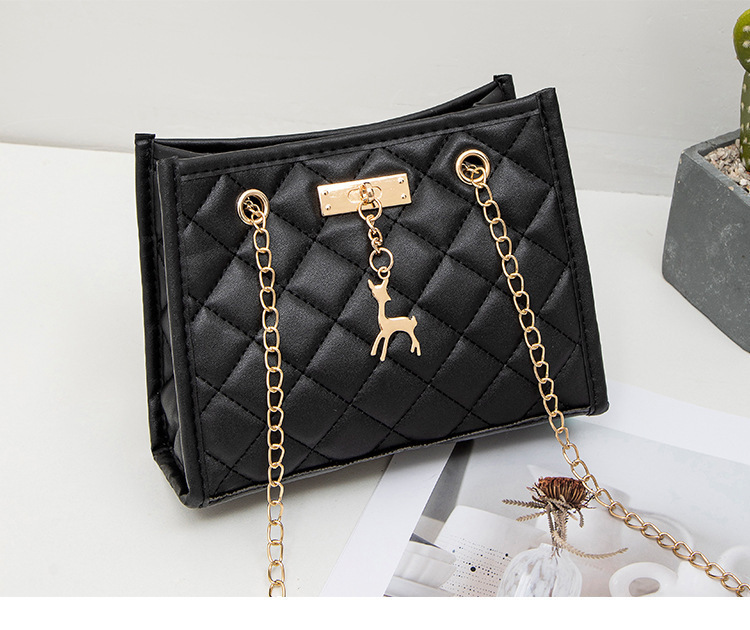 사슴 모양 펜던트 장식 체인 크로스백 패션 캐주얼 2025 신상품 다이아몬드 자수 여성 숄더 버킷백