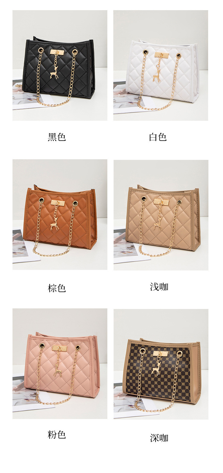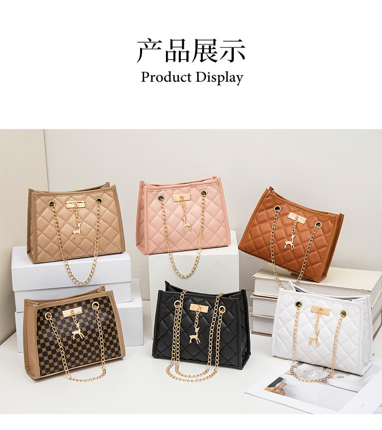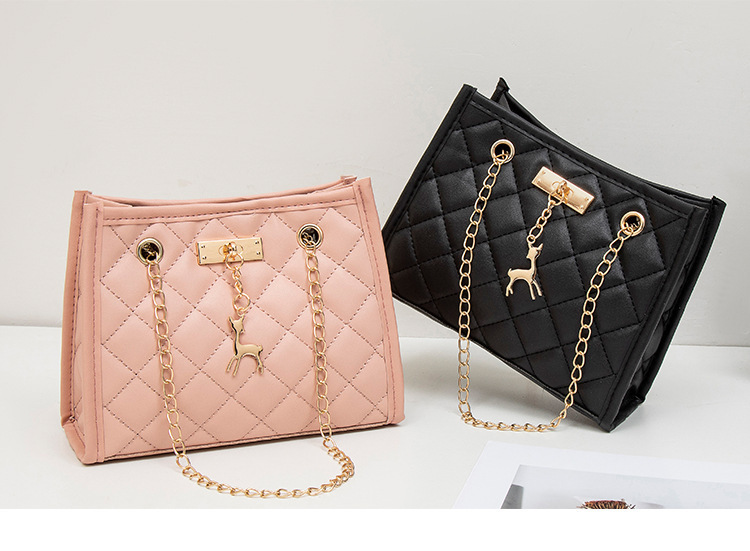 사슴 모양 펜던트 장식 체인 크로스백 패션 캐주얼 2025 신상품 다이아몬드 자수 여성 숄더 버킷백스토어 가기