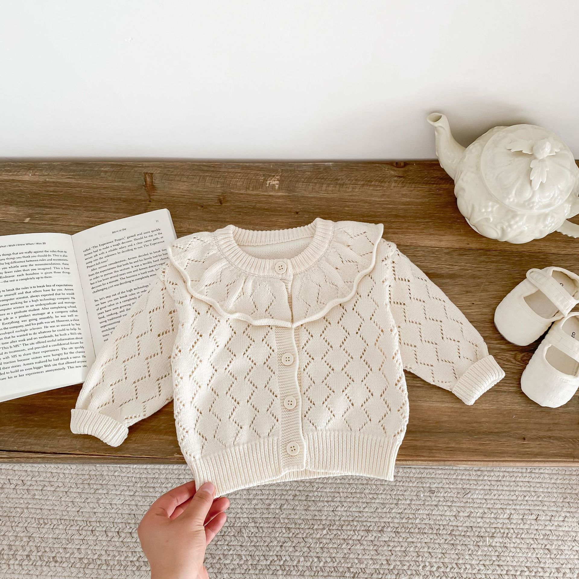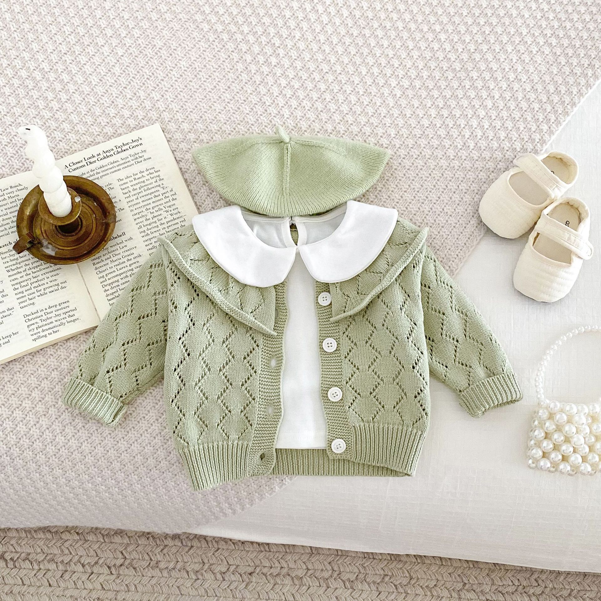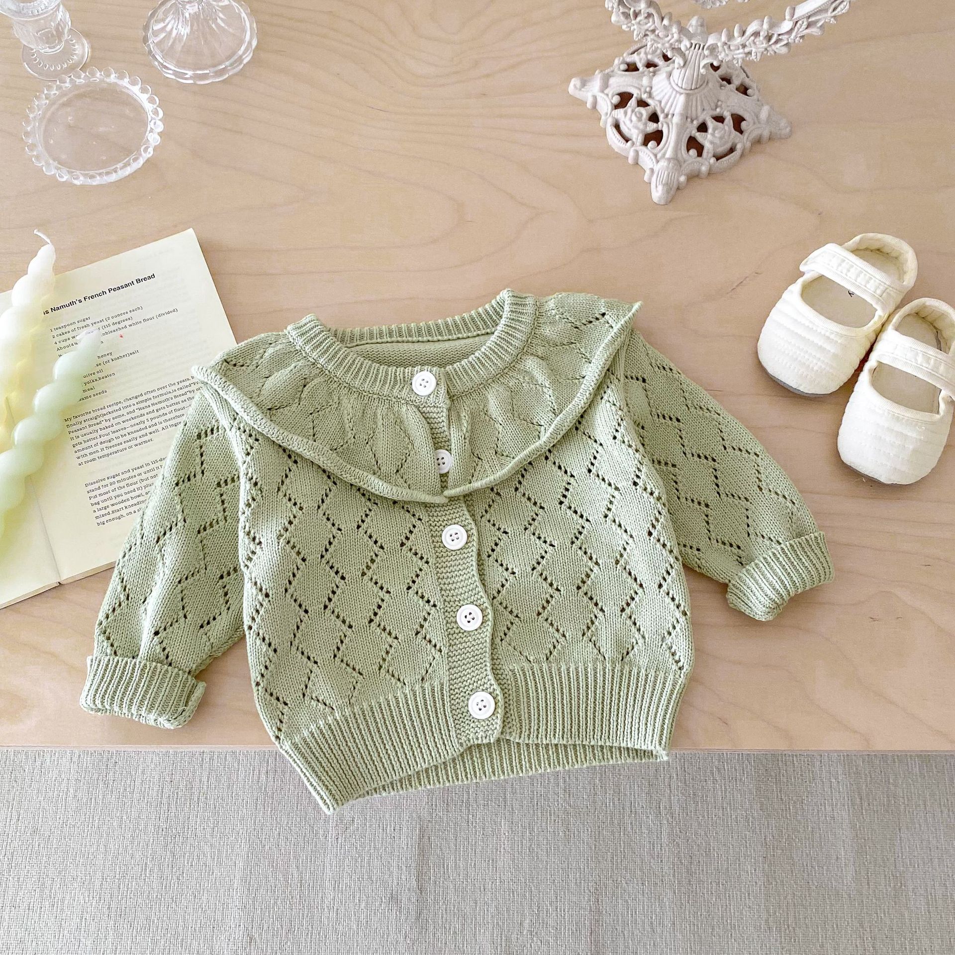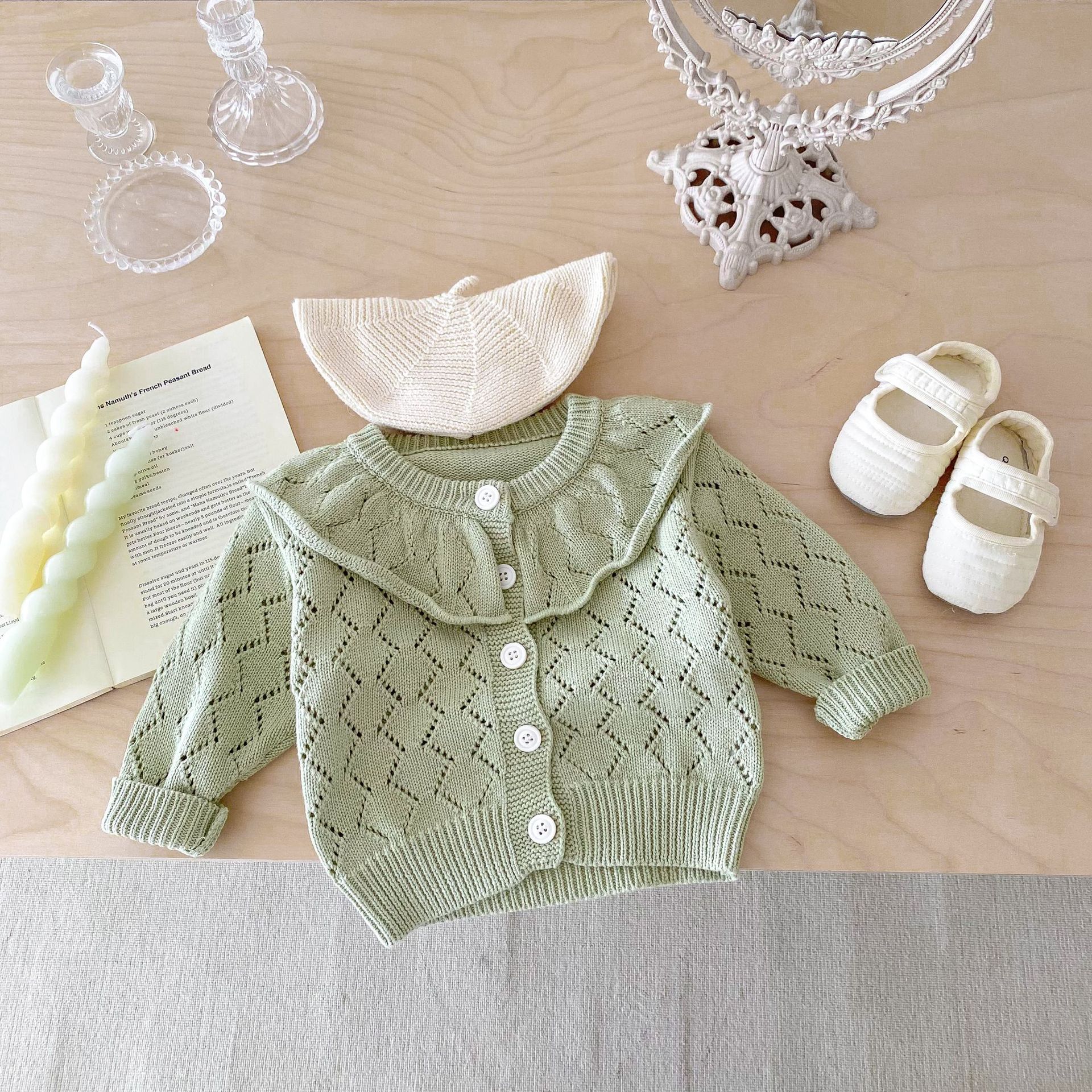 가을 2024 새로운 0-3 세 아기 소녀 스웨터 할로우 코튼 원사 니트 대형 로터칼라 긴 소매 자켓스토어 가기