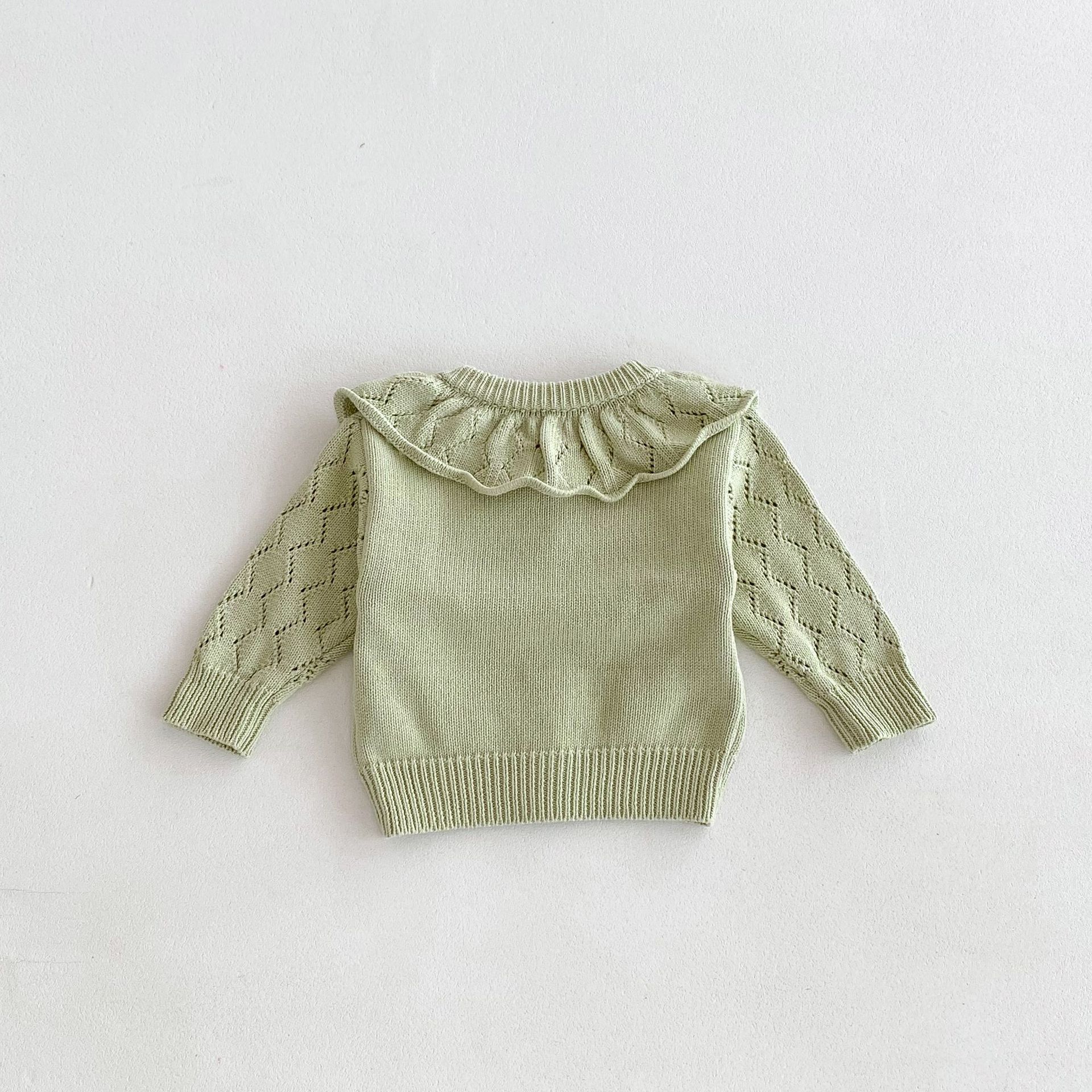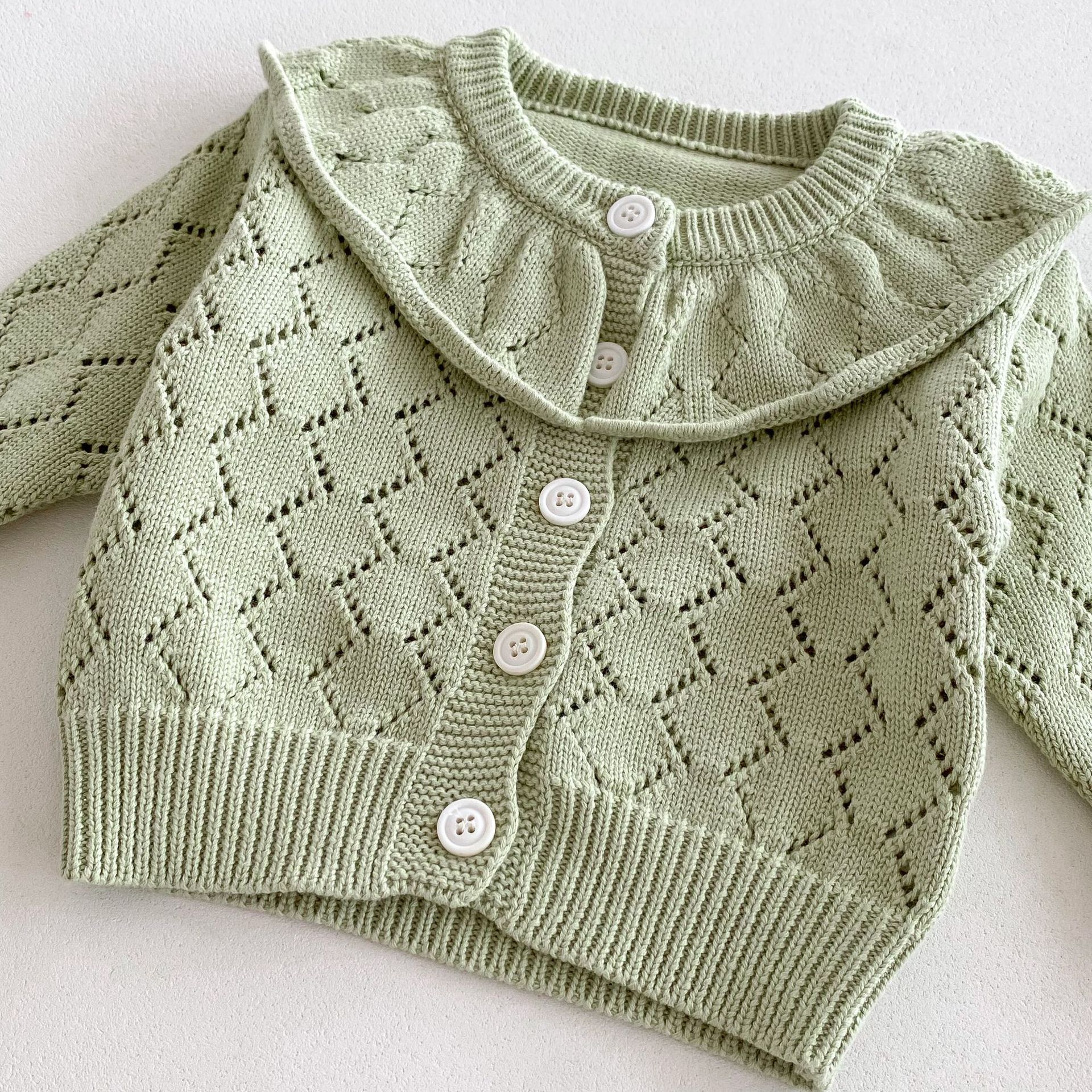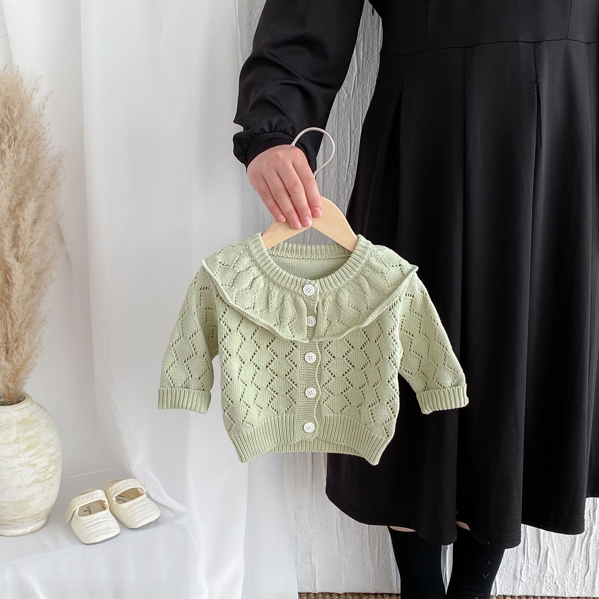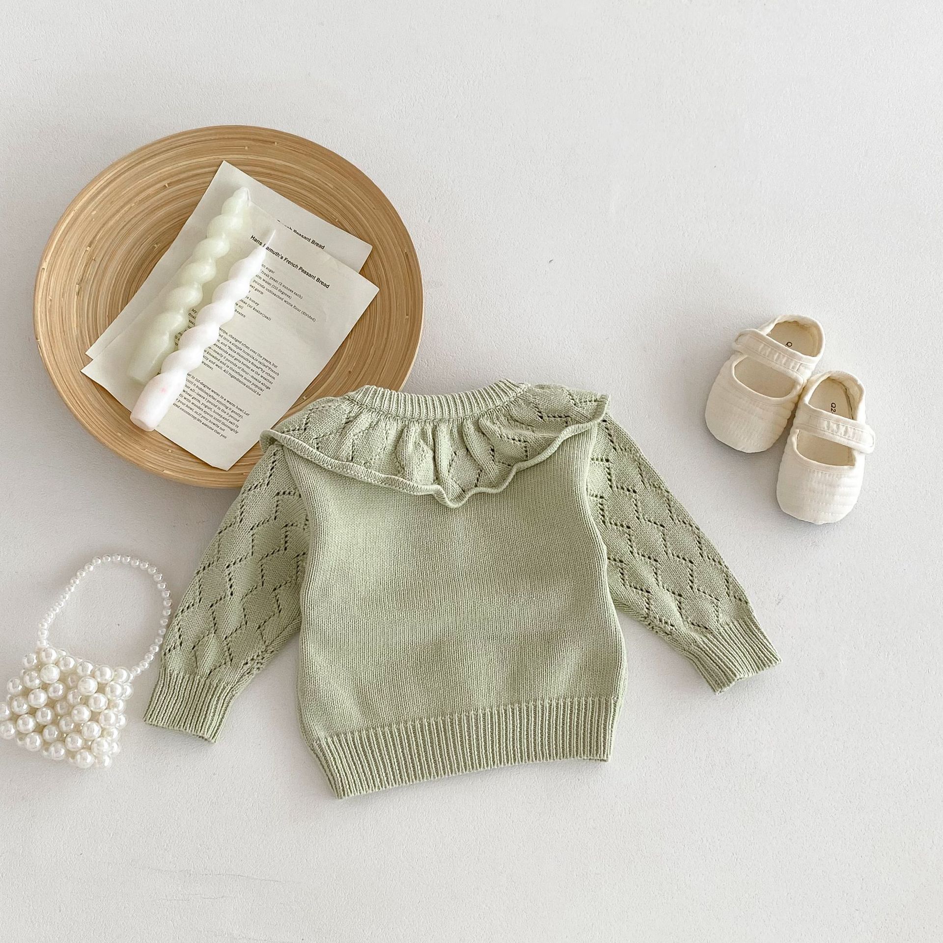 가을 2024 새로운 0-3 세 아기 소녀 스웨터 할로우 코튼 원사 니트 대형 로터칼라 긴 소매 자켓스토어 가기
