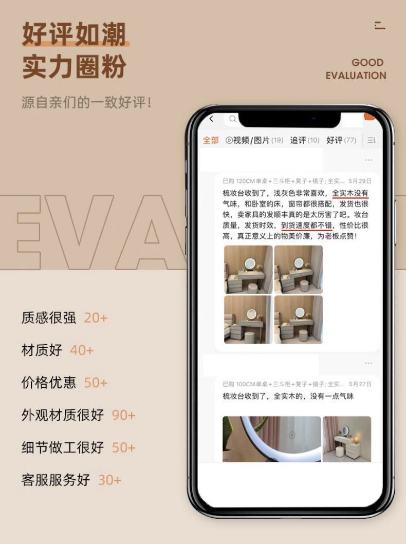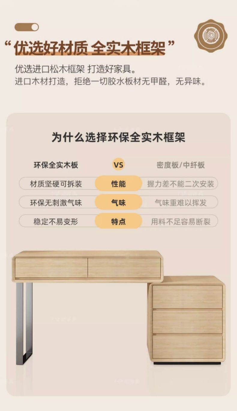 • 【 0.8m 】원목 테이블 + 원목 서랍장 + 화장대 + 화장 거울