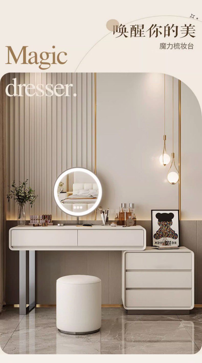• 【 1.2m 】원목 테이블 + 원목 서랍장 + 화장대 + 화장 거울