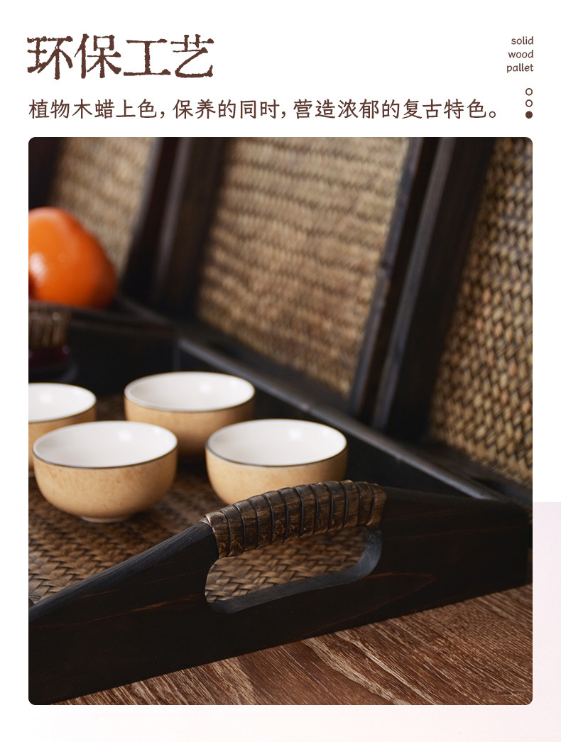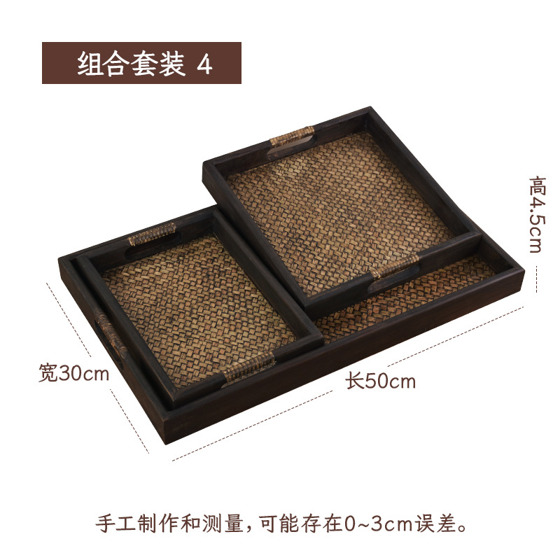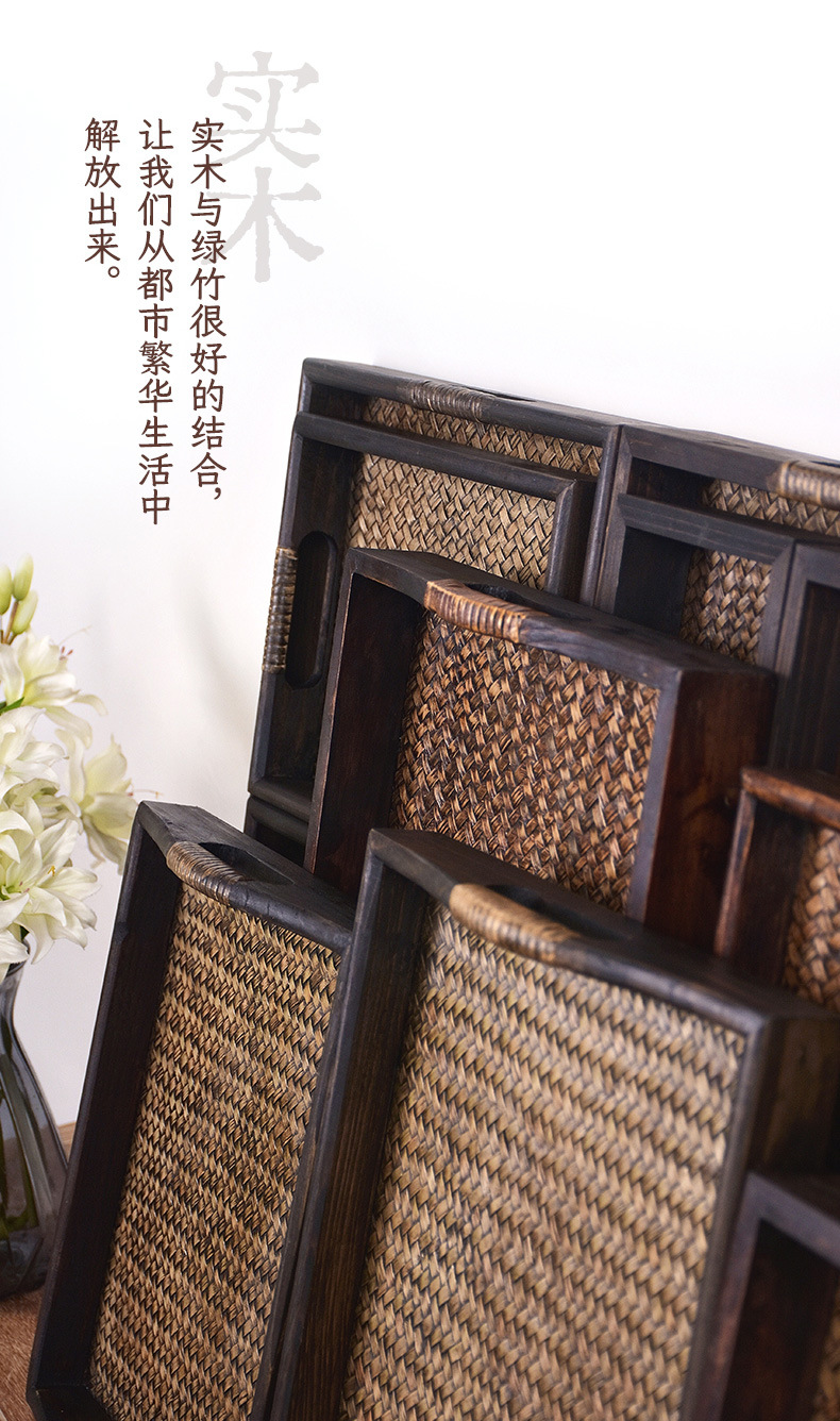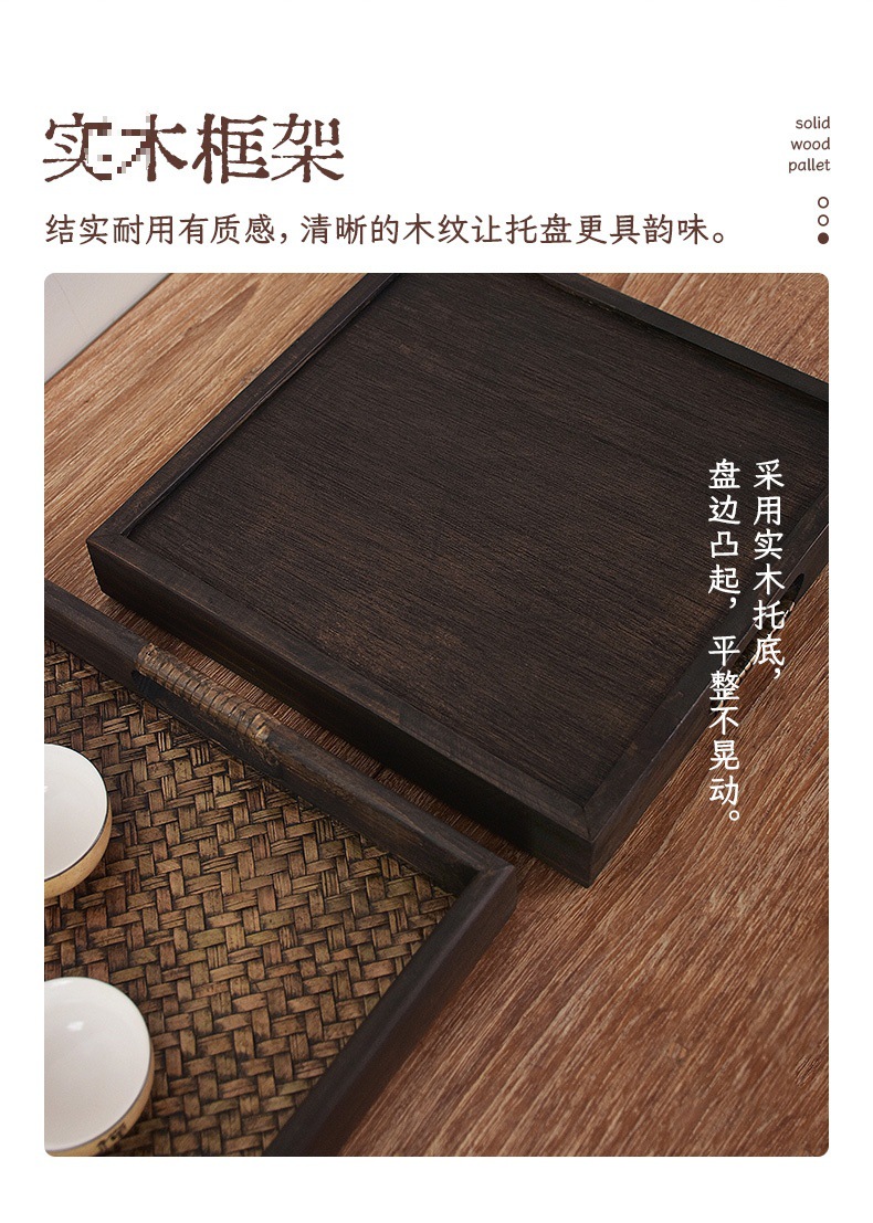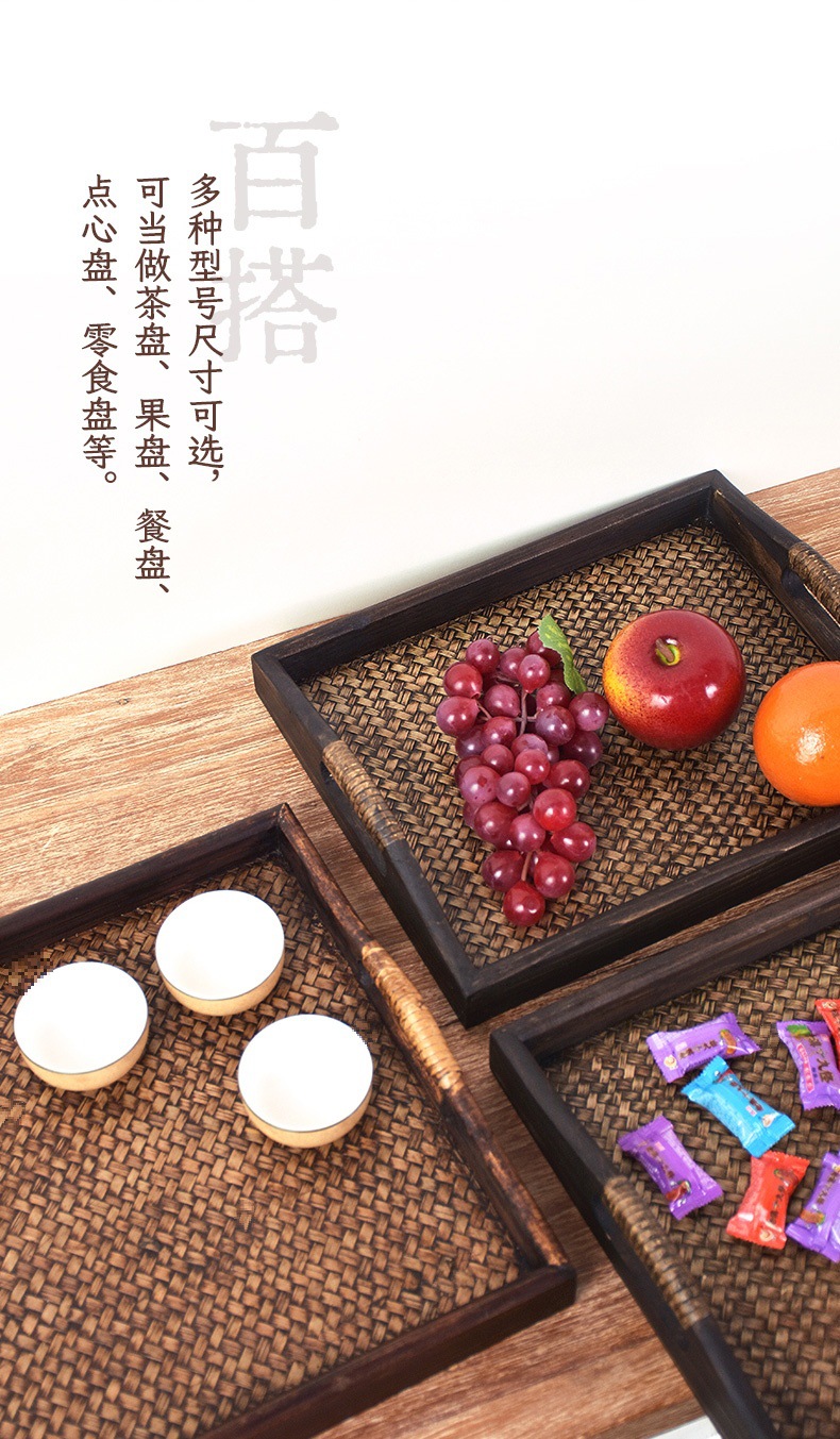차 세트 트레이 직사각형 솔리드 우드 티 트레이 티 트레이 일본 가정용 등나무 트레이 뷰티 살롱 촬영 신제품