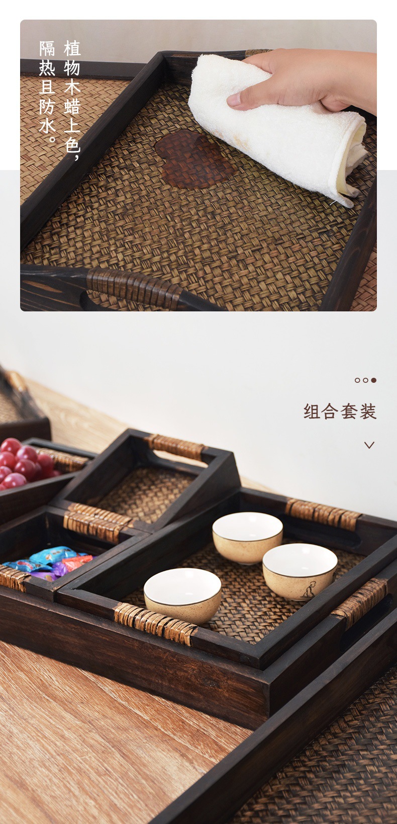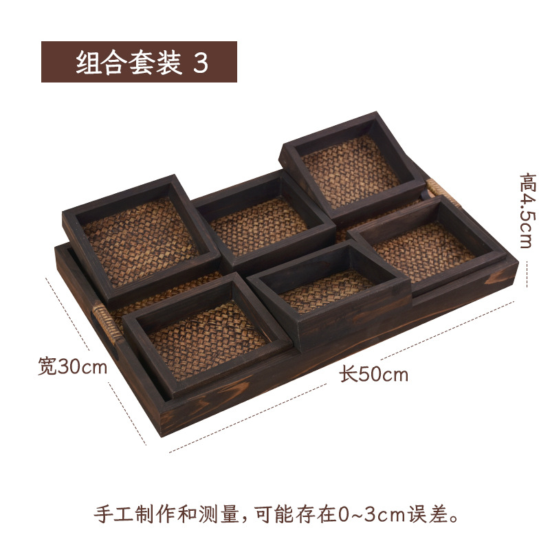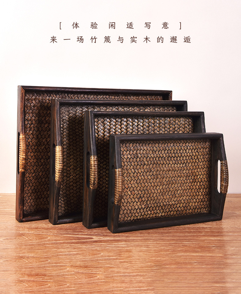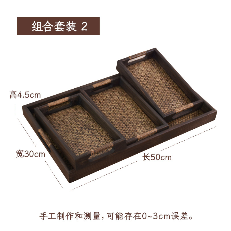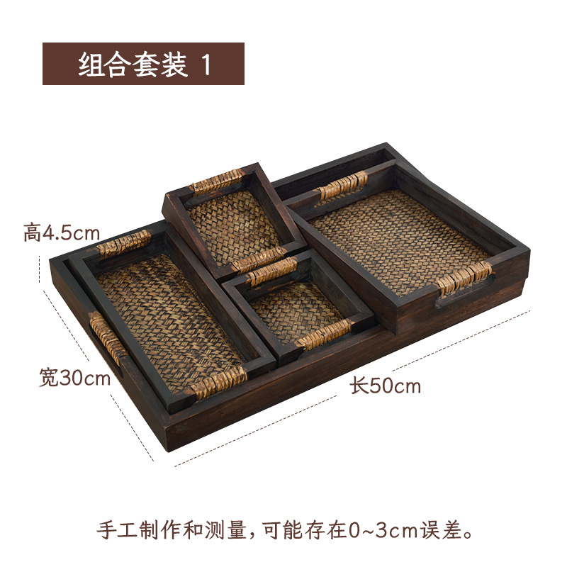 차 세트 트레이 직사각형 솔리드 우드 티 트레이 티 트레이 일본 가정용 등나무 트레이 뷰티 살롱 촬영 신제품