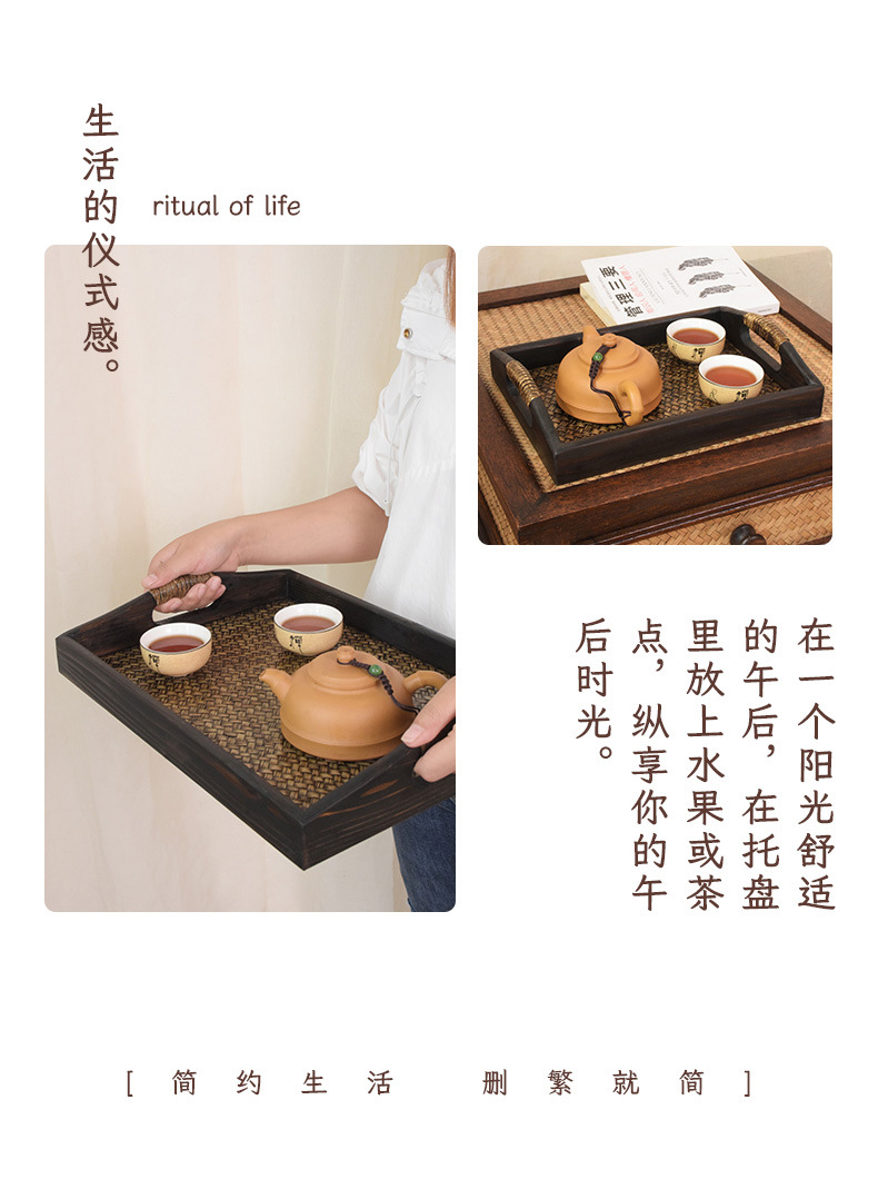차 세트 트레이 직사각형 솔리드 우드 티 트레이 티 트레이 일본 가정용 등나무 트레이 뷰티 살롱 촬영 신제품스토어 가기