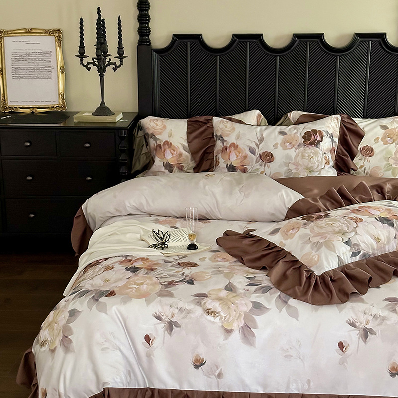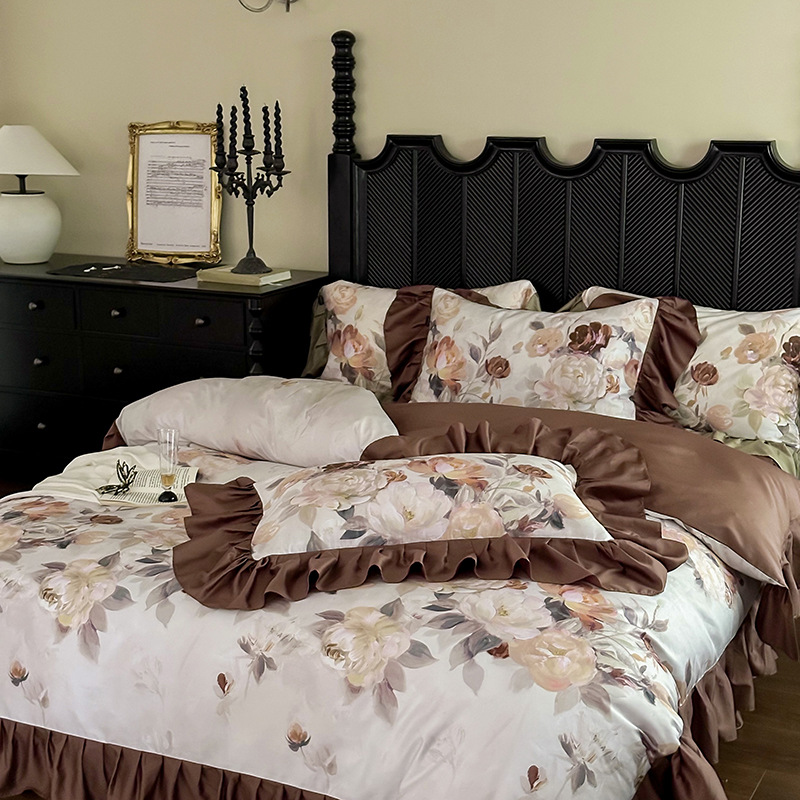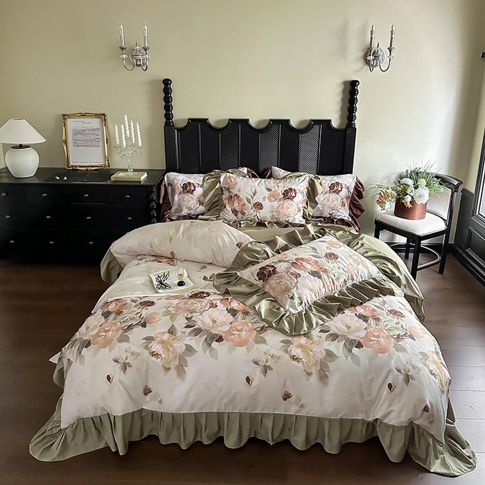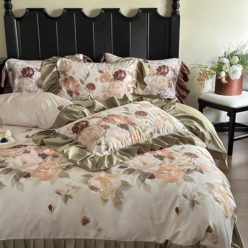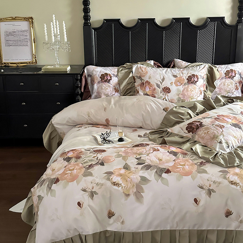 2024 새로운 100 면 새틴 디지털 인쇄 면 이불 커버 침대 시트 스커트 4 피스 세트