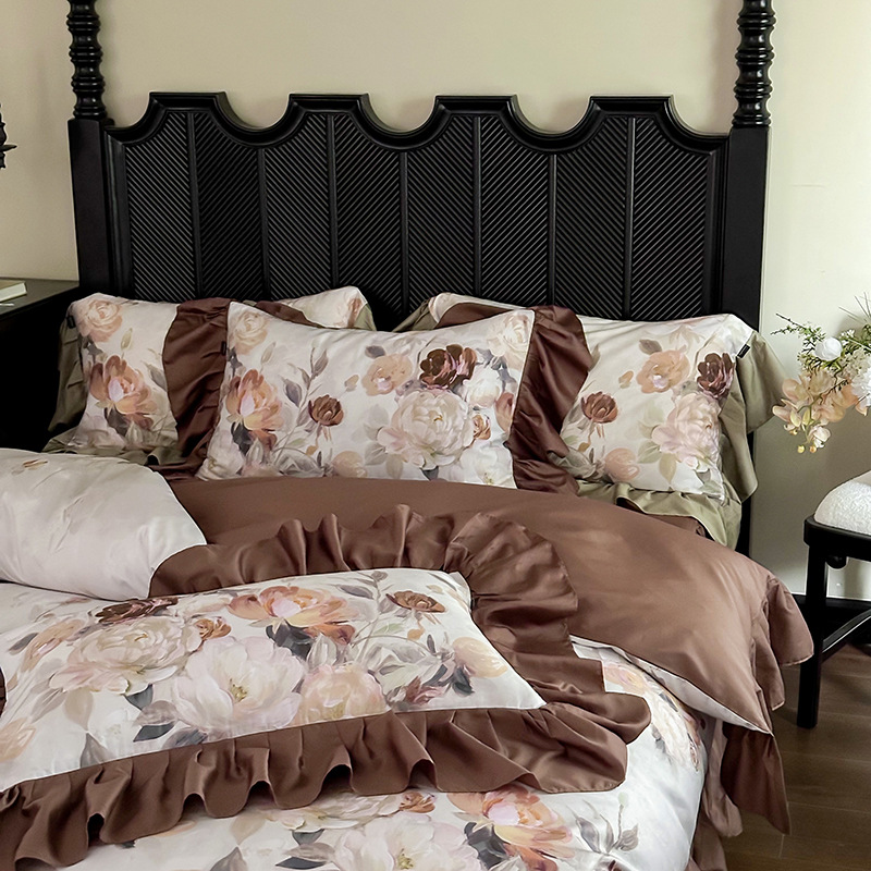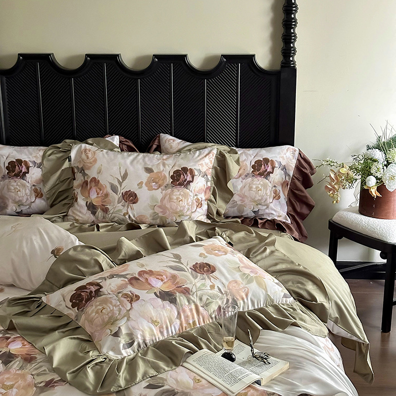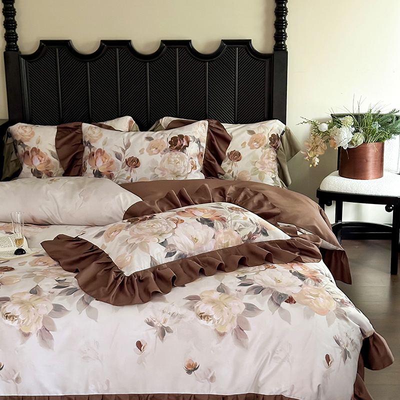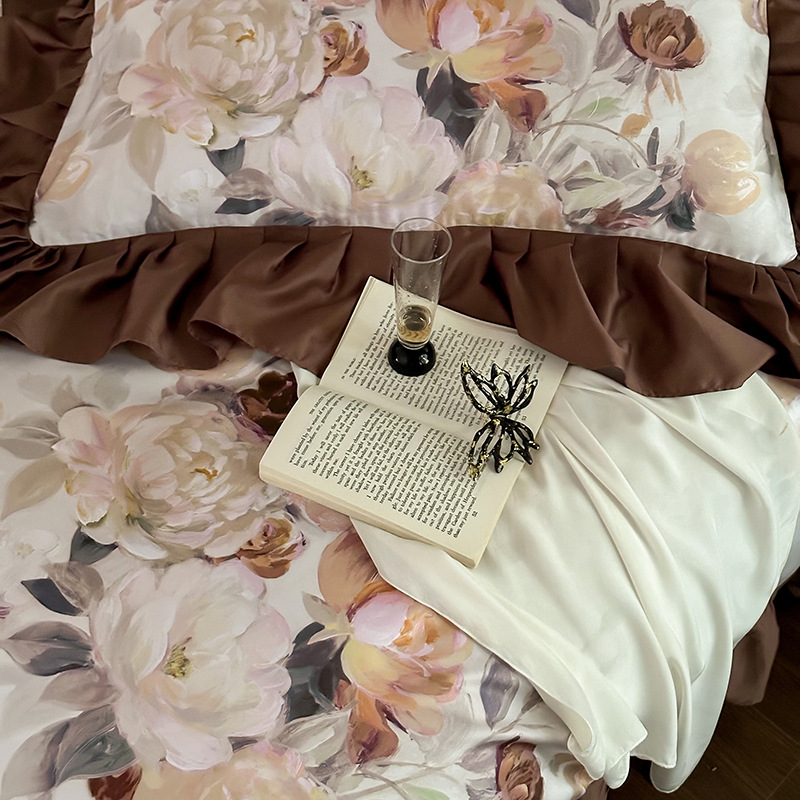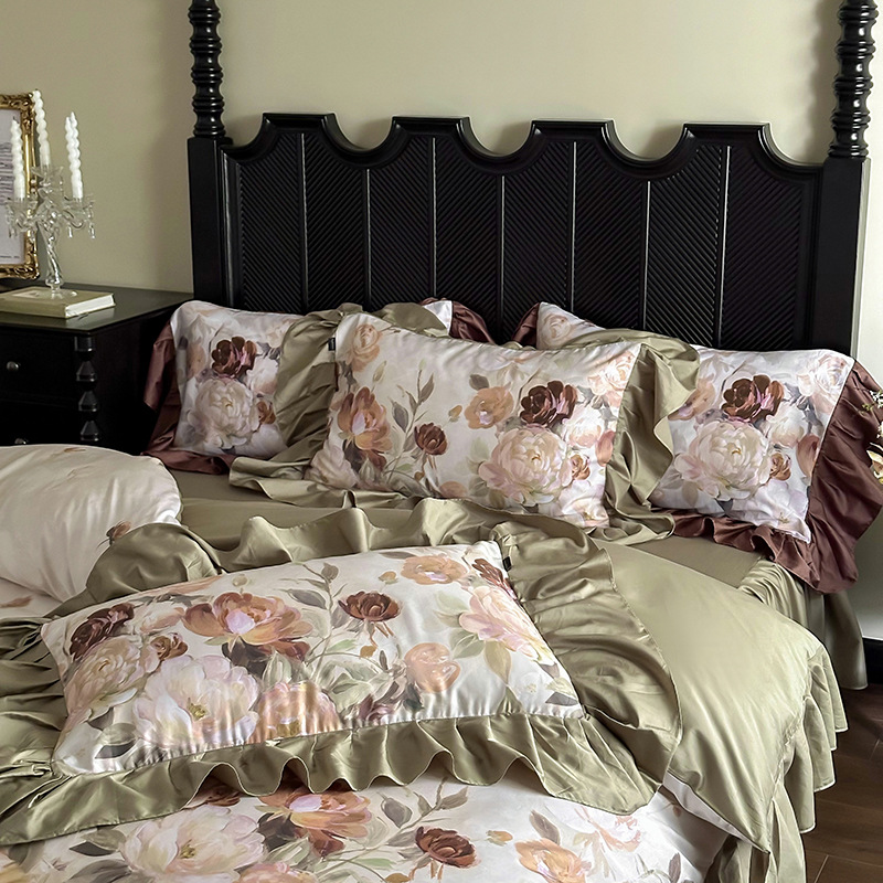 2024 새로운 100 면 새틴 디지털 인쇄 면 이불 커버 침대 시트 스커트 4 피스 세트