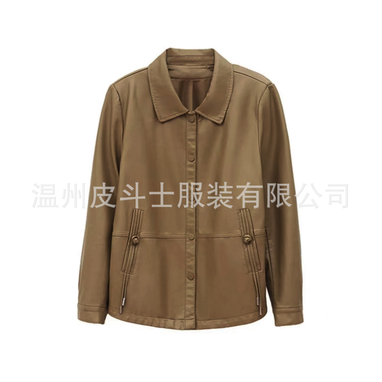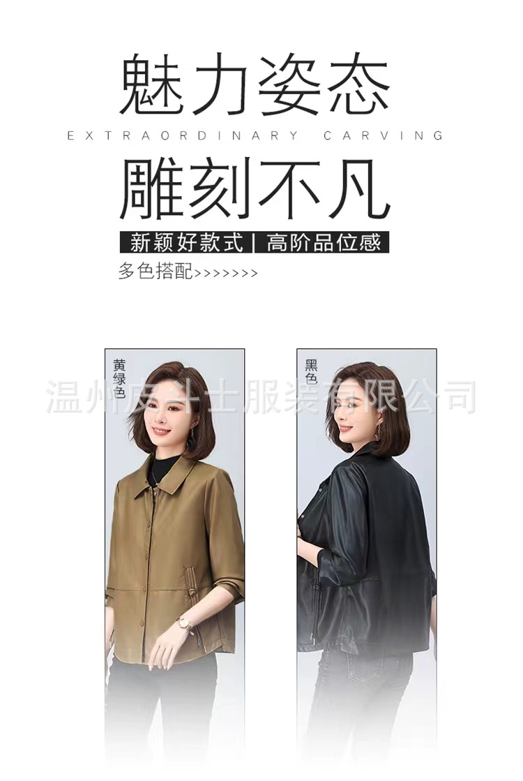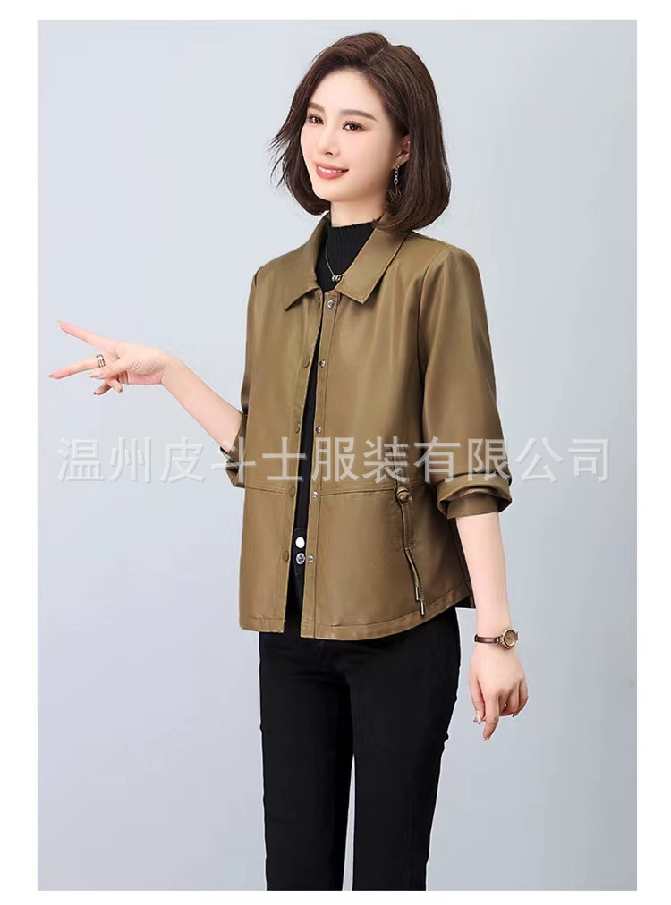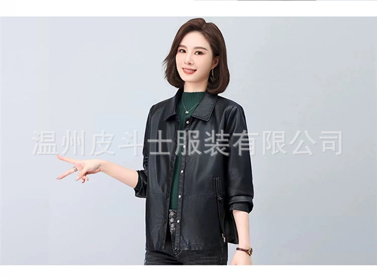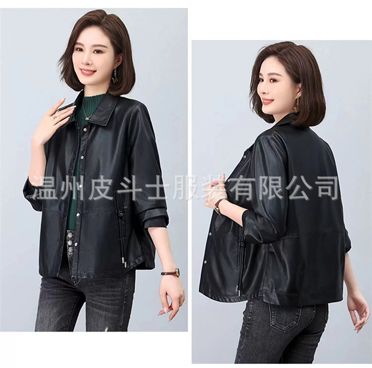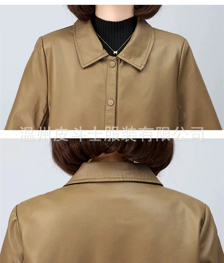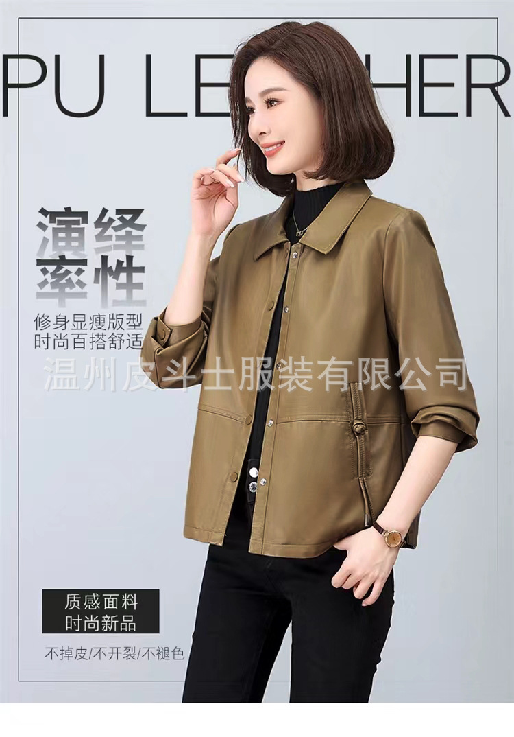 2024 새로운 중년 어머니 가죽 자켓 여성의 가을 패션 우아한 옷깃 중년 캐주얼 가죽 자켓