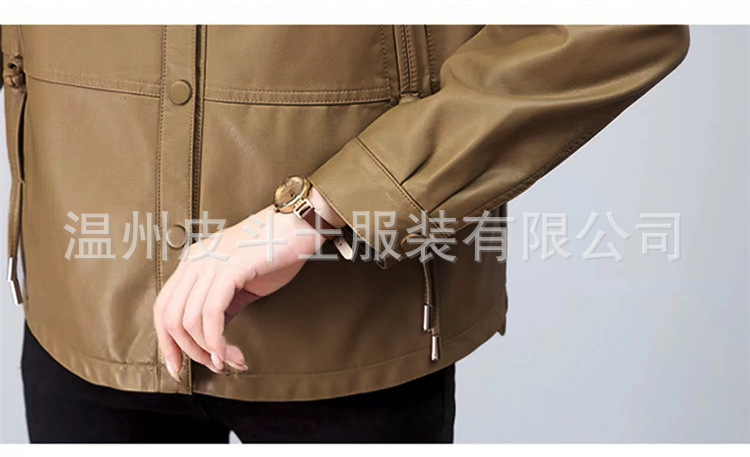2024 새로운 중년 어머니 가죽 자켓 여성의 가을 패션 우아한 옷깃 중년 캐주얼 가죽 자켓스토어 가기