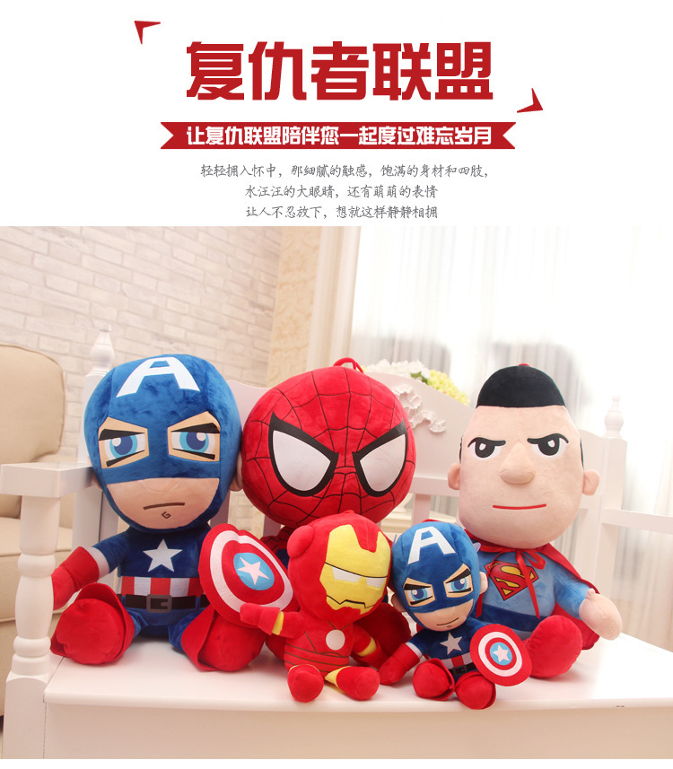 도매 시뮬레이션 어벤져 스 인형 스파이더 맨 봉제 장난감 캡틴 아메리카 슈퍼맨 8 인치 그라스 기계 인형스토어 가기