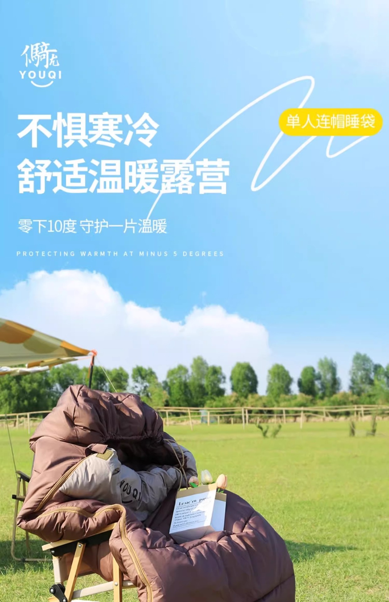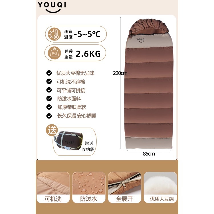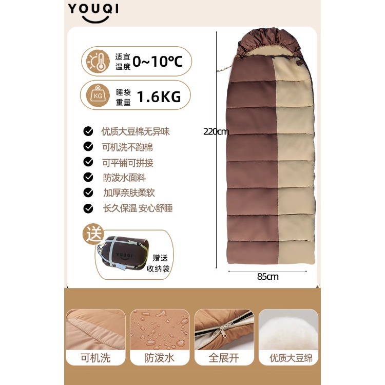 Youqi 슬리핑 백 성인 두껍게 냉간 야외 자동차 캠핑 사무실 사계절 유니버설 싱글 더블 퀼트 듀얼 사용스토어 가기
