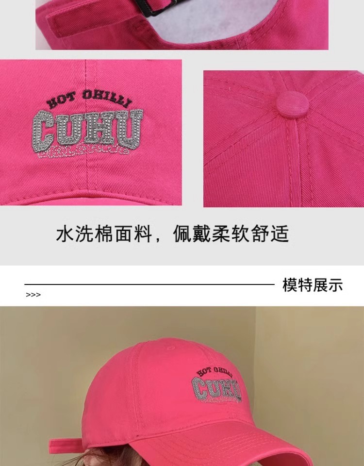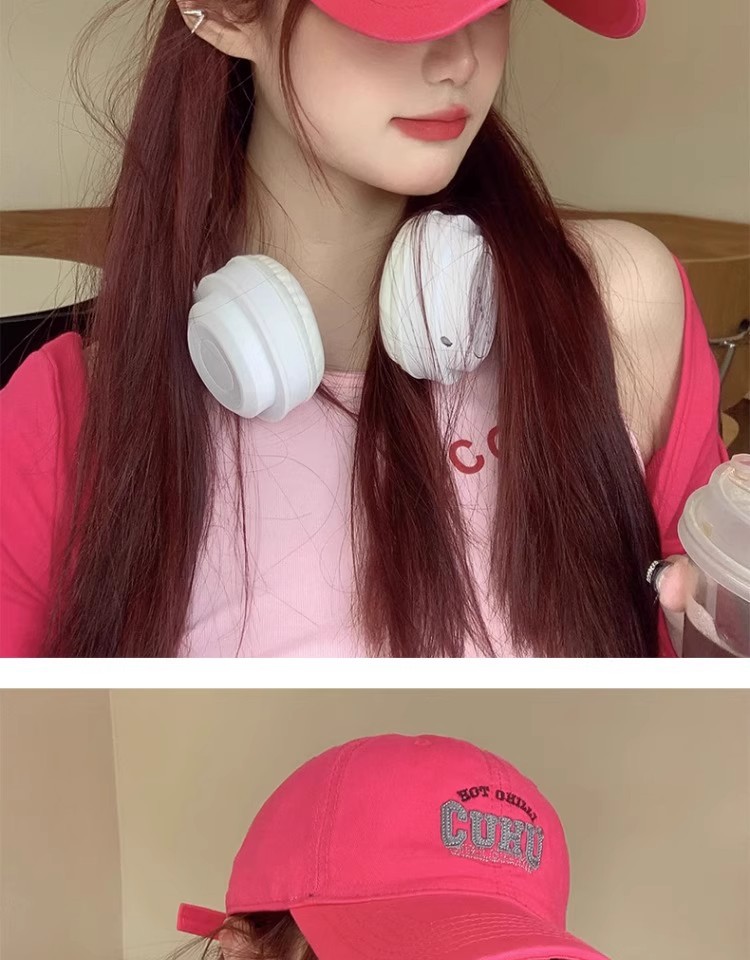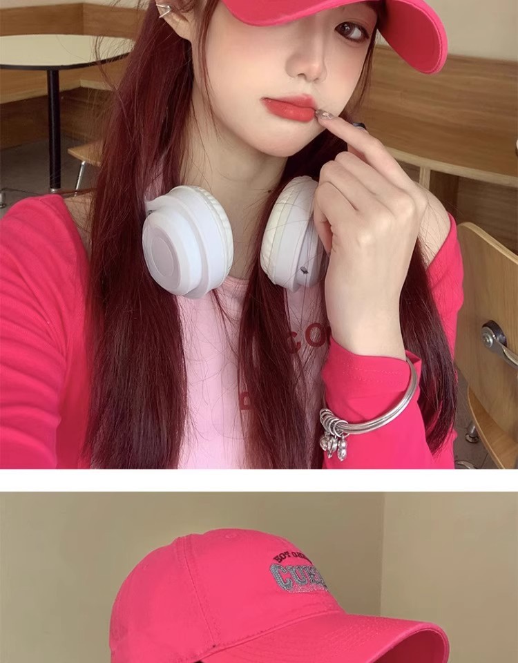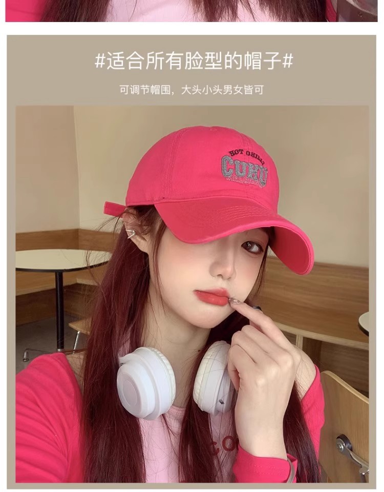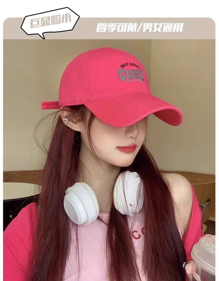 2024 새로운 도착 로즈 레드 야구 모자 여자 빅 헤드 와이드 브림 쇼 얼굴 작은 인터넷 연예인 Ins 트렌디 소프트 탑 캡스토어 가기