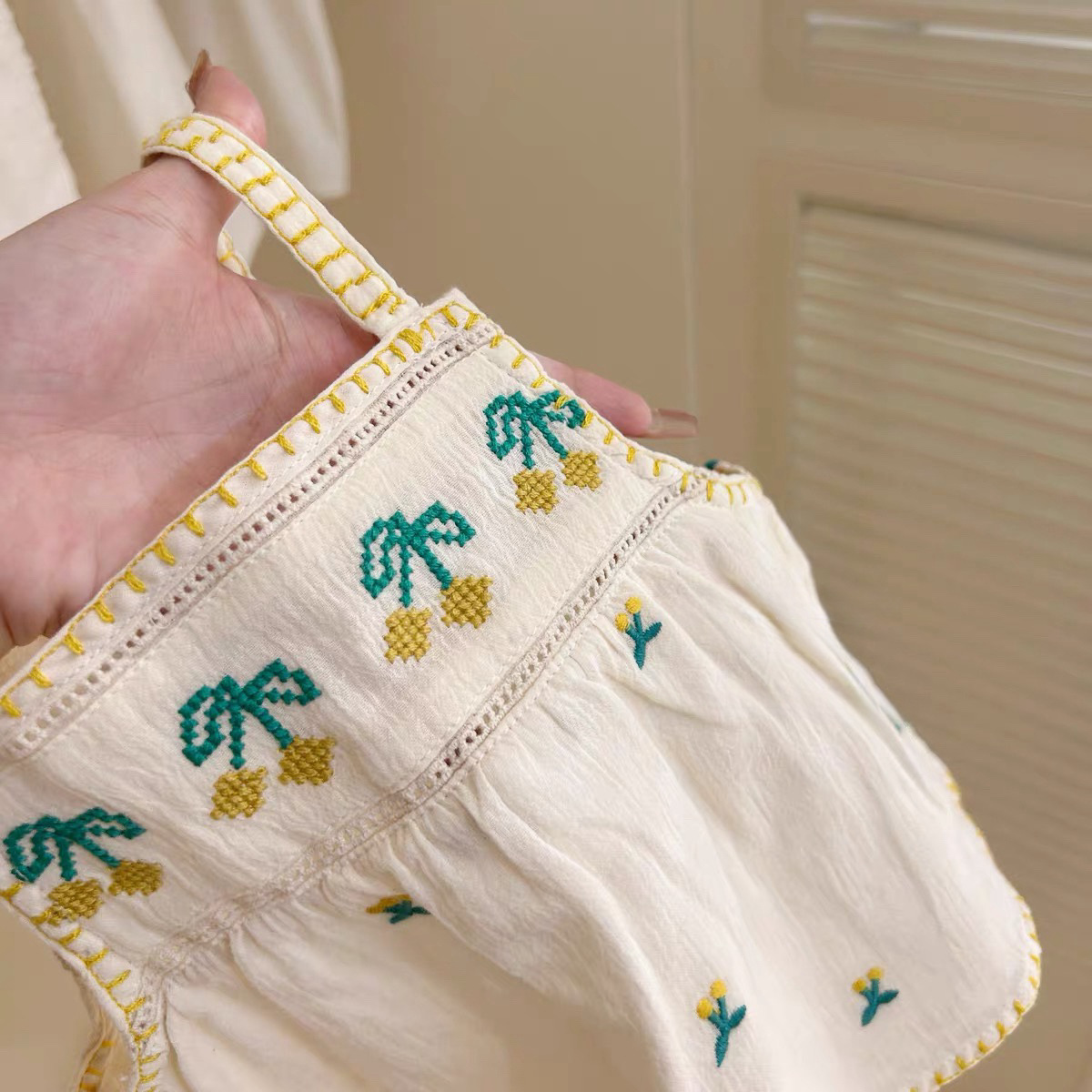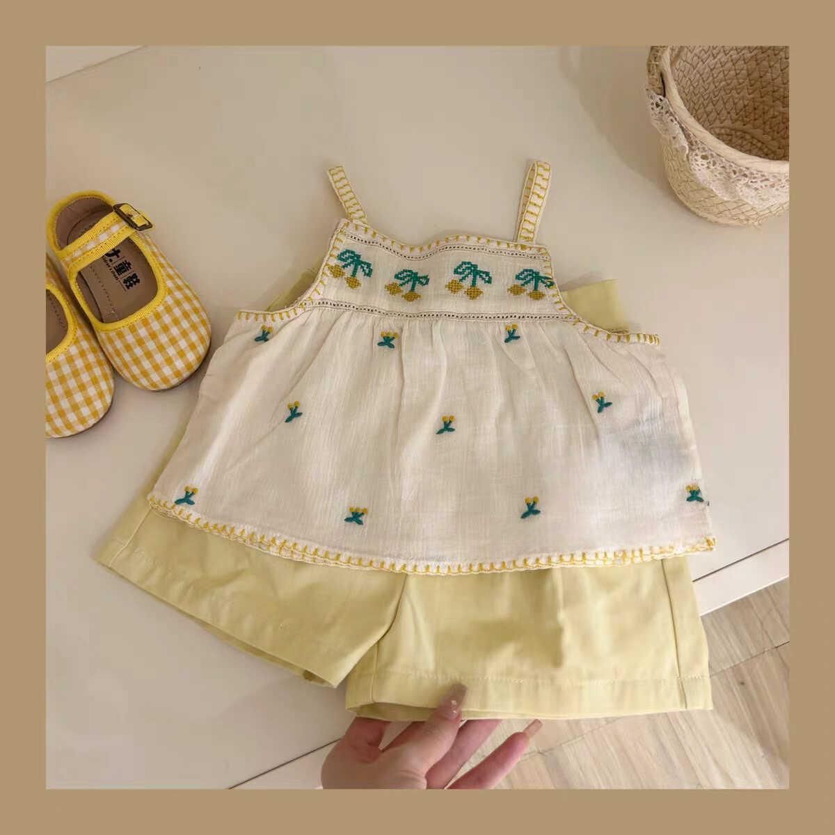 소녀 세트 여름 Camisole 2024 새로운 도착 체리 조끼 스타일 사이버 연예인 반바지 세트 투피스 세트
