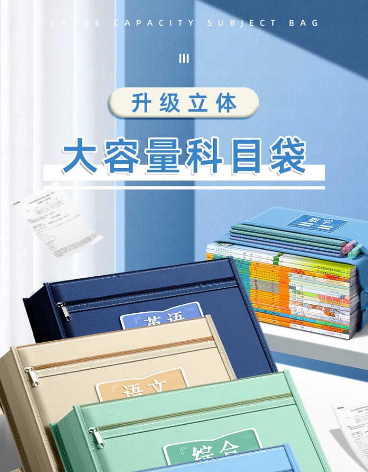 주제 3 차원 두꺼운 지퍼 형 주제 분류 가방 중학생 휴대용 더블 레이어 대용량 파일 가방스토어 가기
