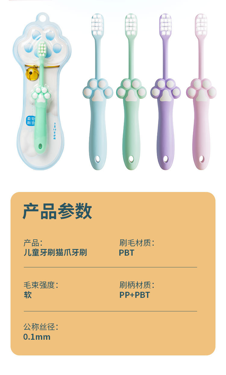 어린이 부드러운 머리 칫솔 가정용 도매 만화 고양이 클로 싱글 팩 아기 부드러운 머리 고급 칫솔 어린이 3-12 세스토어 가기