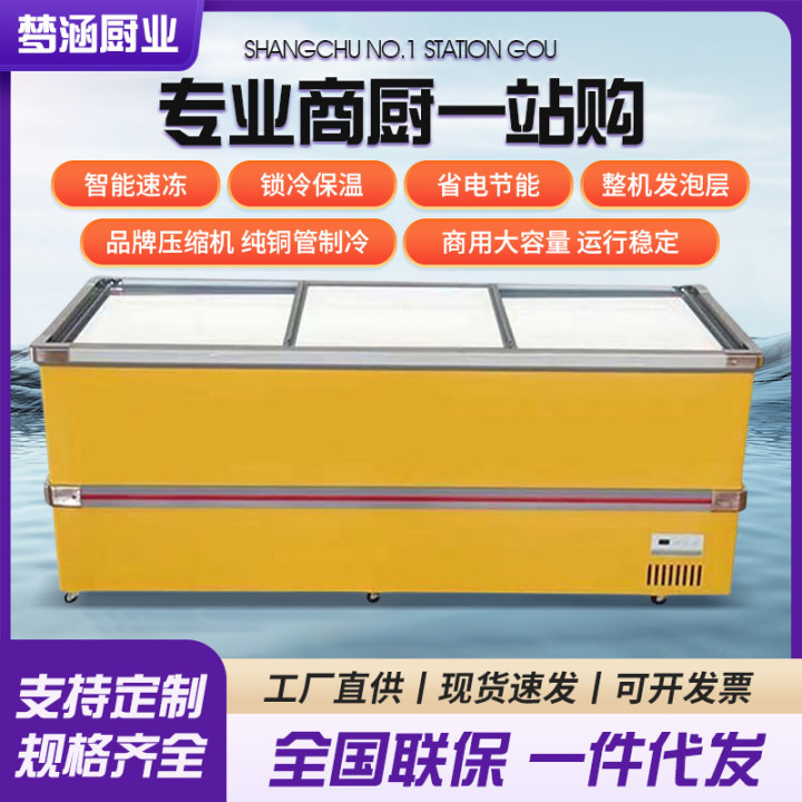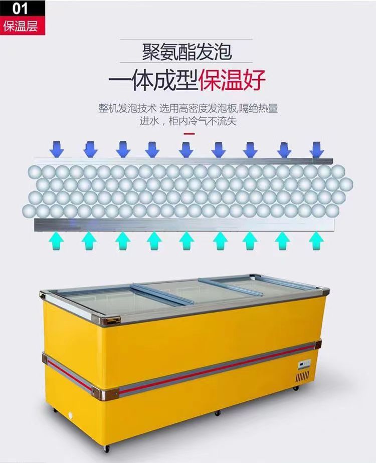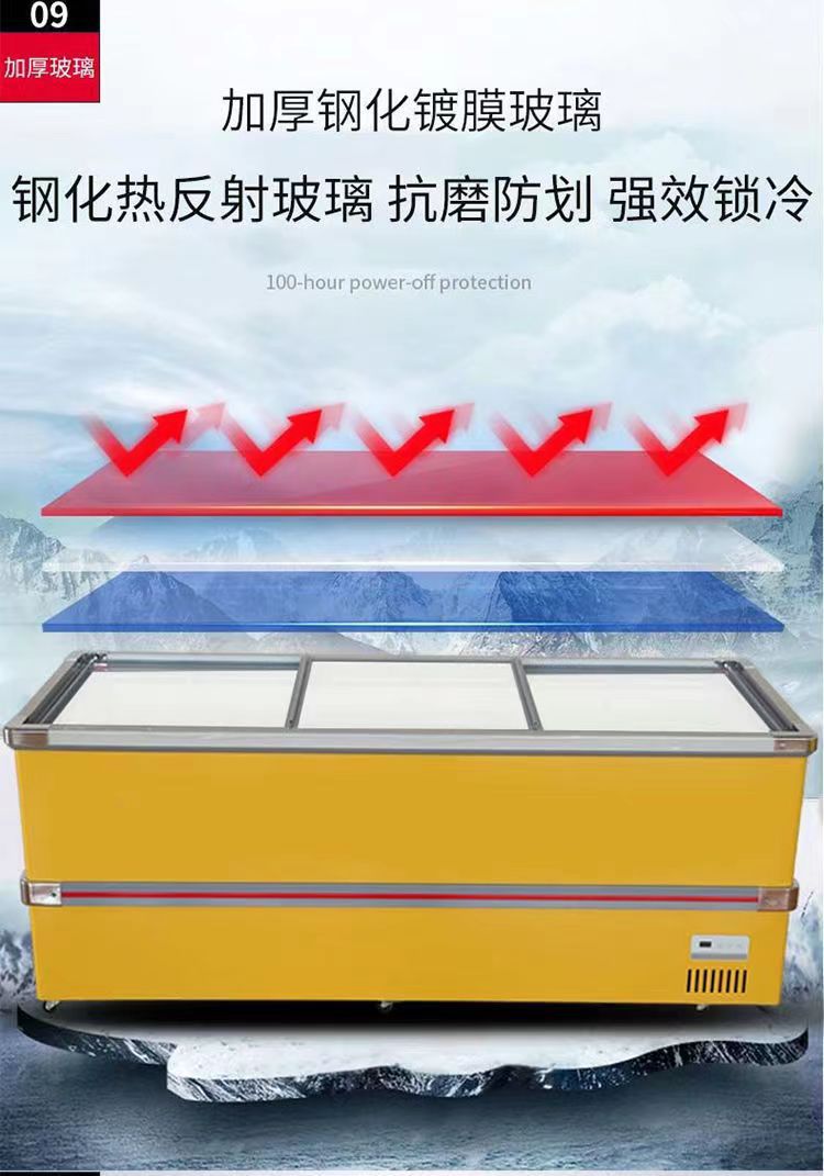 수평 섬 내각 두 배 온도 냉동고 상업적인 큰 수용량 냉장 디스플레이 내각 조합 섬 내각 유리 문 슈퍼마켓 냉장고스토어 가기