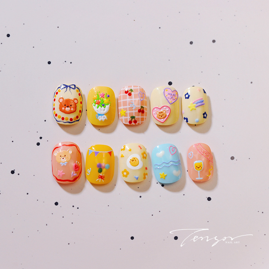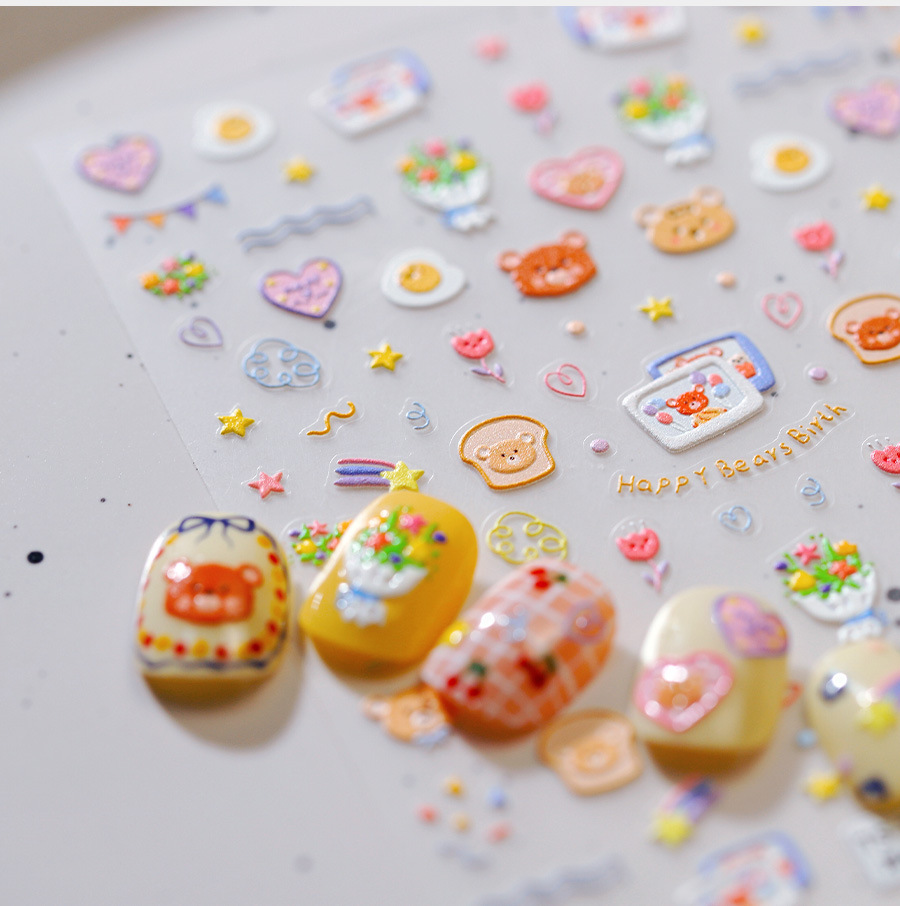 TENSOR 새로운 공예 공장 도매 네일 스티커 만화 접착 네일 스티커 보석 TS-3757 생일 곰
