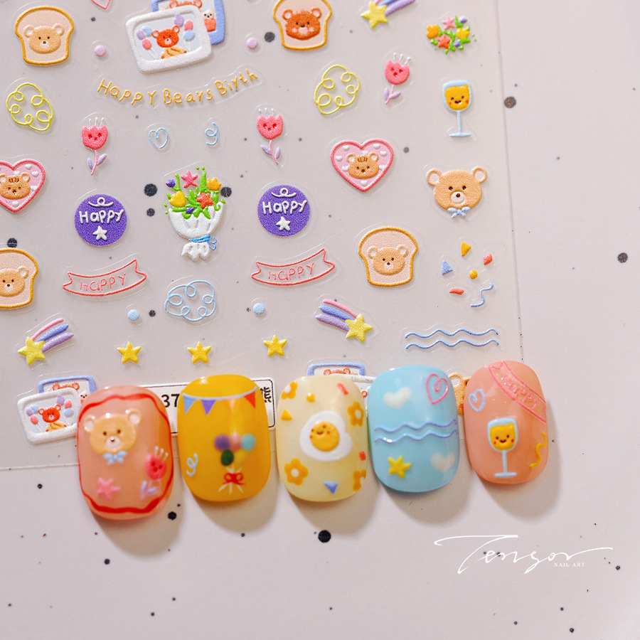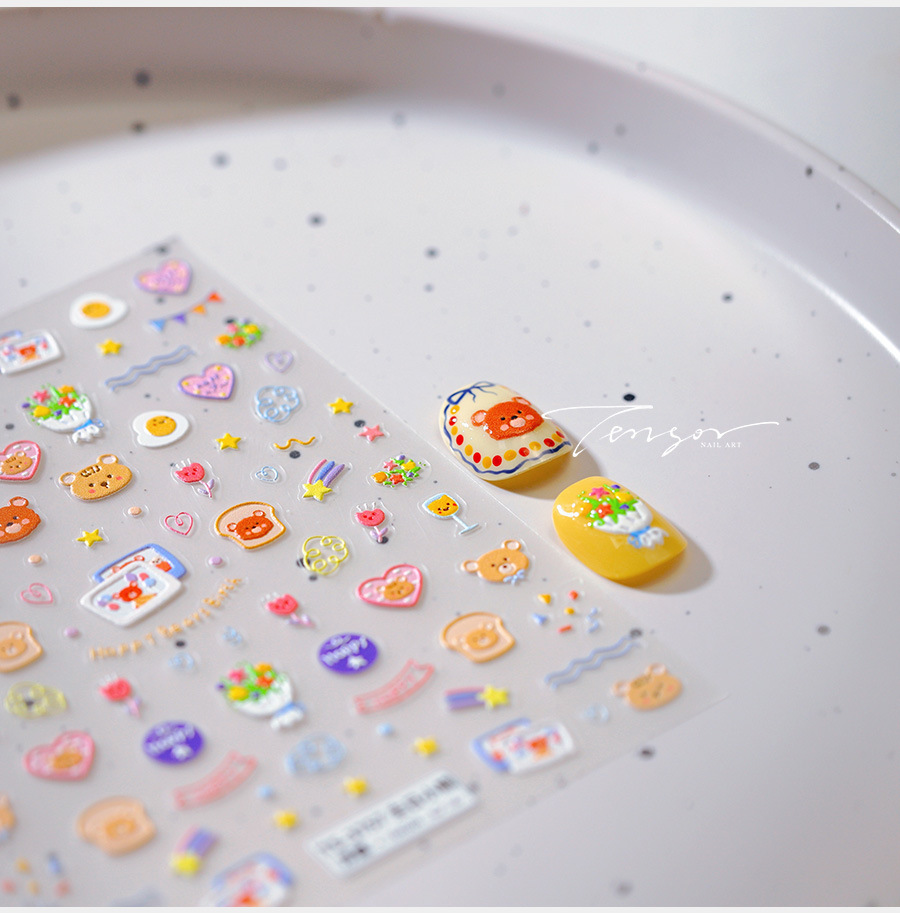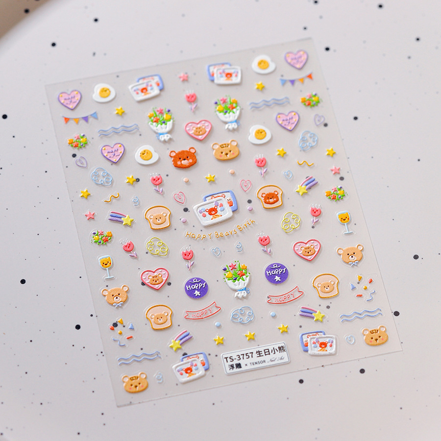 TENSOR 새로운 공예 공장 도매 네일 스티커 만화 접착 네일 스티커 보석 TS-3757 생일 곰스토어 가기