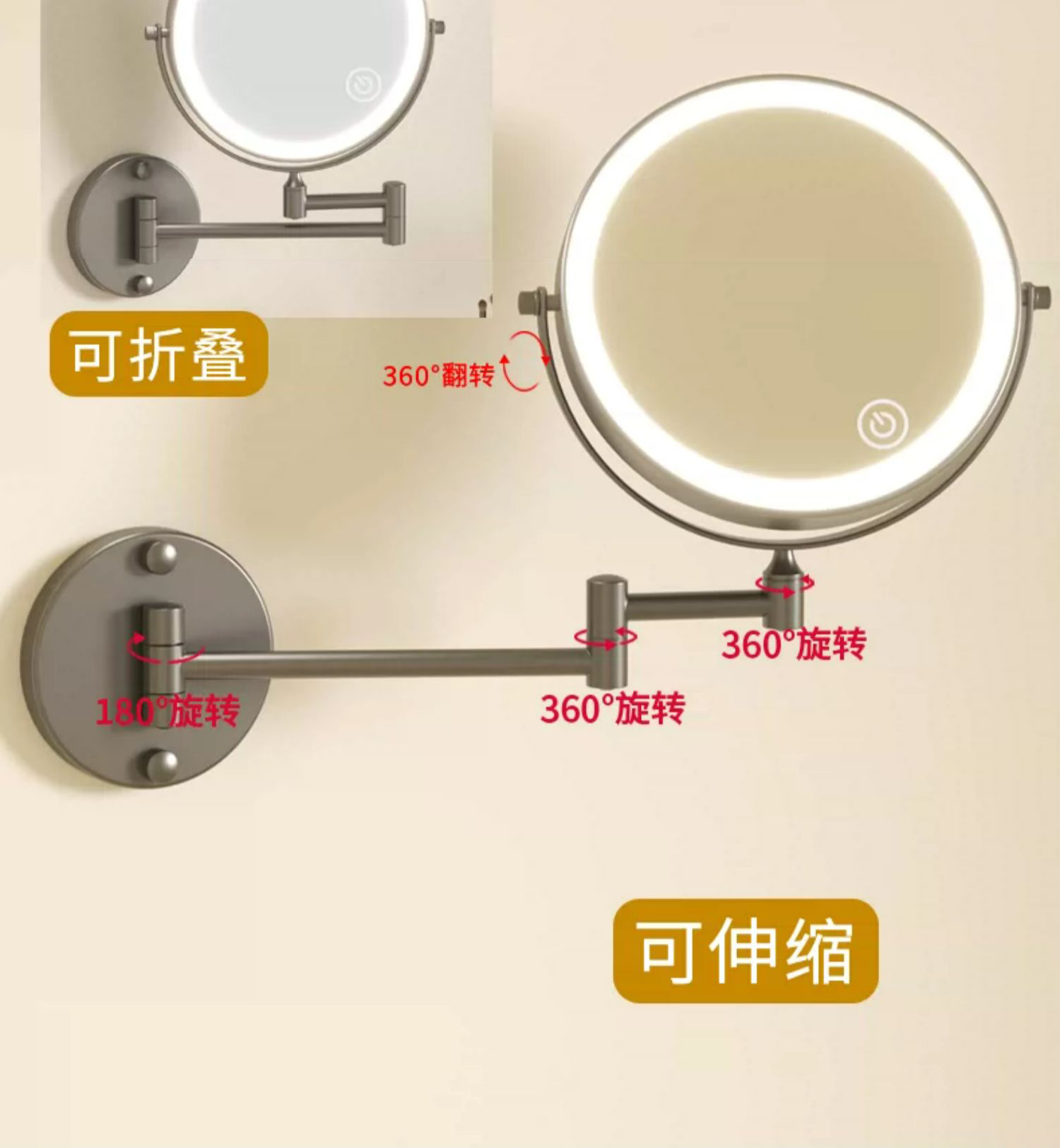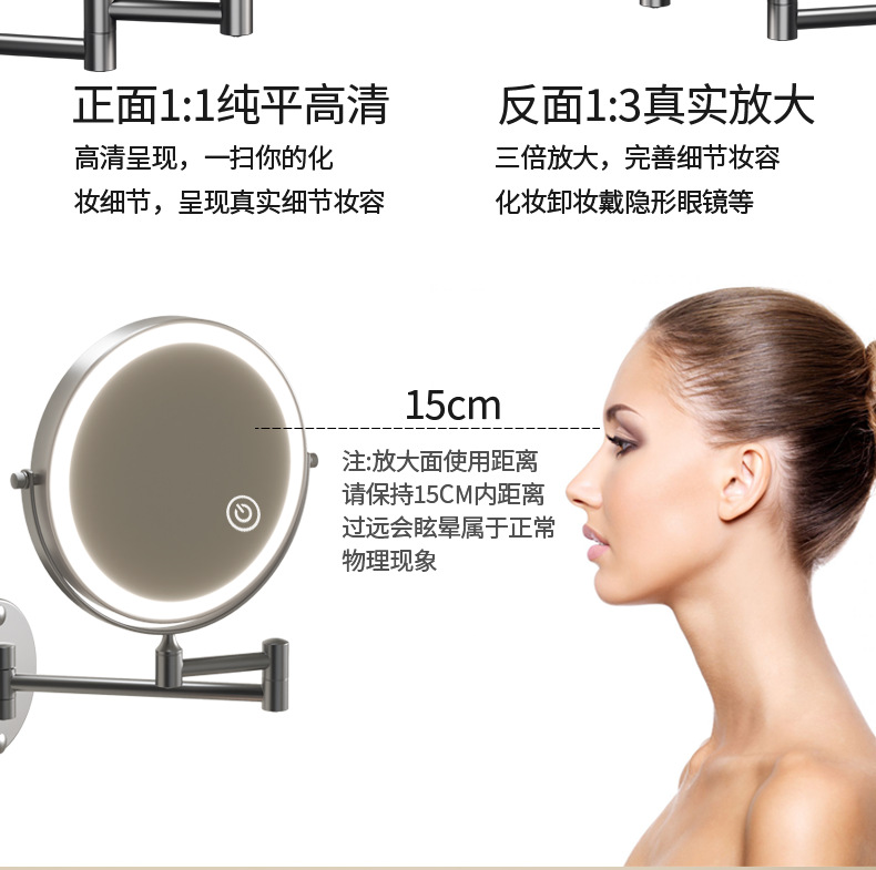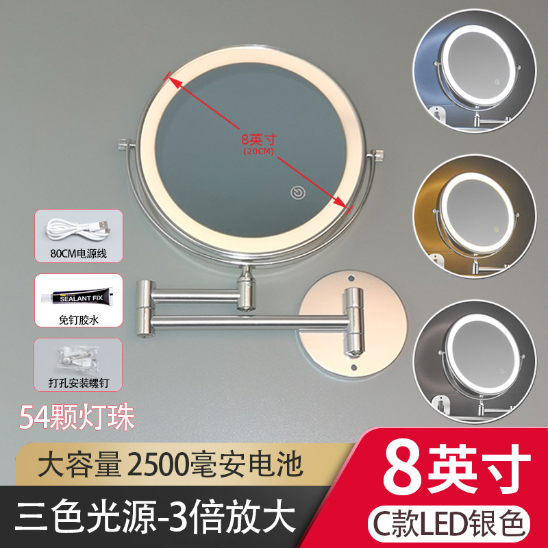 욕실 메이크업 거울 램프 비 천공 벽 매달려 접는 호텔 욕실 접이식 양면 드레싱 돋보기