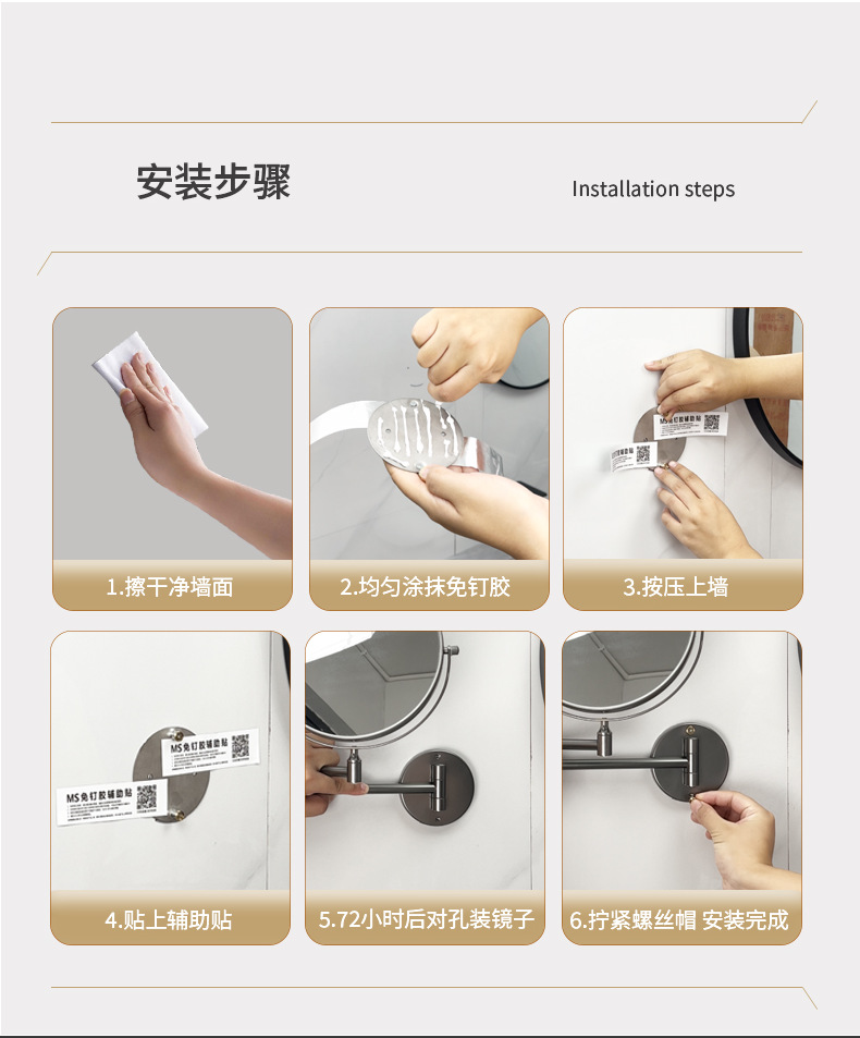 욕실 메이크업 거울 램프 비 천공 벽 매달려 접는 호텔 욕실 접이식 양면 드레싱 돋보기스토어 가기