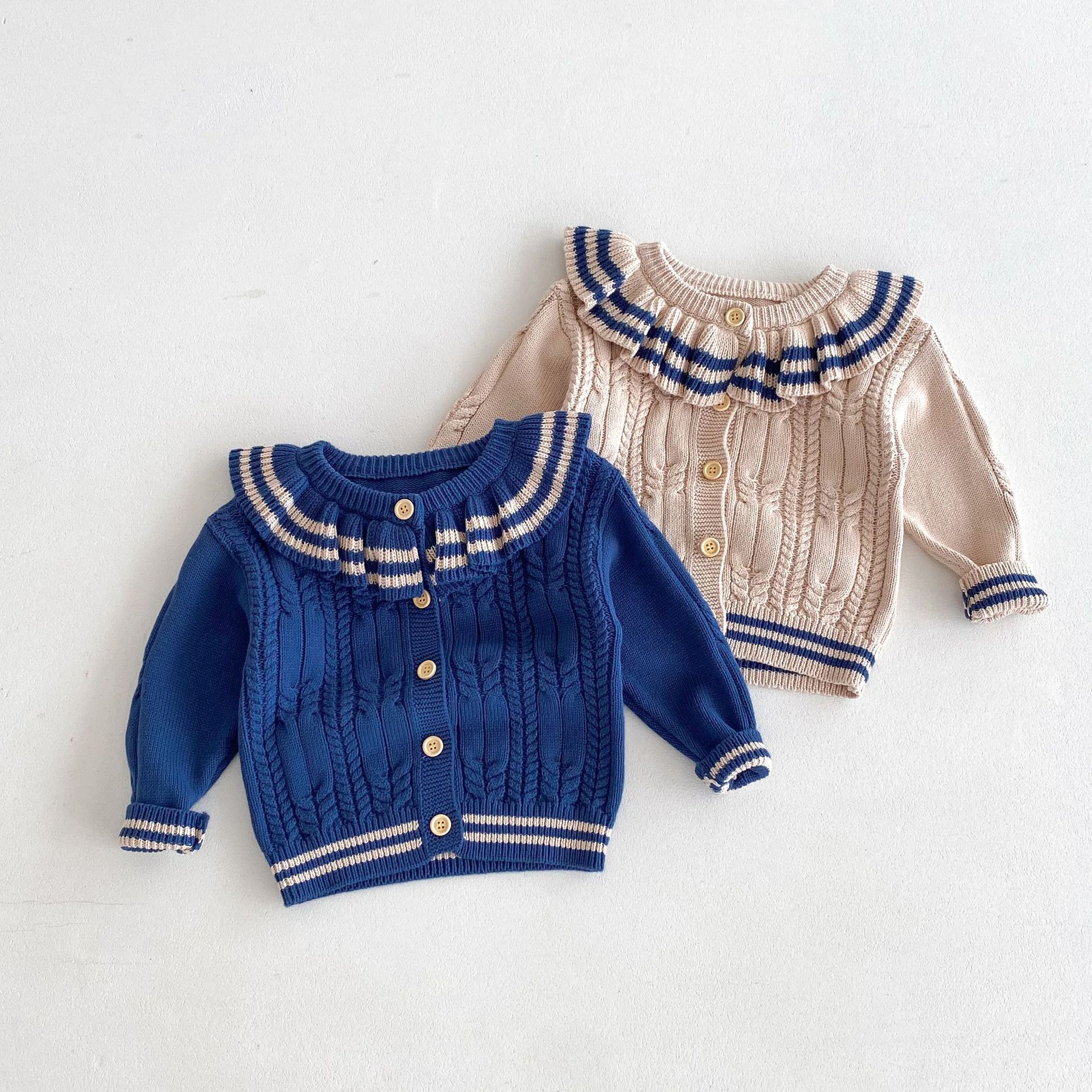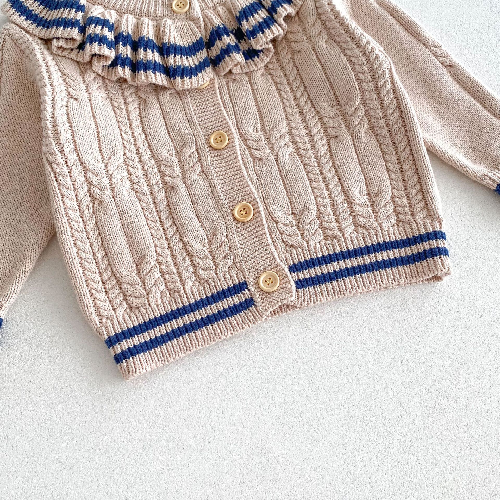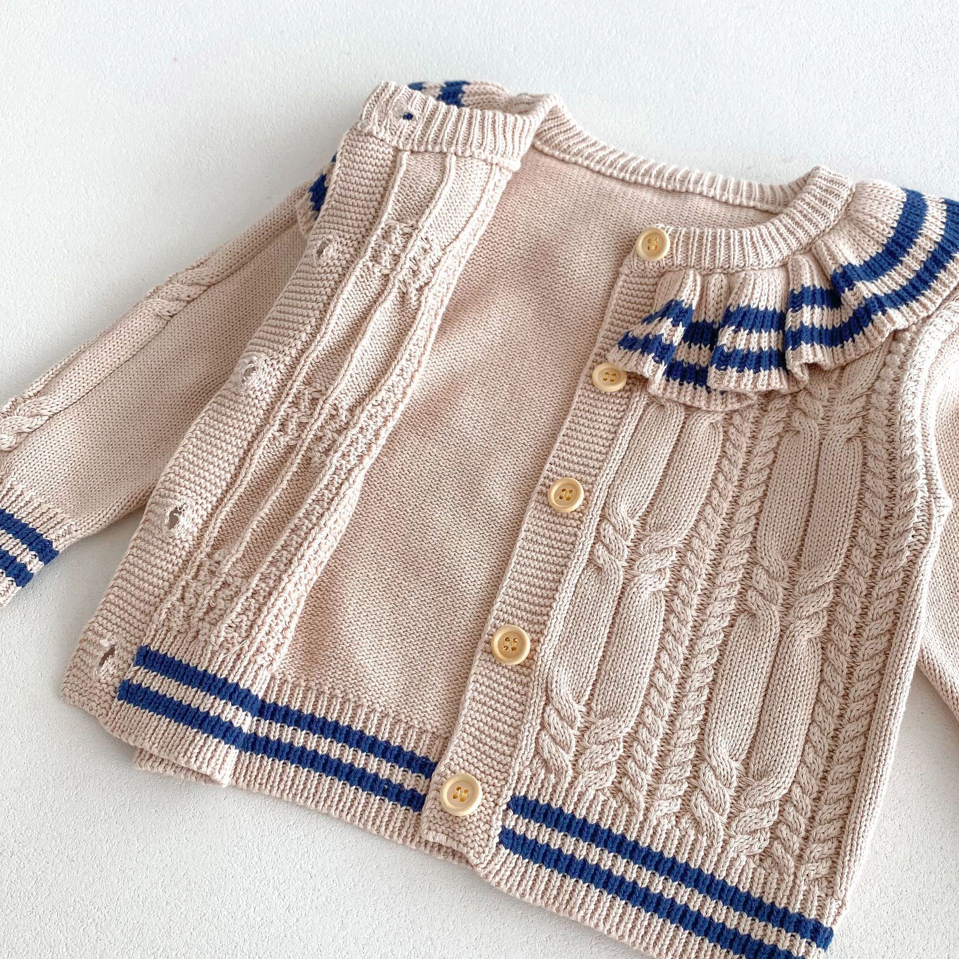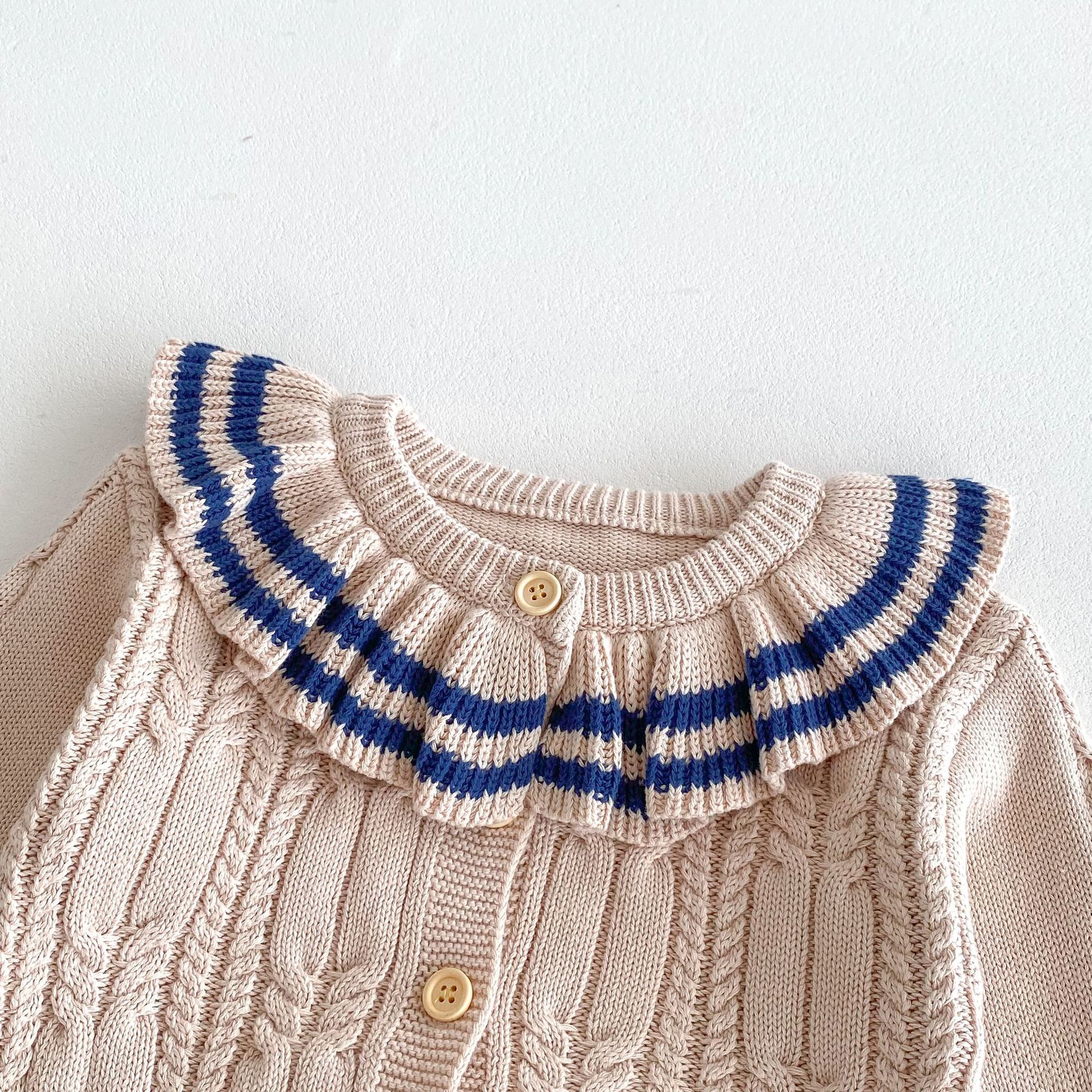 재고 2024 가을 새 여아 아기 귀여운 연꽃 칼라 중소 어린이 니트 스웨터 카디건 재킷스토어 가기
