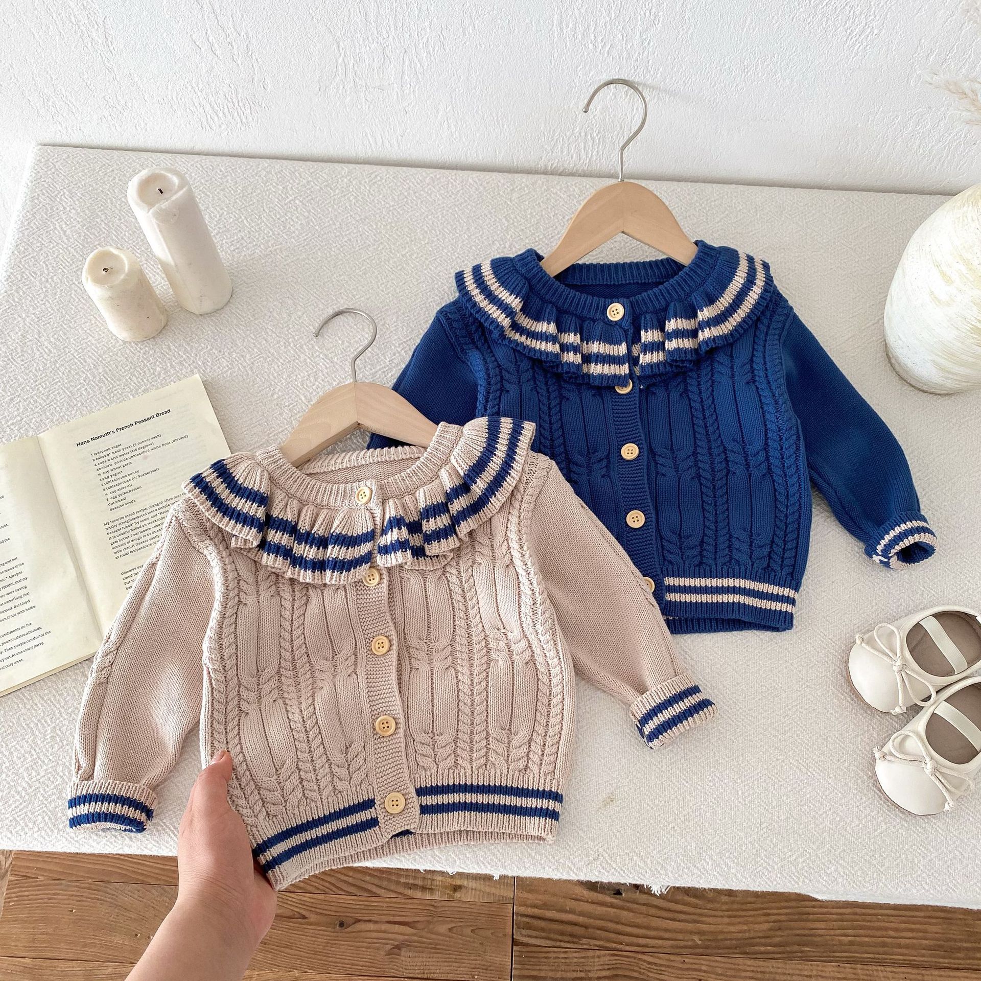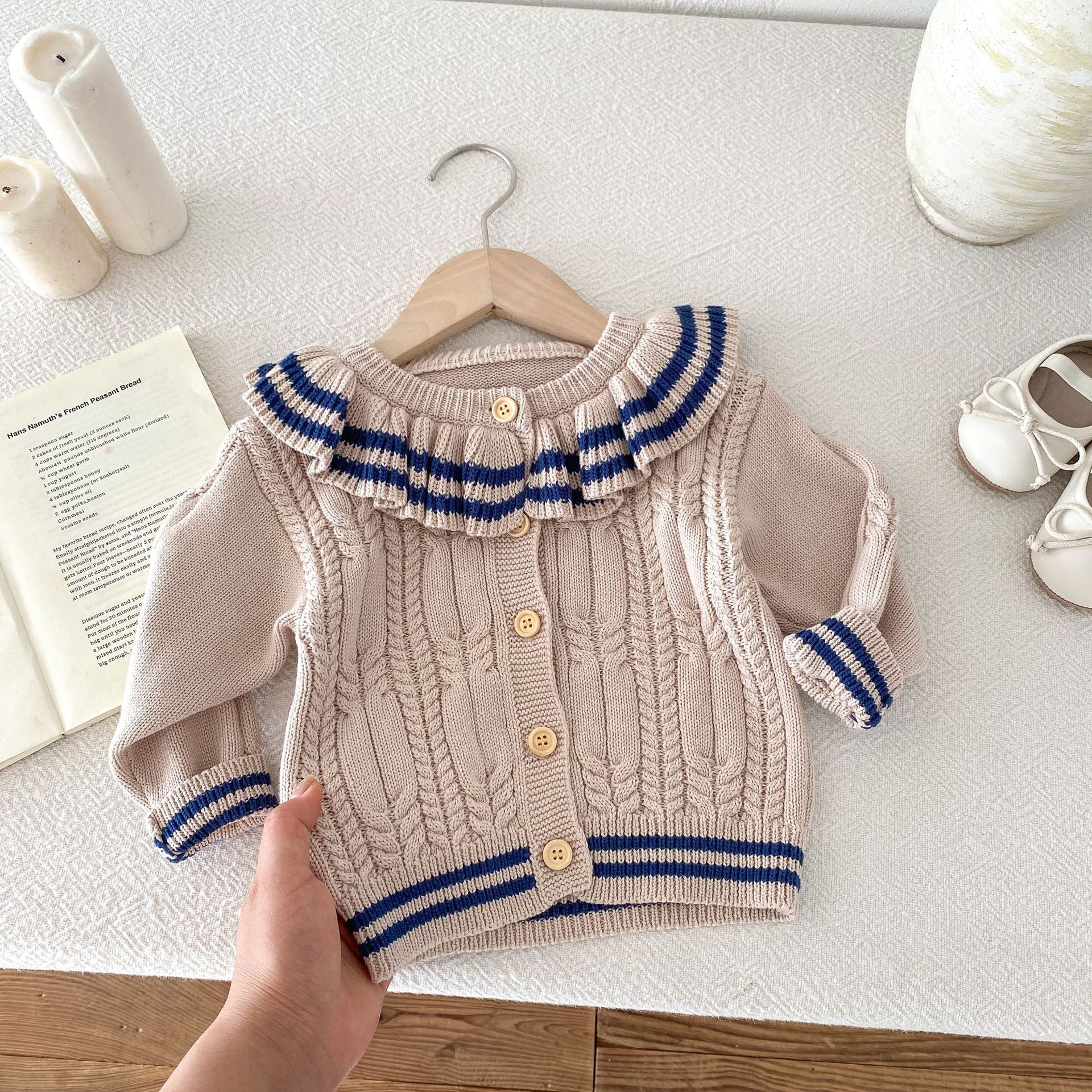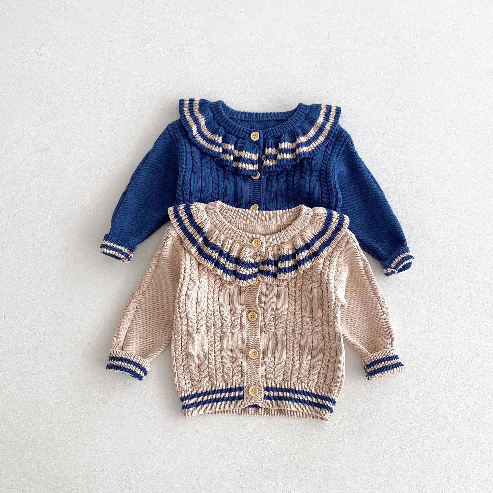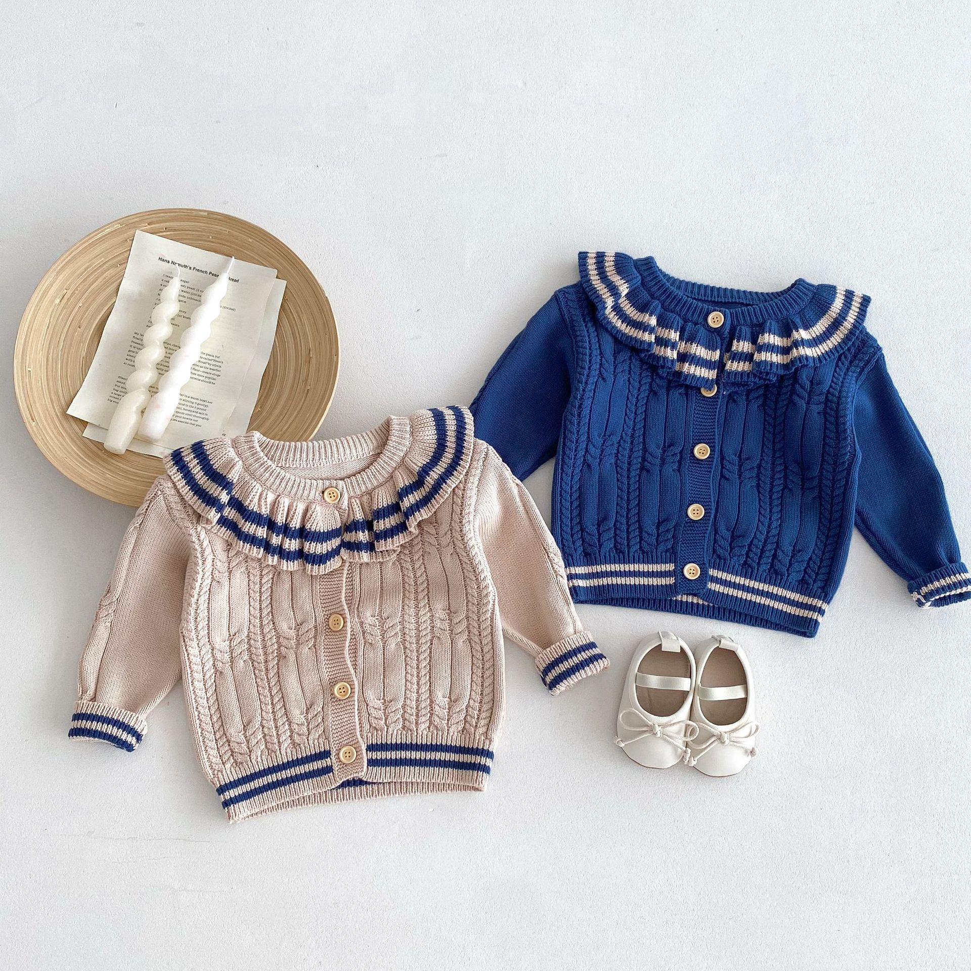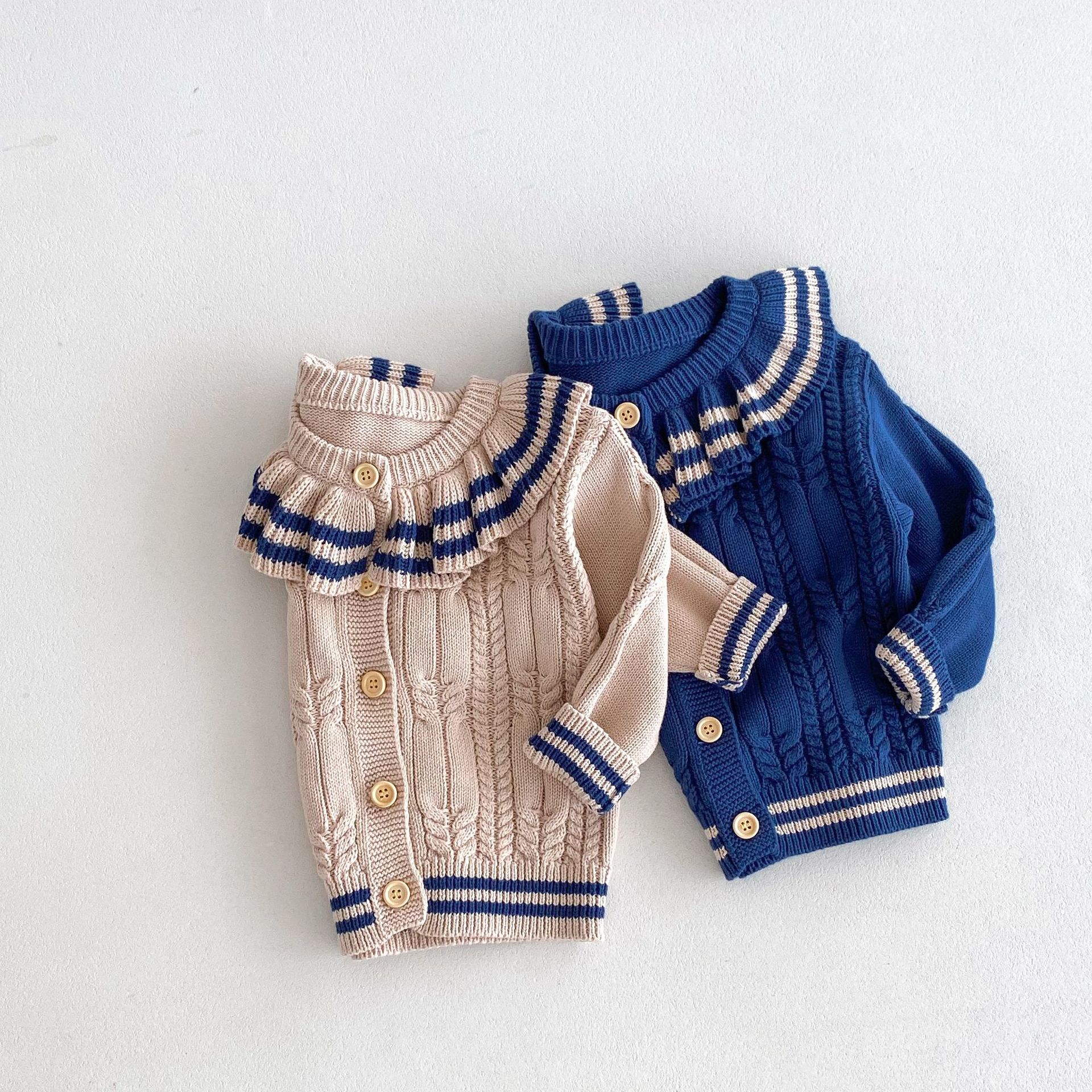 재고 2024 가을 새 여아 아기 귀여운 연꽃 칼라 중소 어린이 니트 스웨터 카디건 재킷스토어 가기