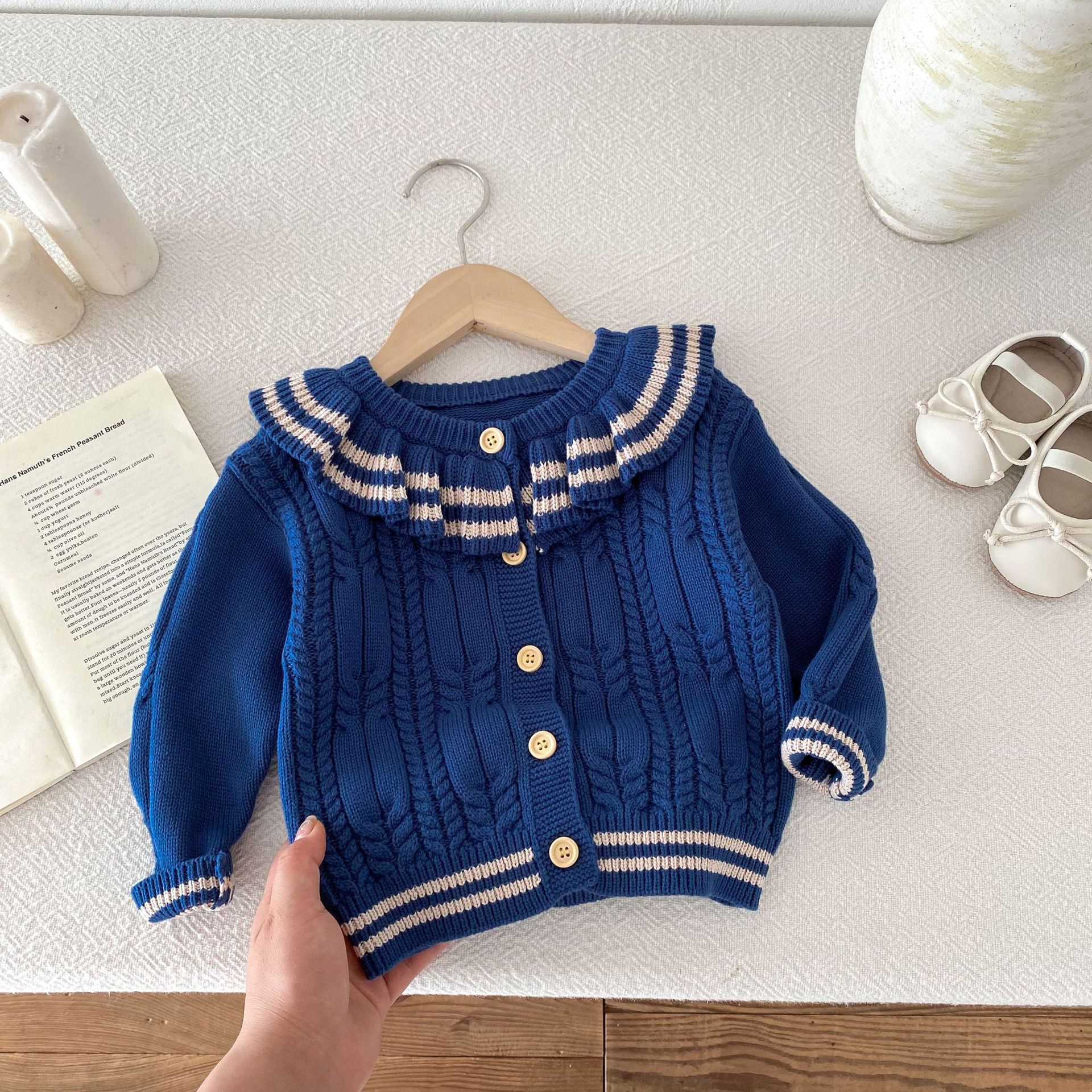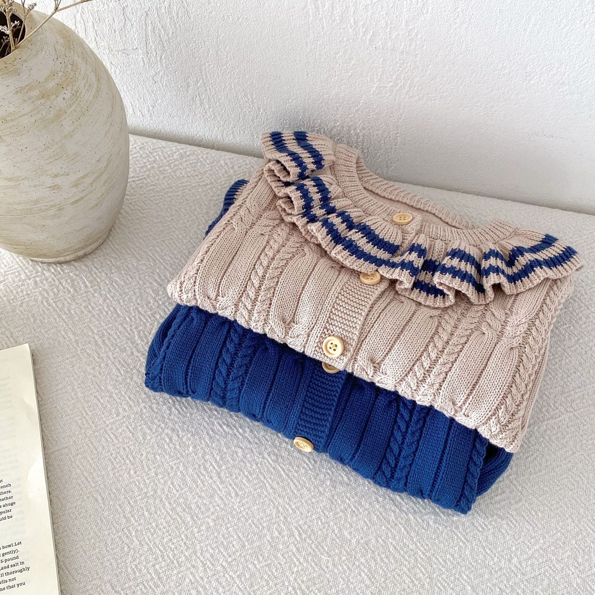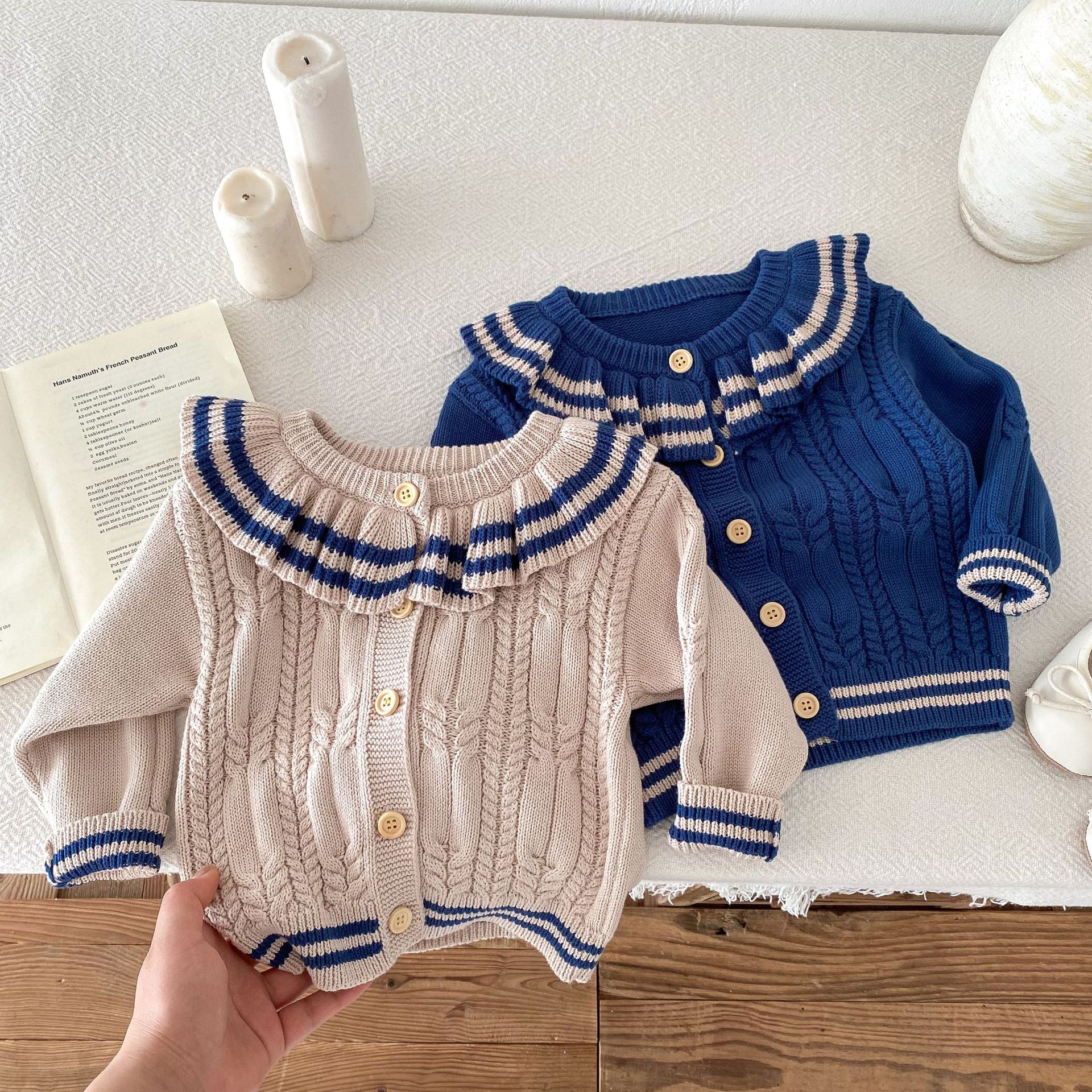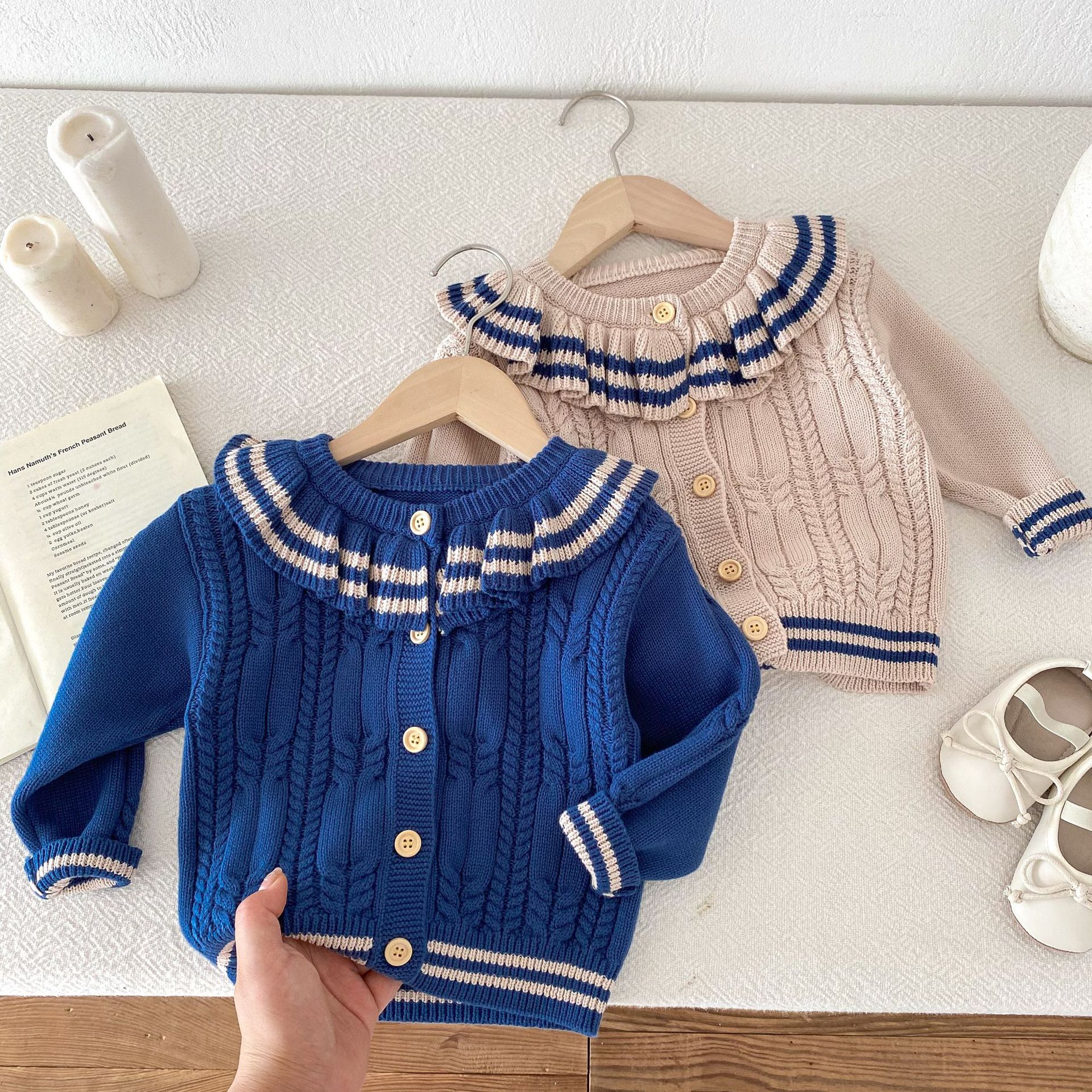 재고 2024 가을 새 여아 아기 귀여운 연꽃 칼라 중소 어린이 니트 스웨터 카디건 재킷스토어 가기