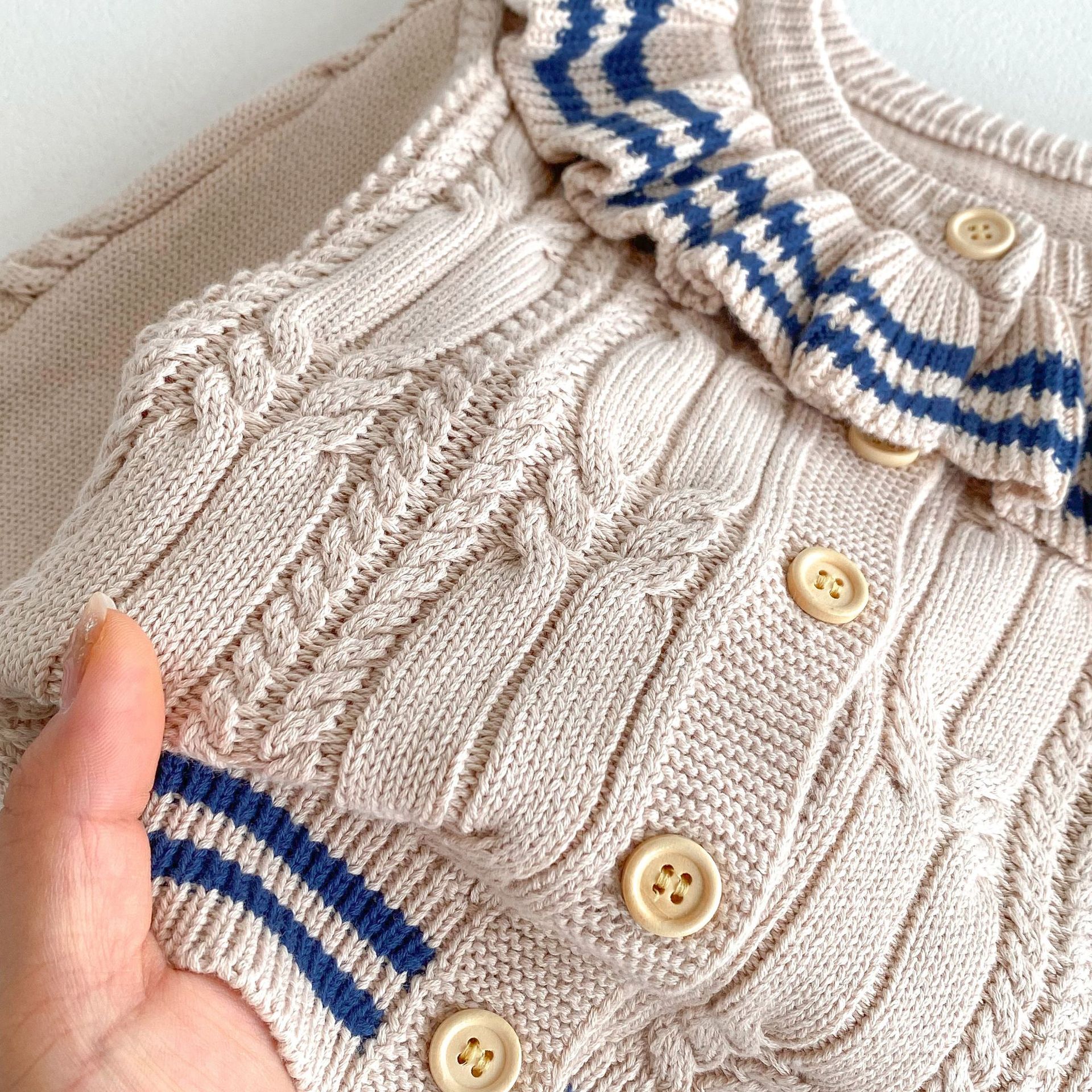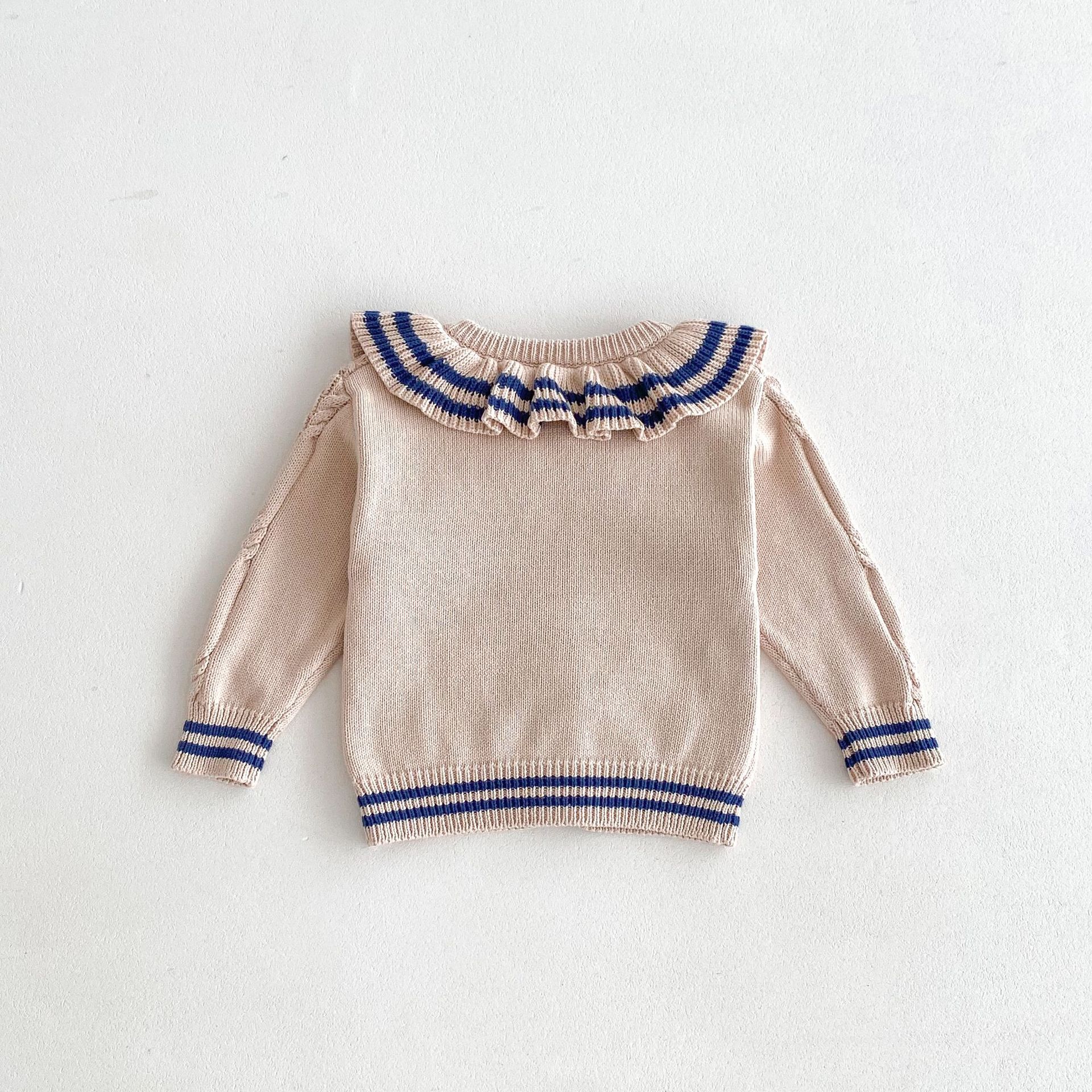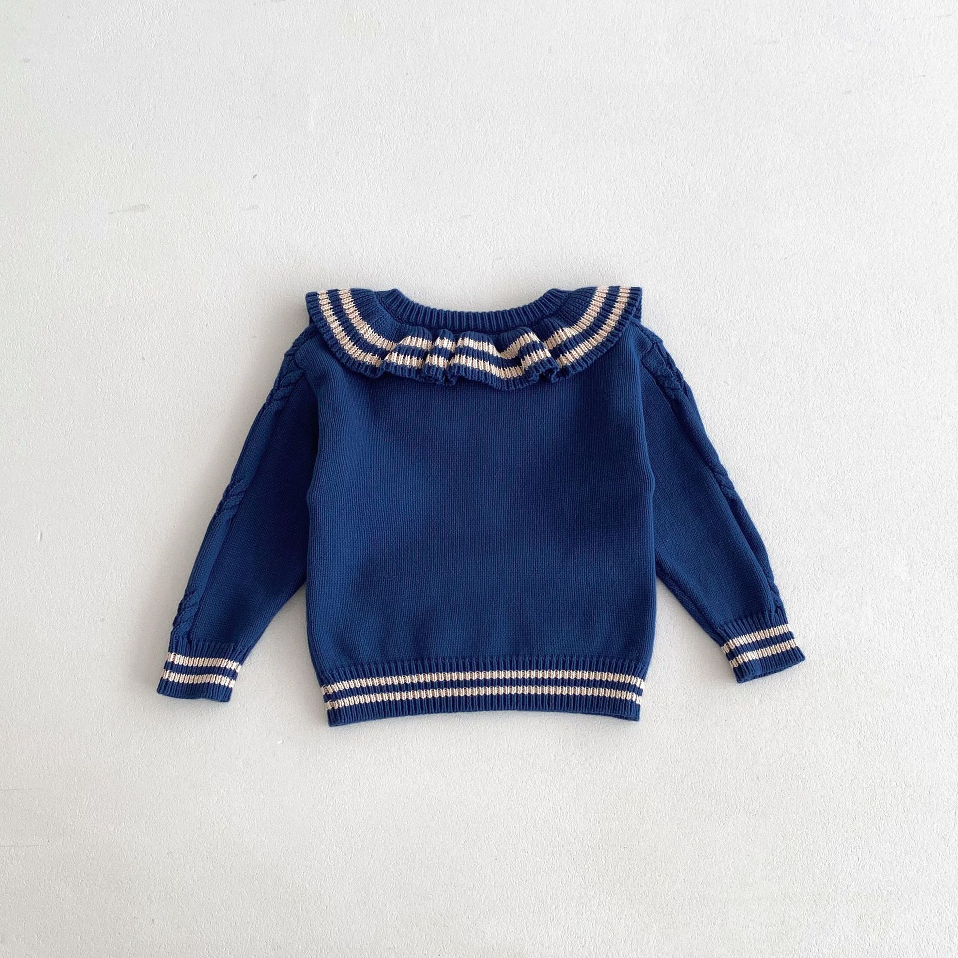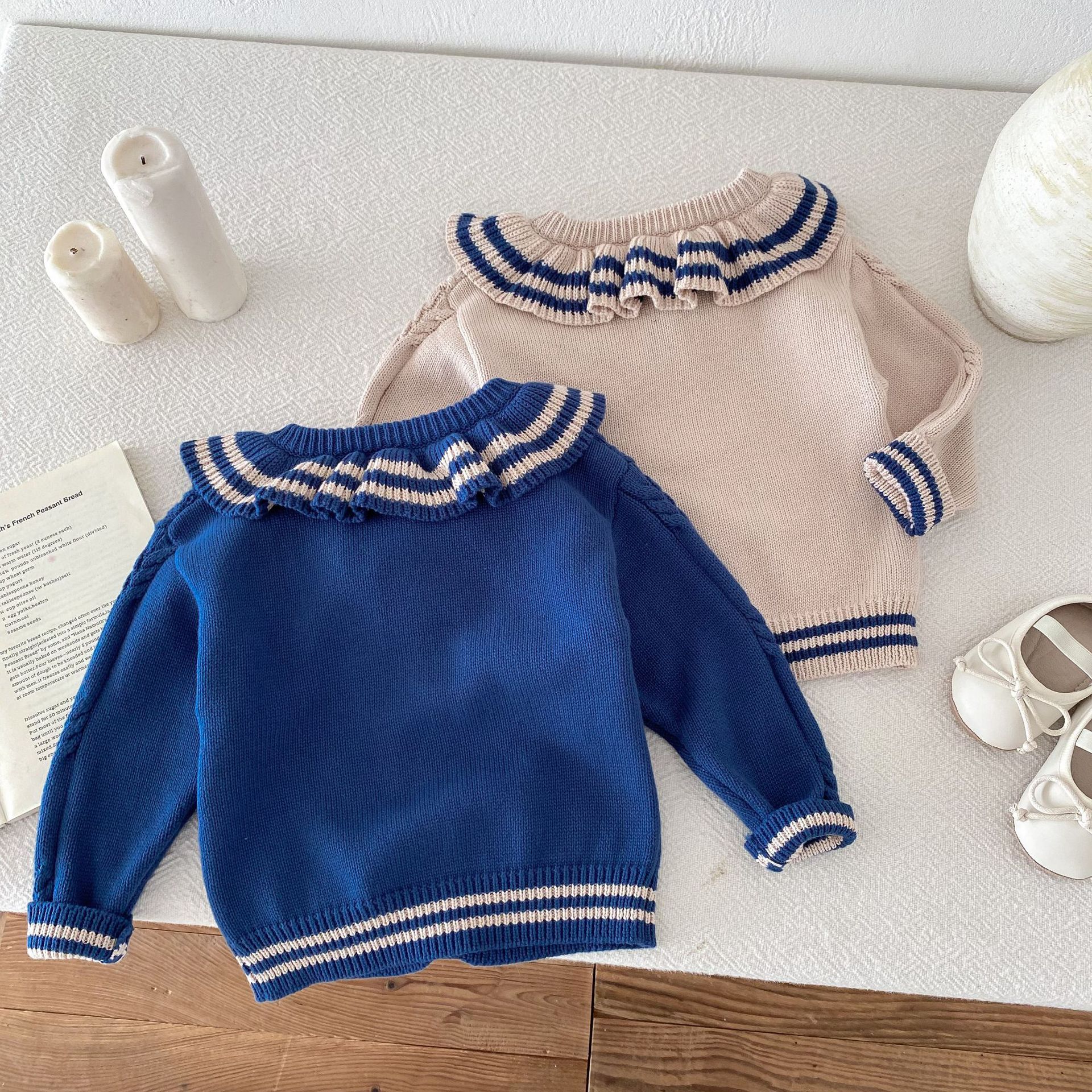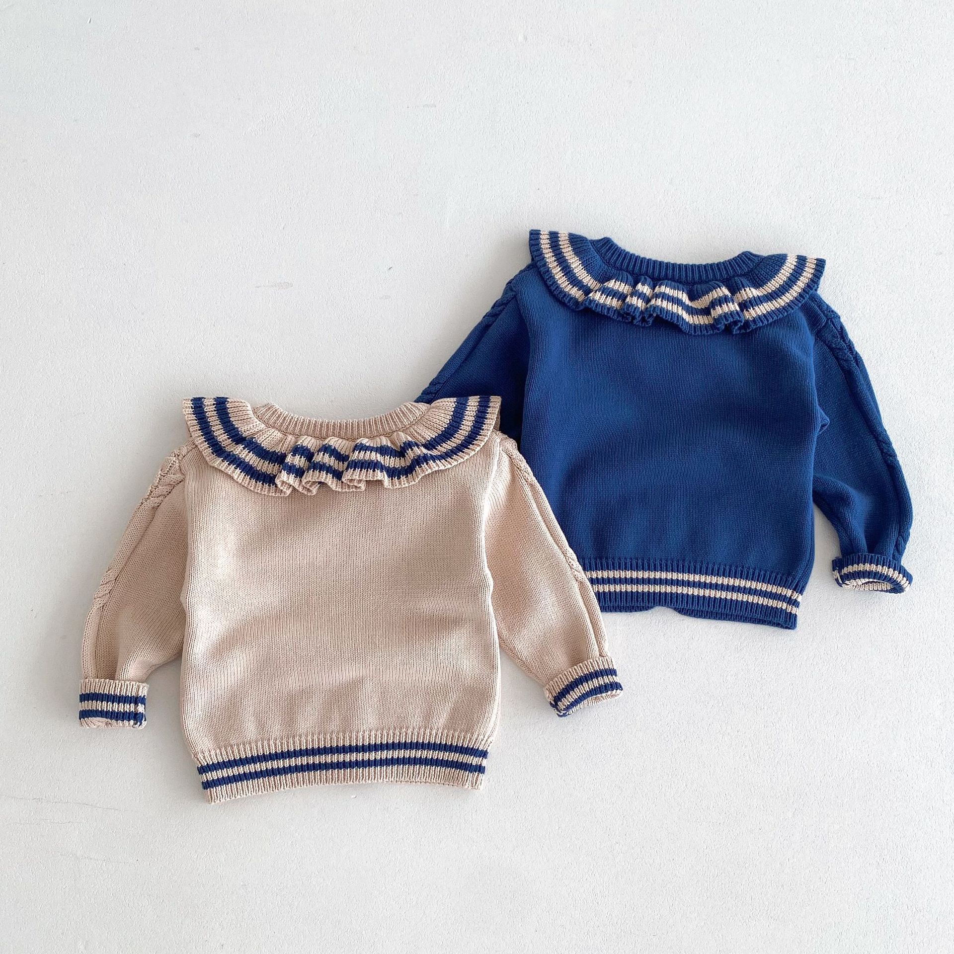 재고 2024 가을 새 여아 아기 귀여운 연꽃 칼라 중소 어린이 니트 스웨터 카디건 재킷스토어 가기