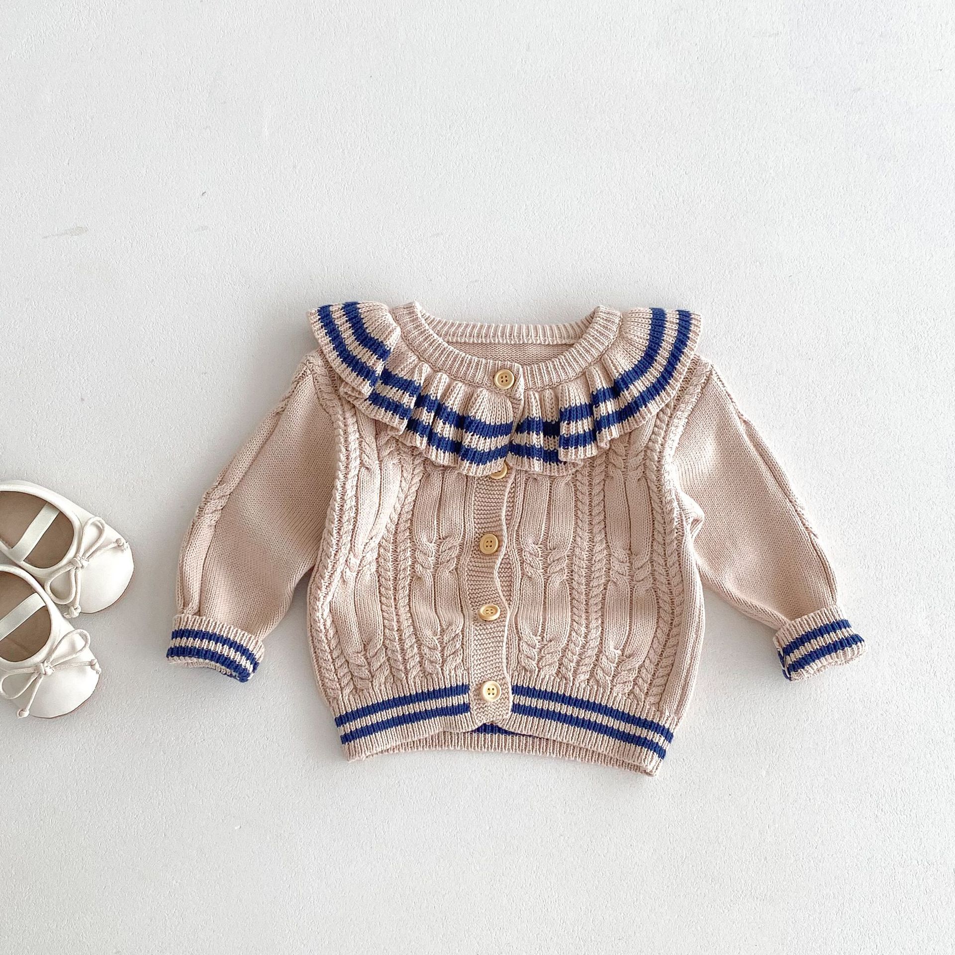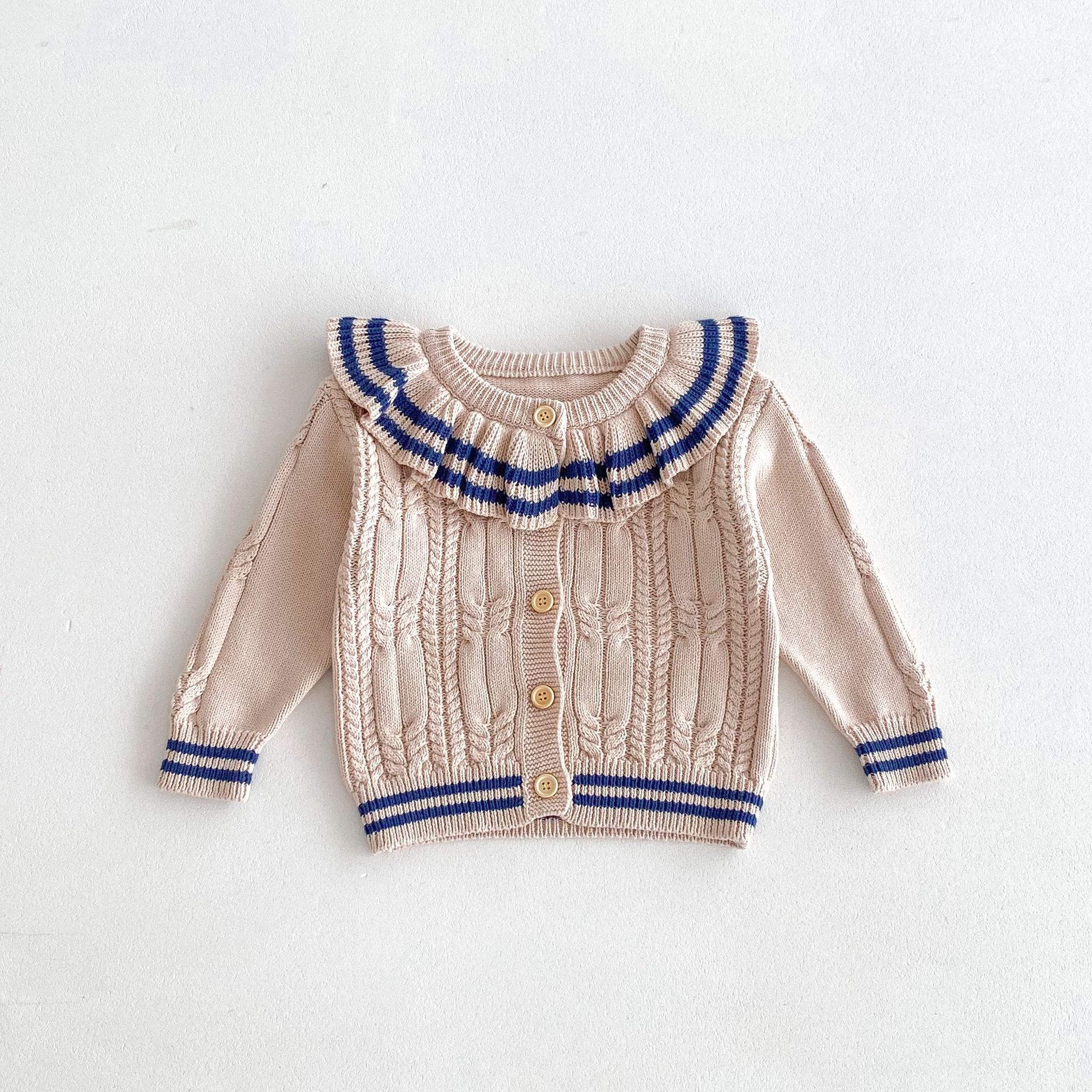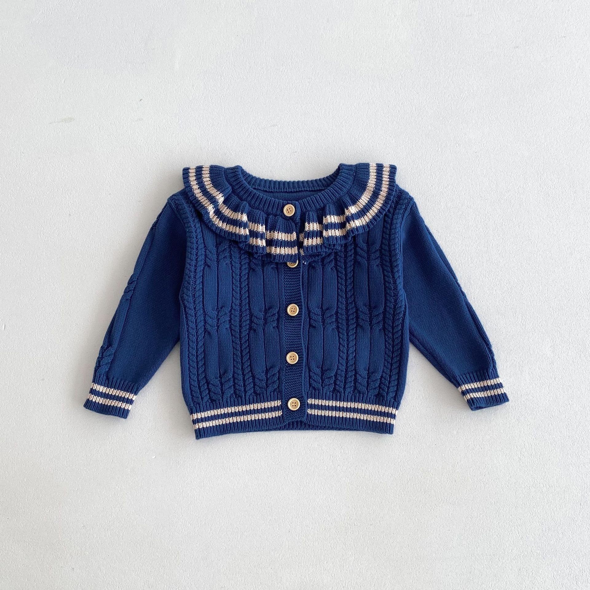 재고 2024 가을 새 여아 아기 귀여운 연꽃 칼라 중소 어린이 니트 스웨터 카디건 재킷